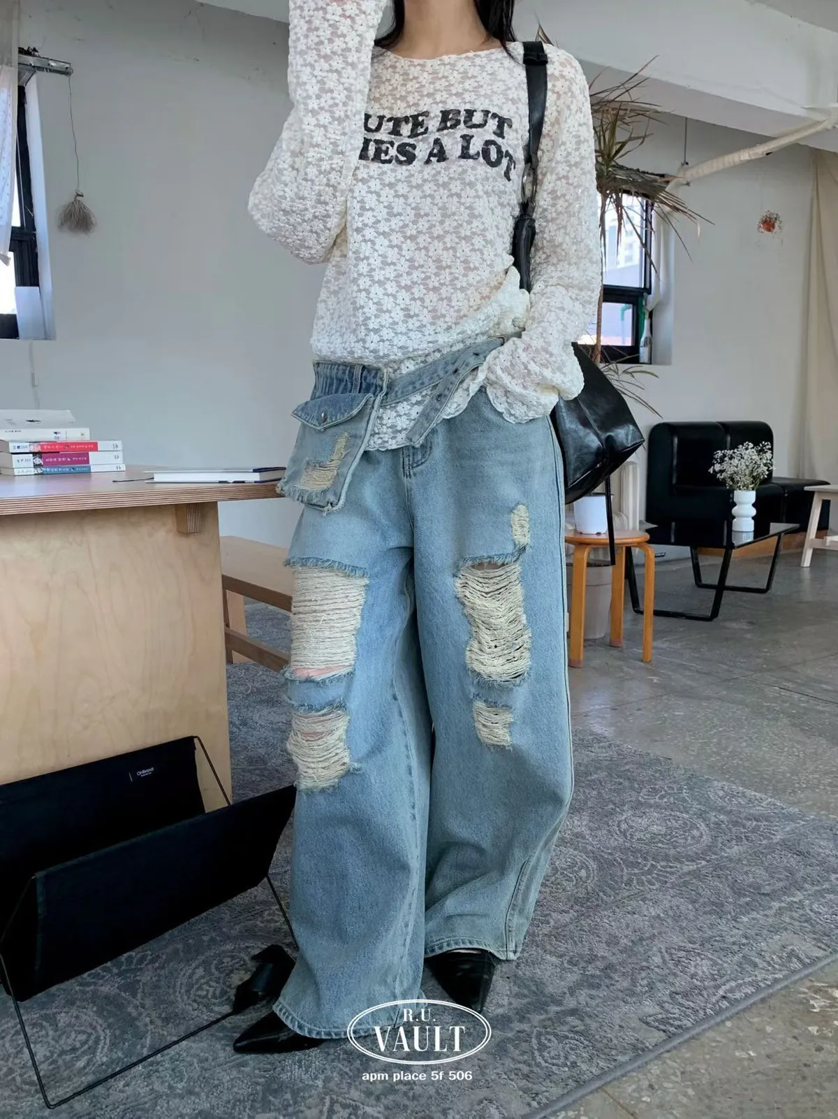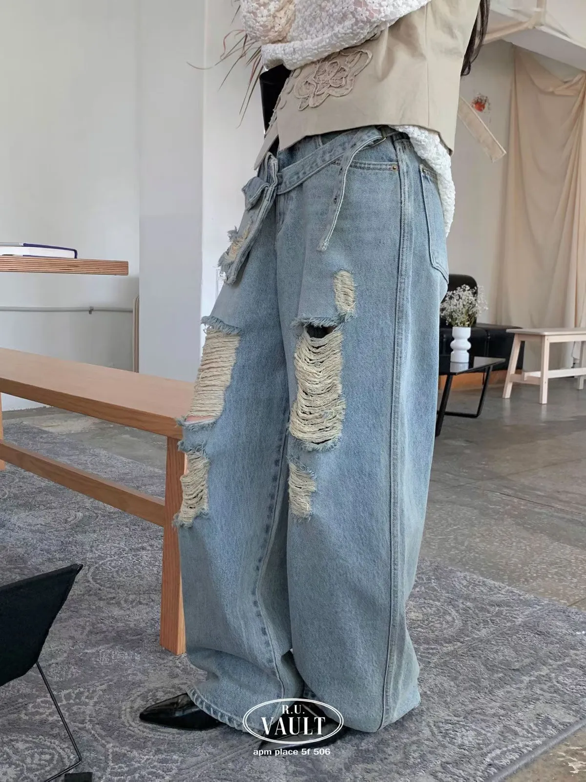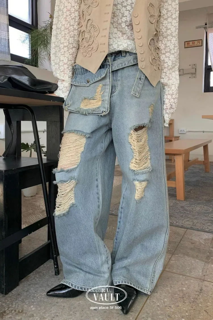 附腰包刷破牛仔褲