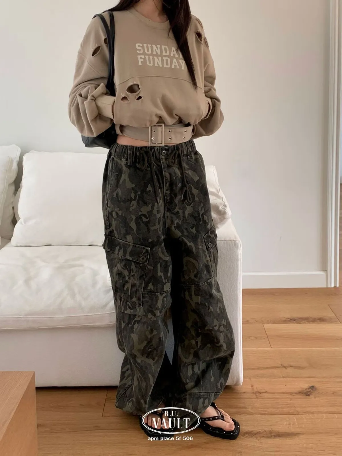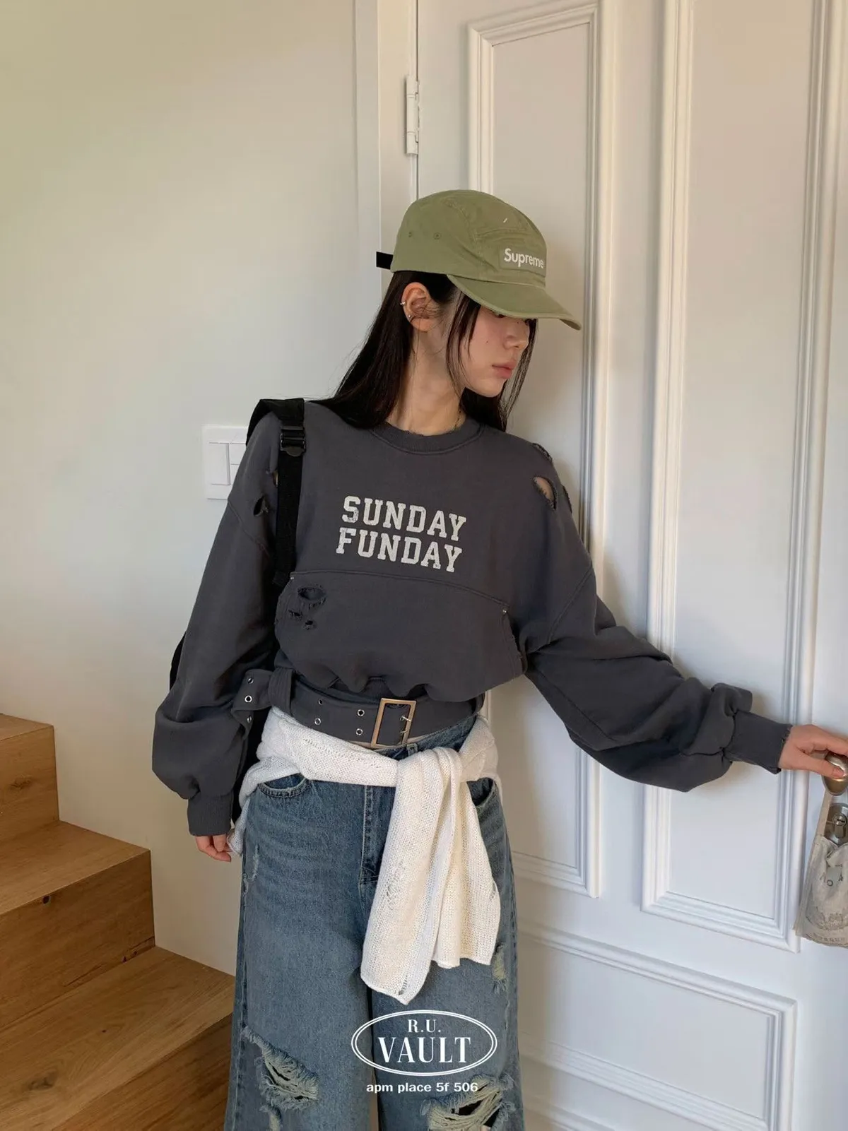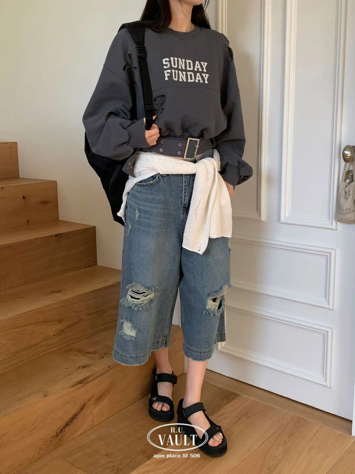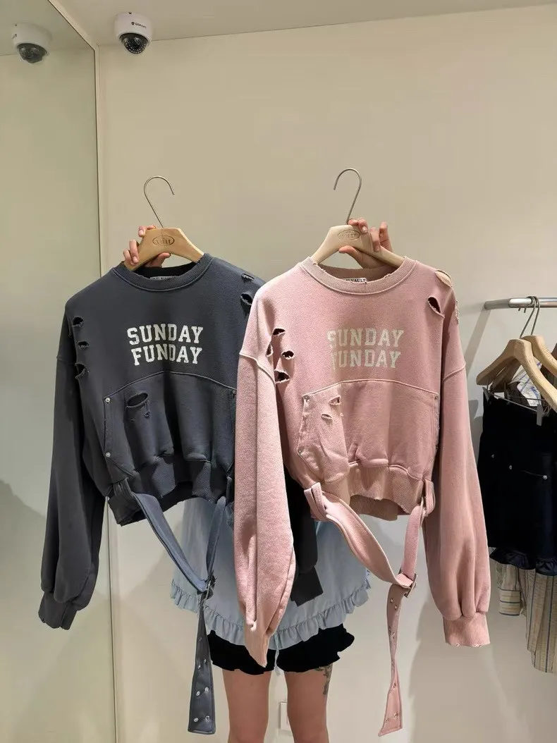 腰帶設計破破衛衣