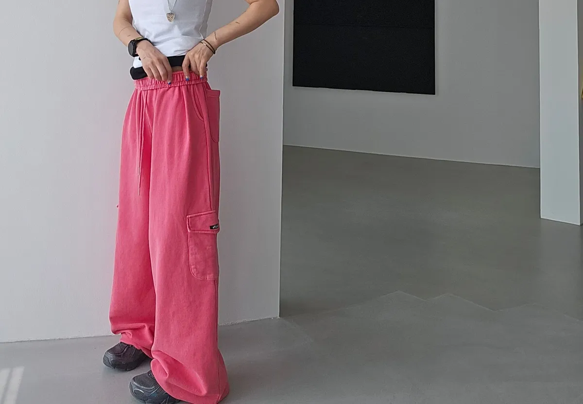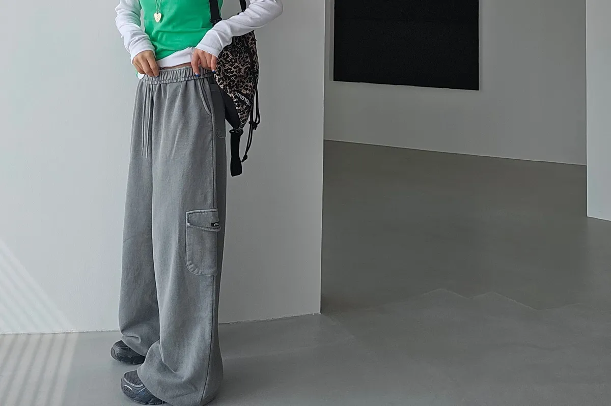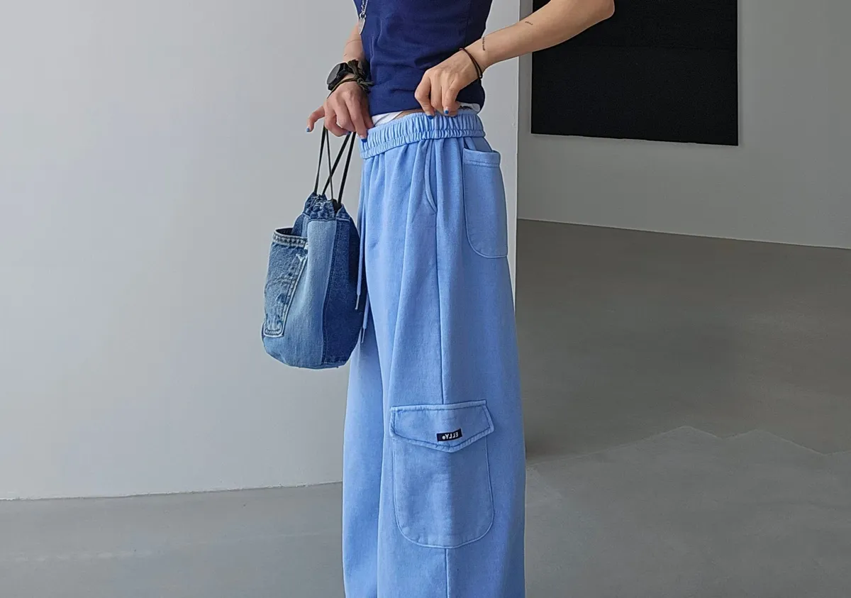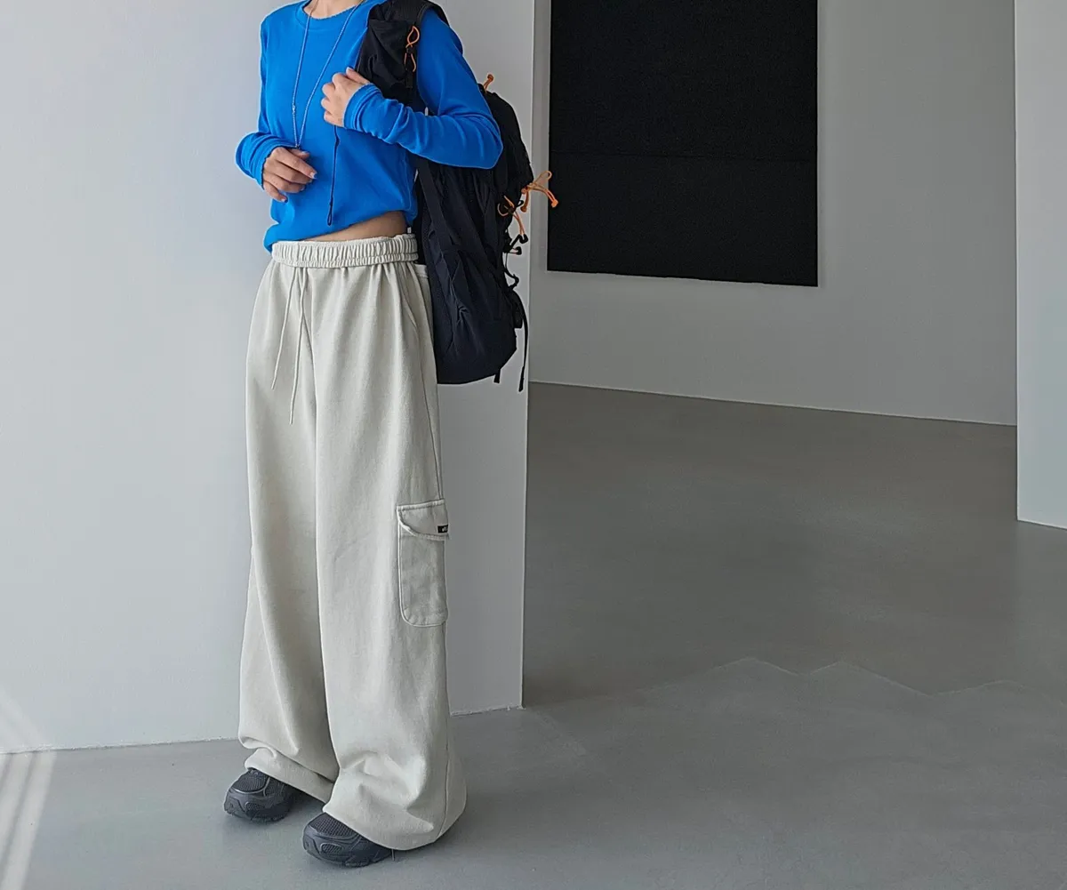 鬆緊仿舊水洗棉口袋可縮口棉長褲