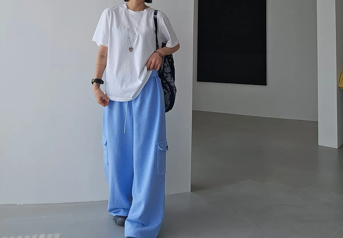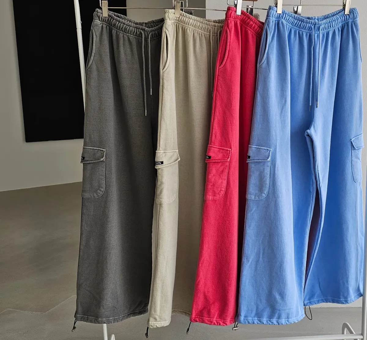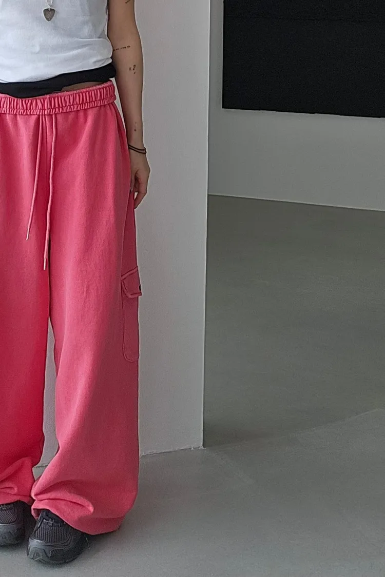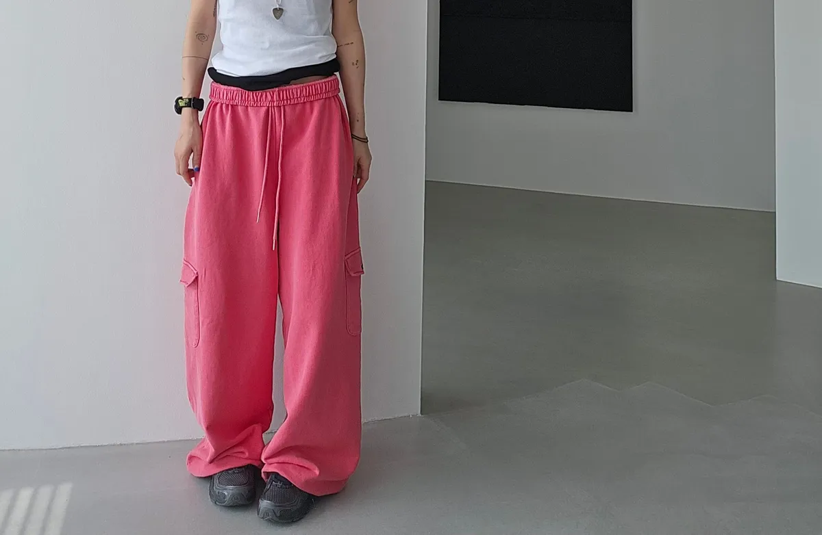鬆緊仿舊水洗棉口袋可縮口棉長褲