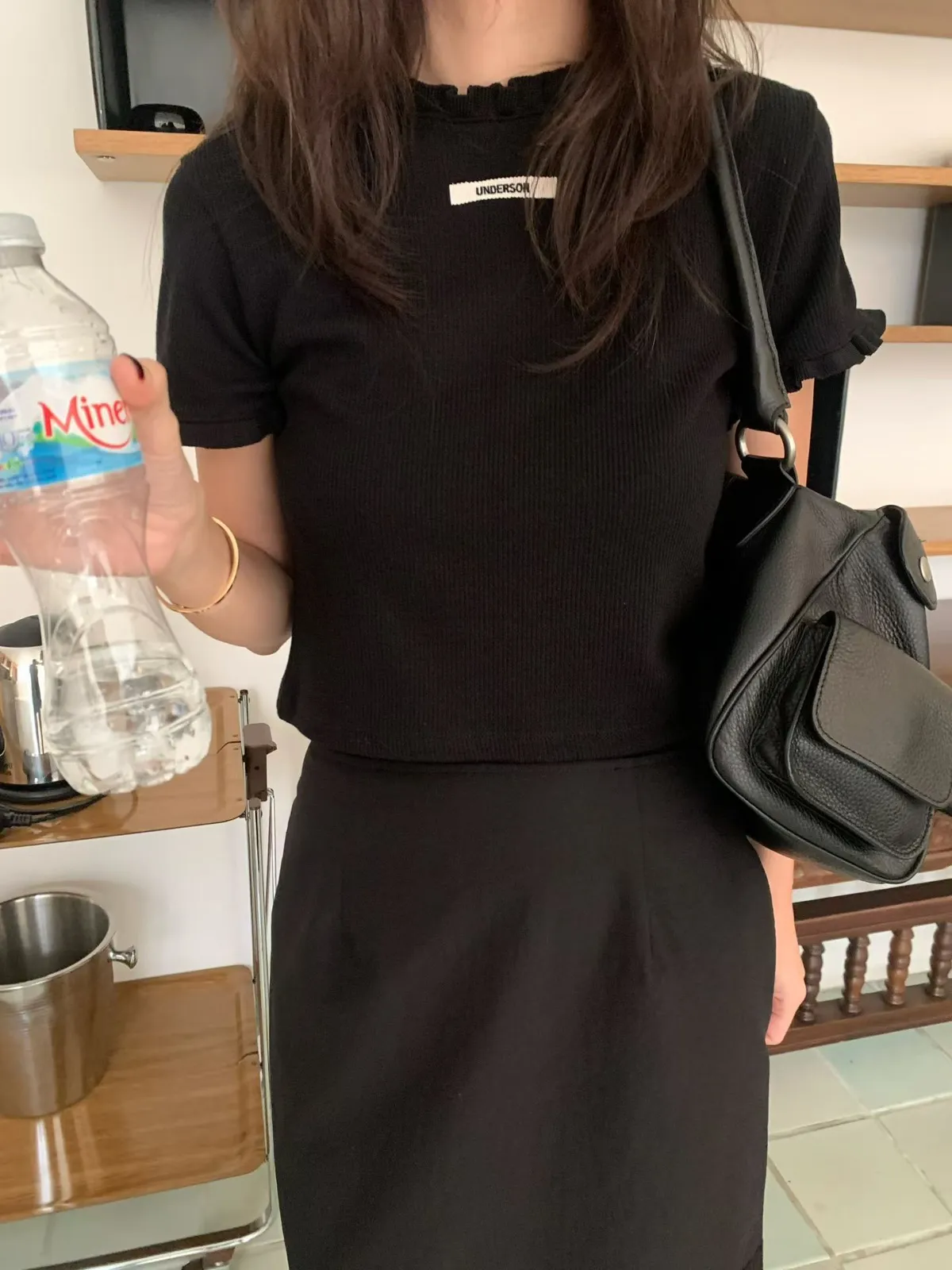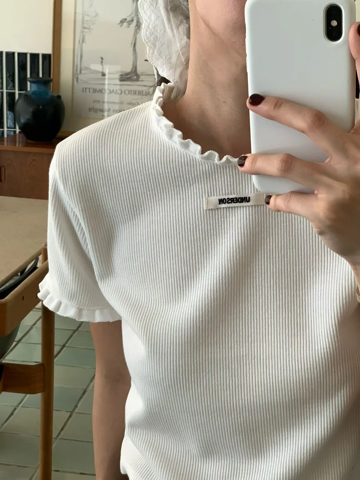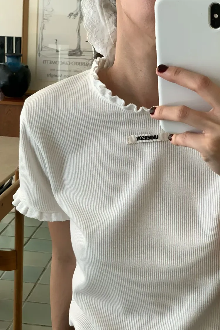 車標坑條捲邊上衣