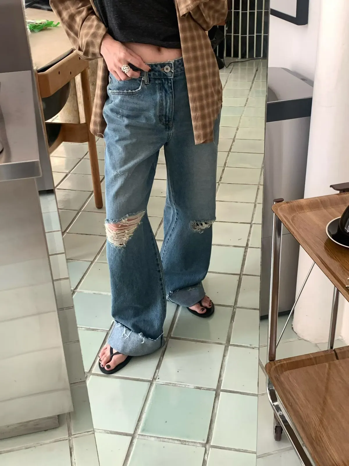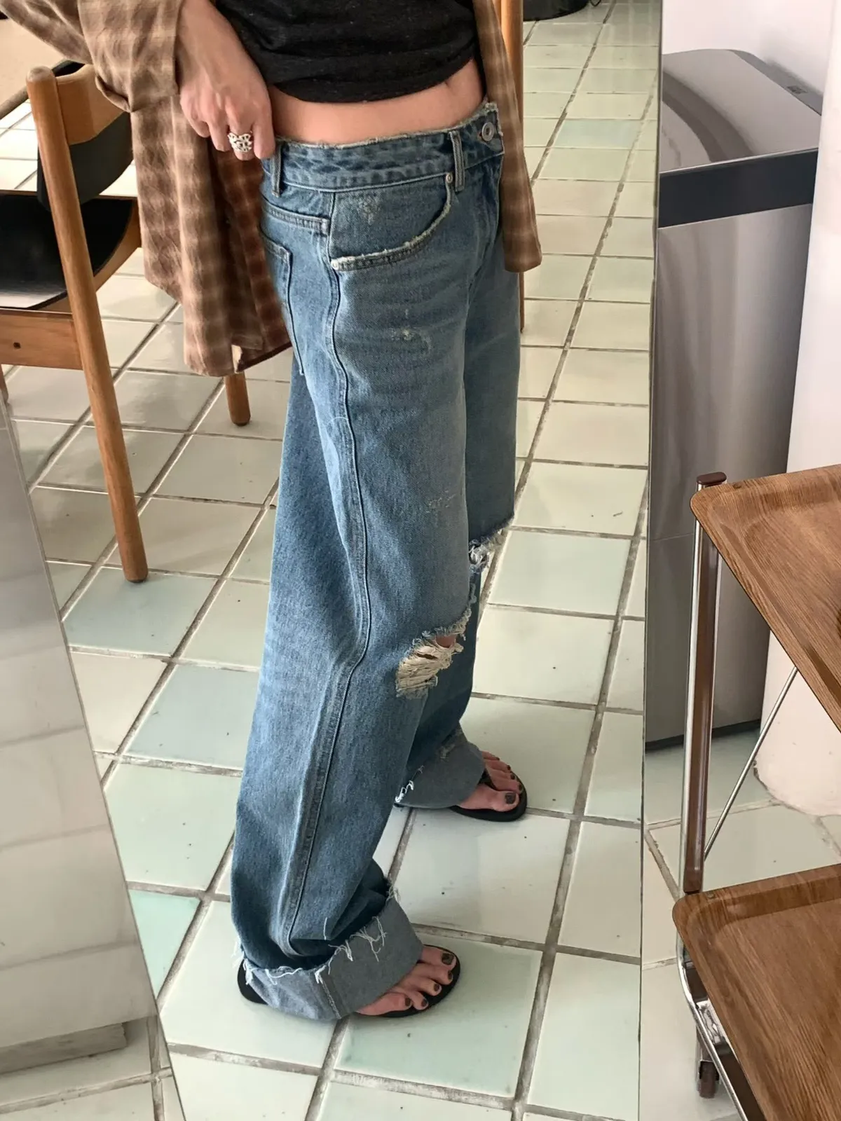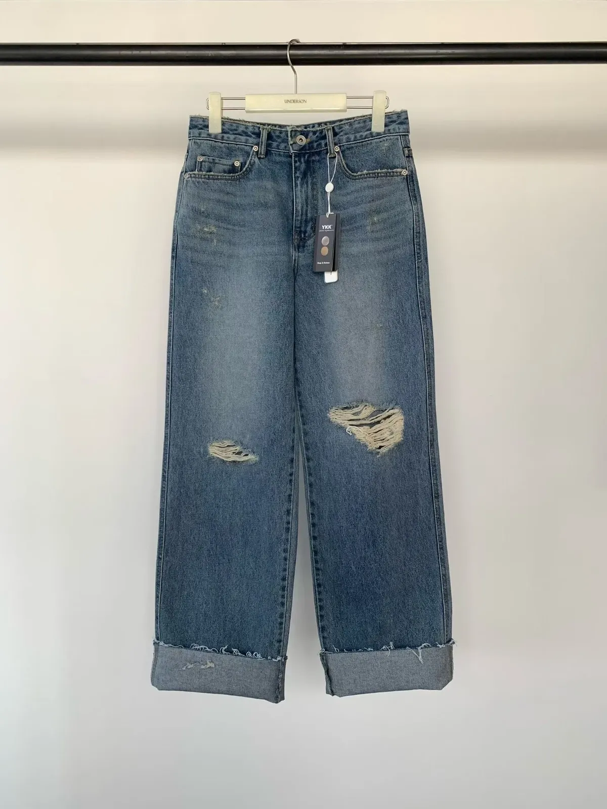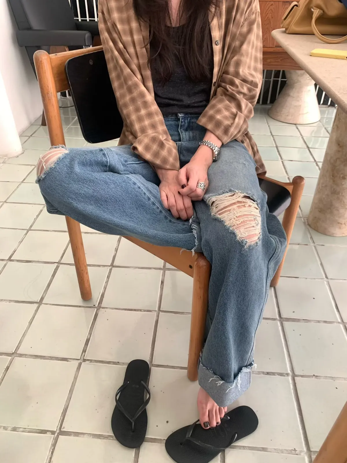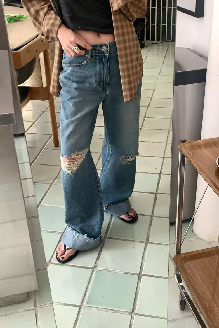 反折刷破牛仔褲