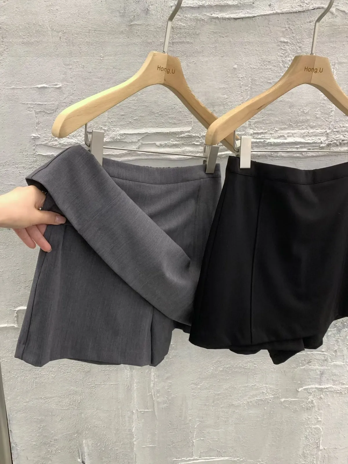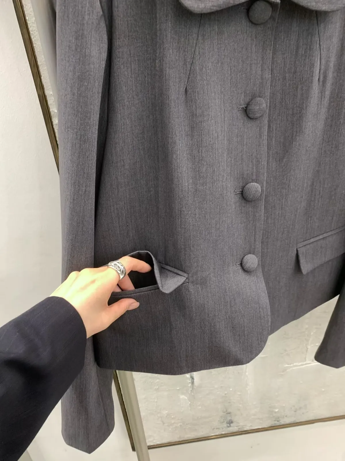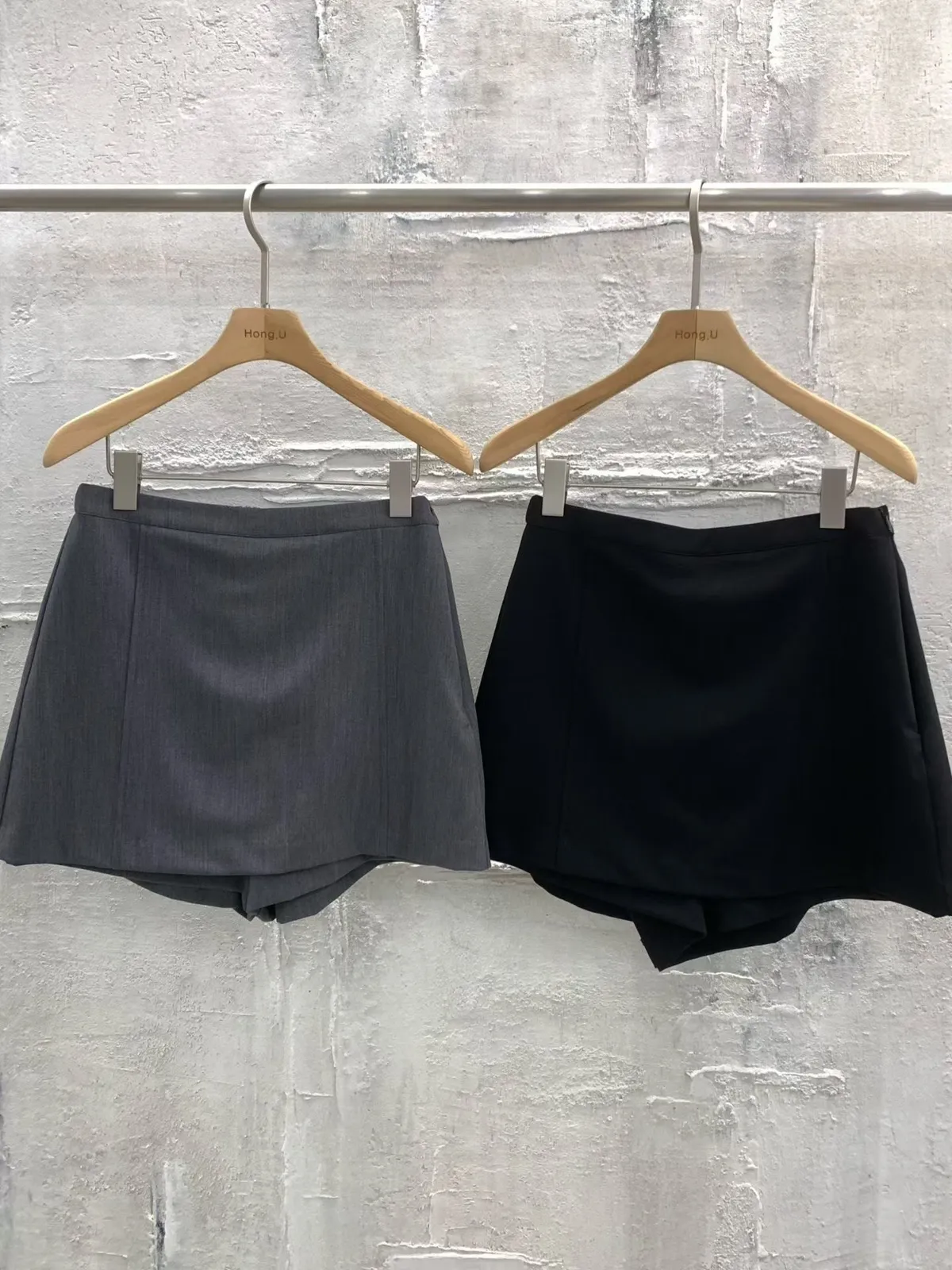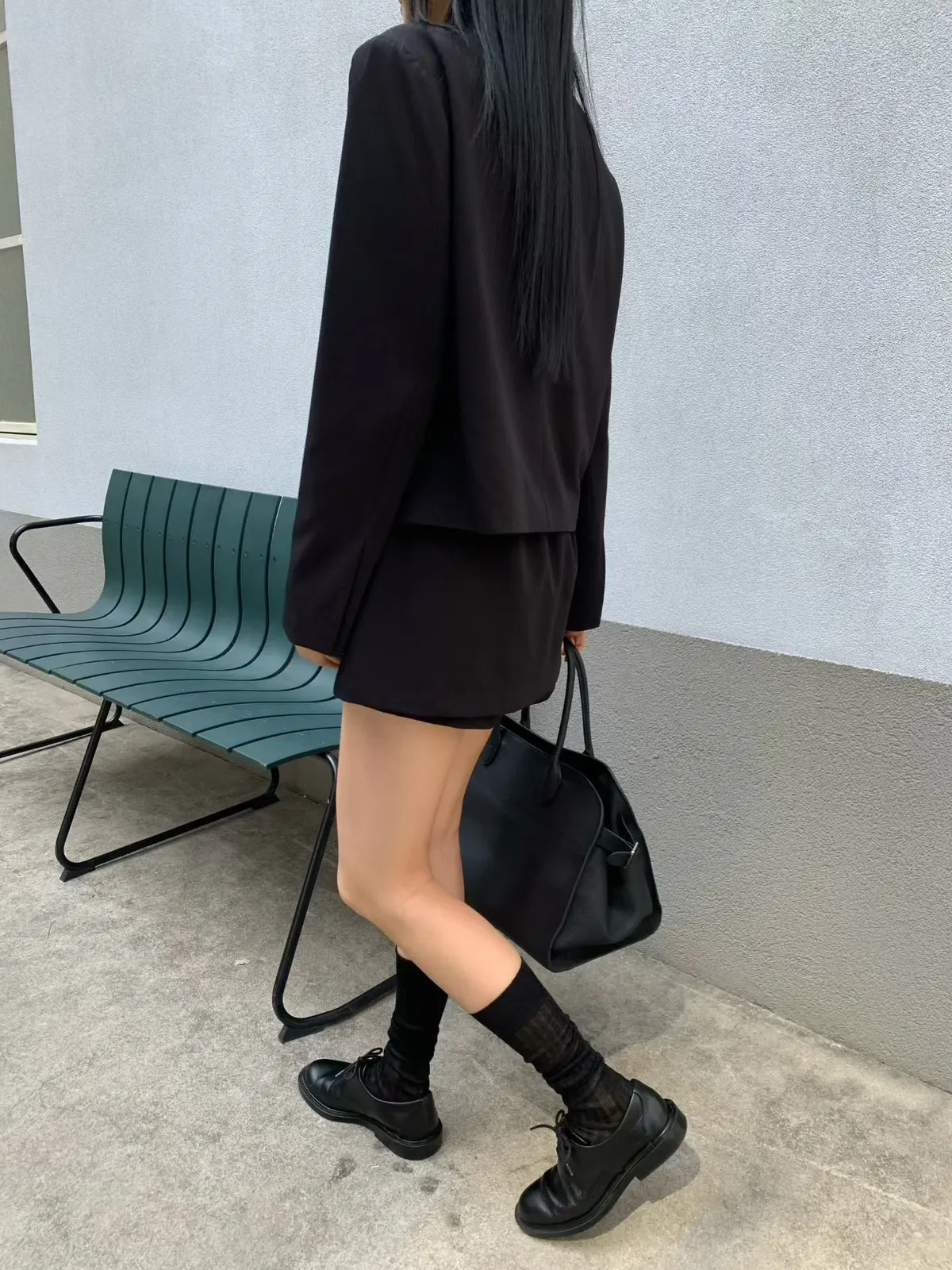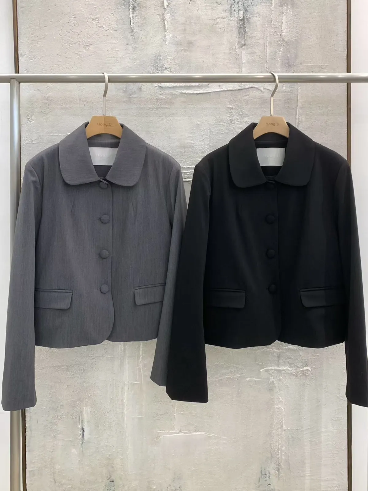 拼接圓領西裝外套短褲裙套裝
