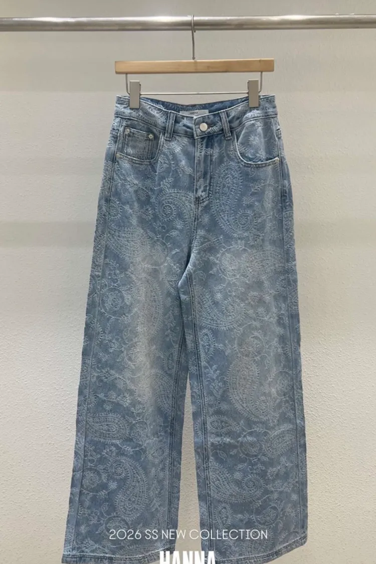 蕾絲花亮鑽牛仔褲