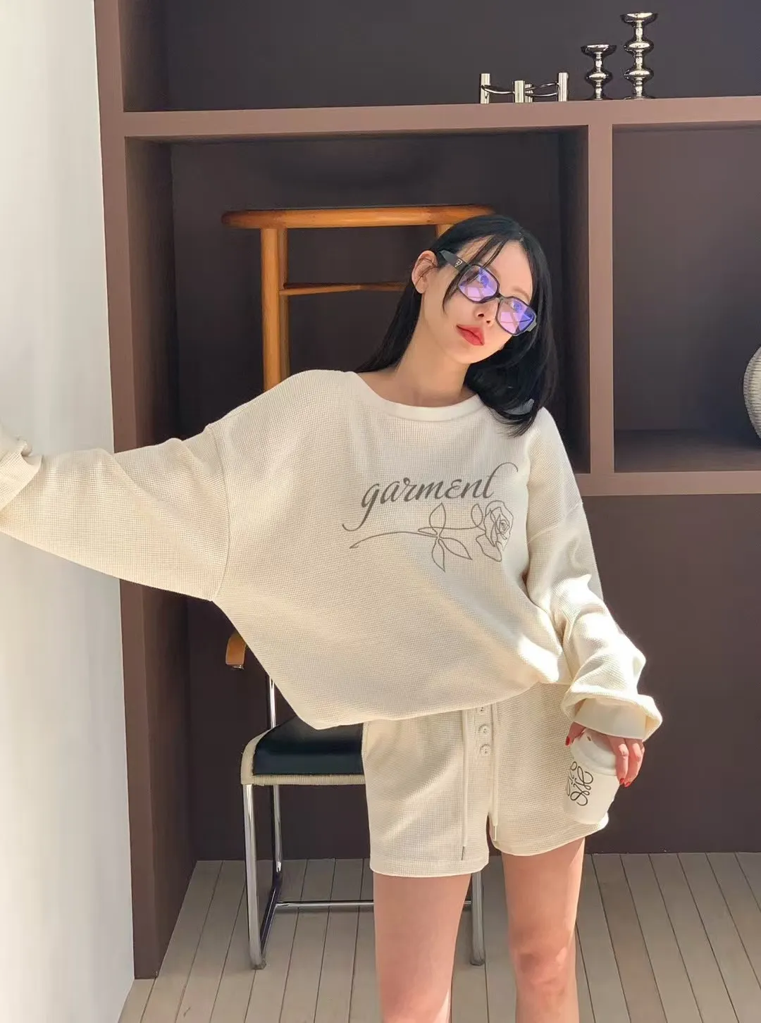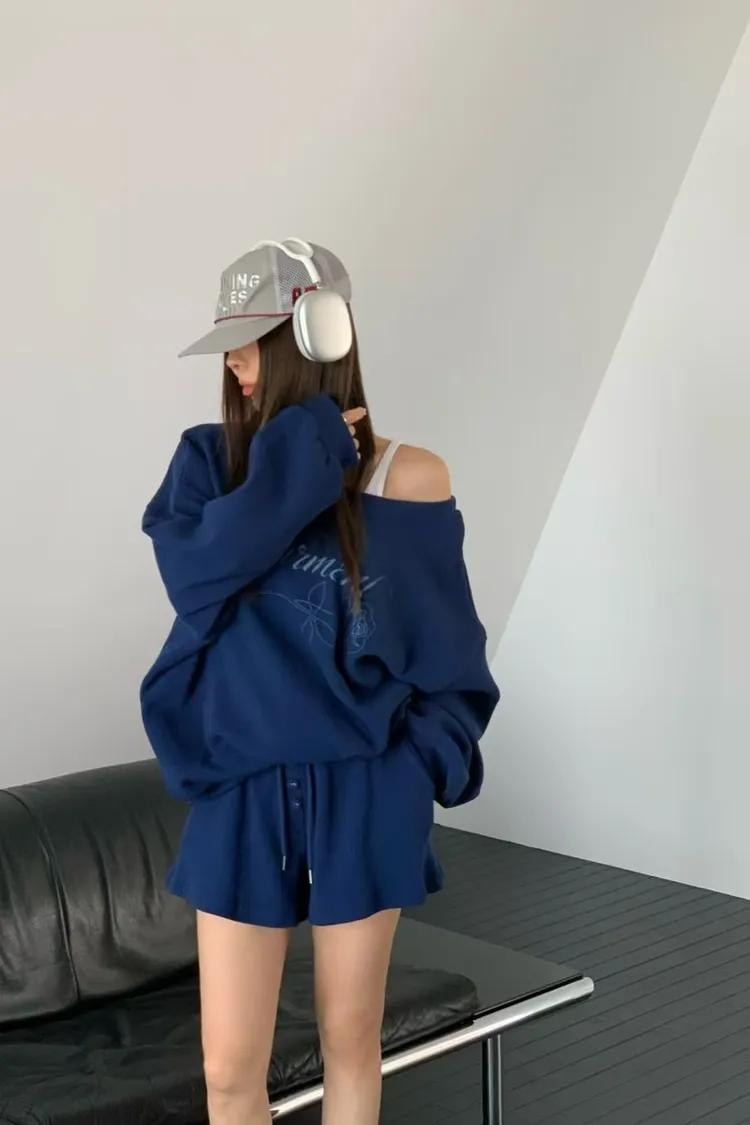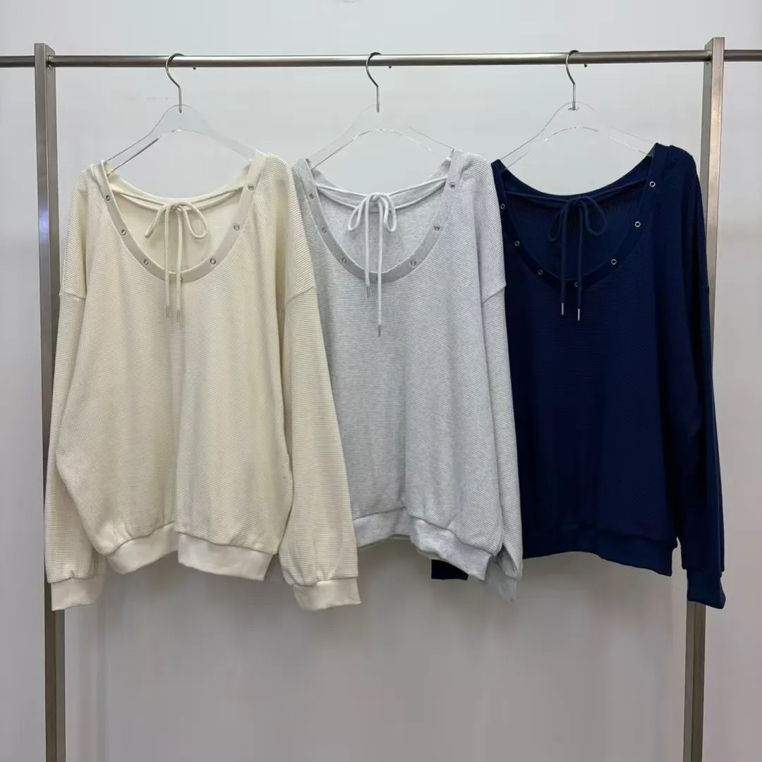 後綁繩鬆餅格紋衛衣套裝