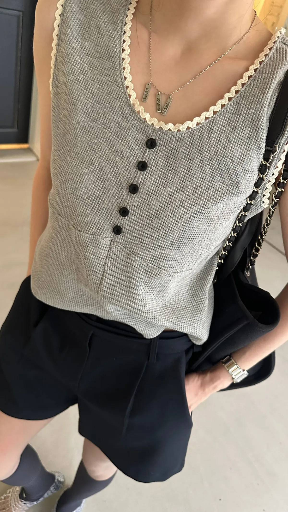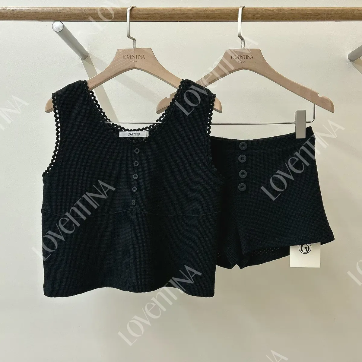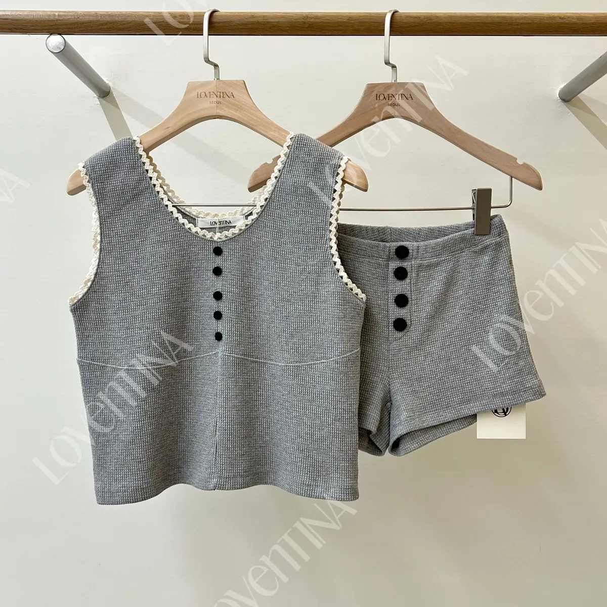 蕾絲滾邊鬆餅格紋背心套裝