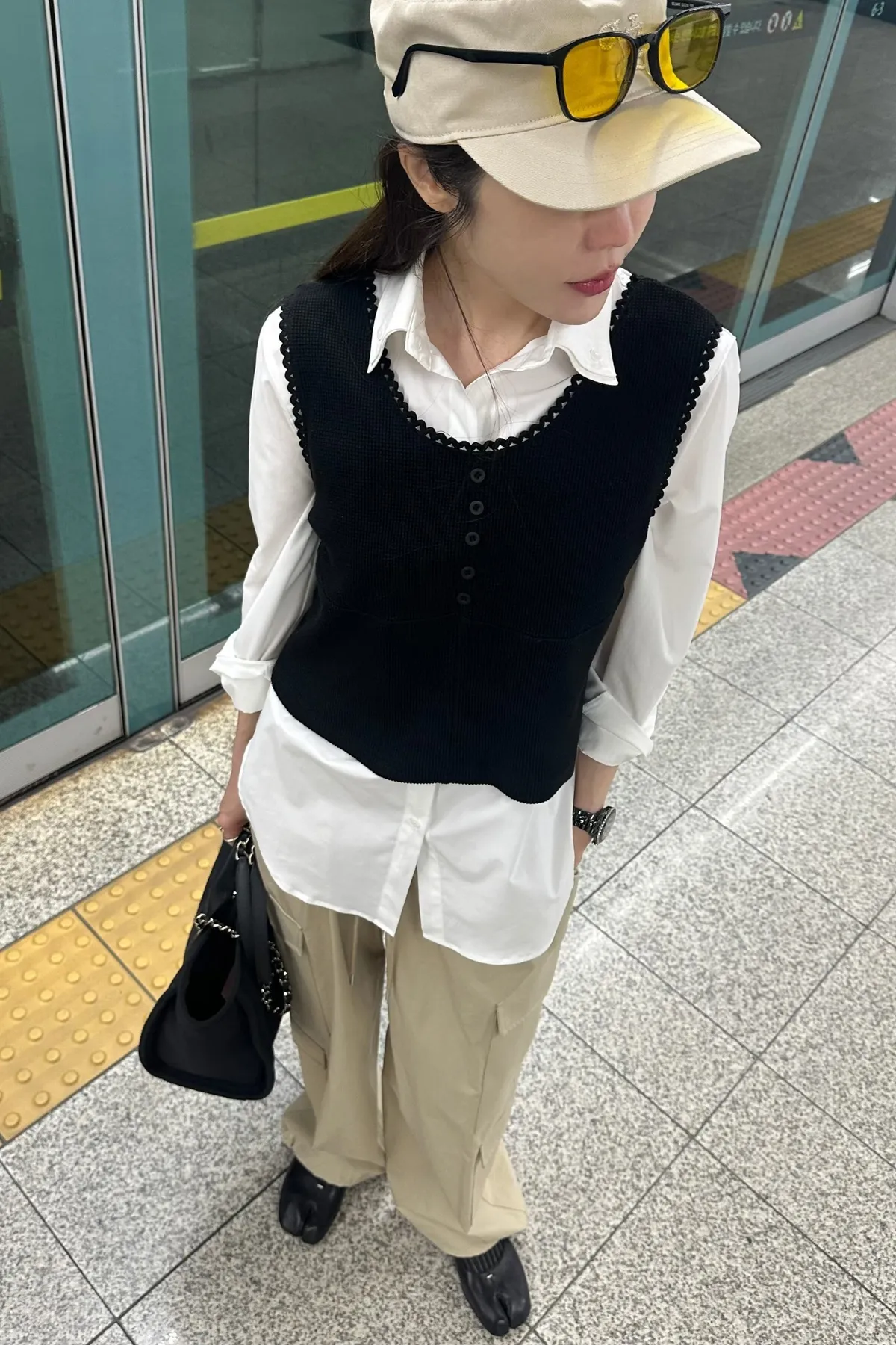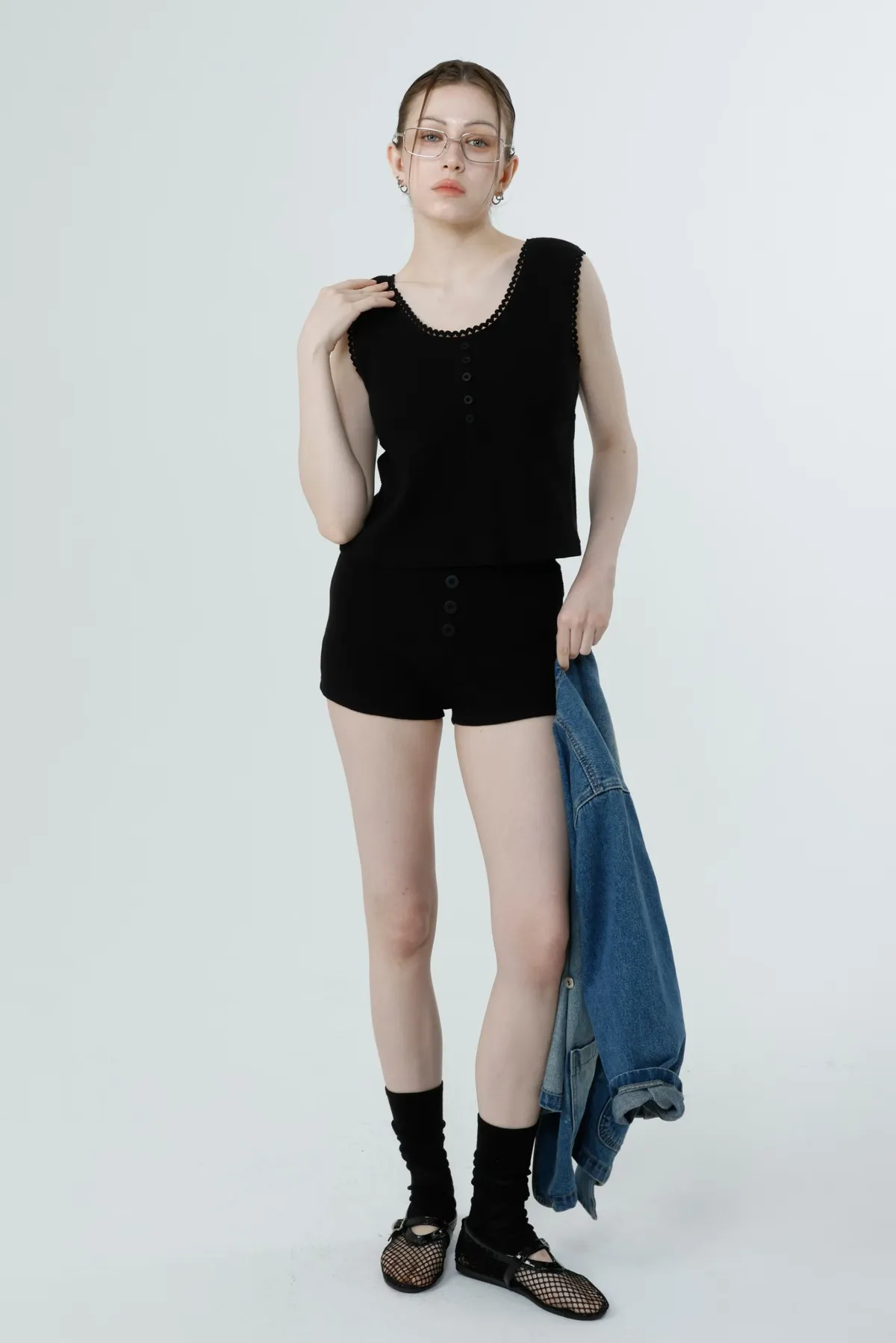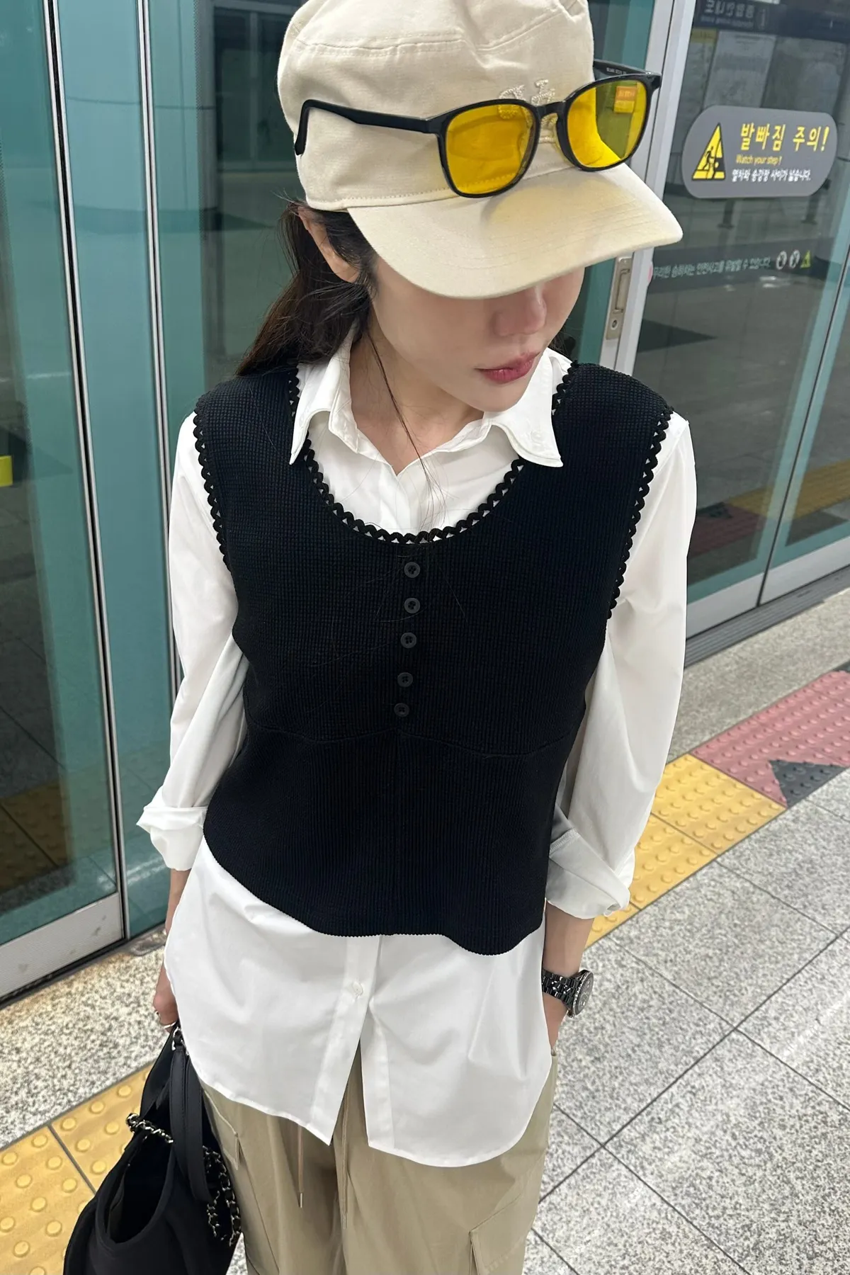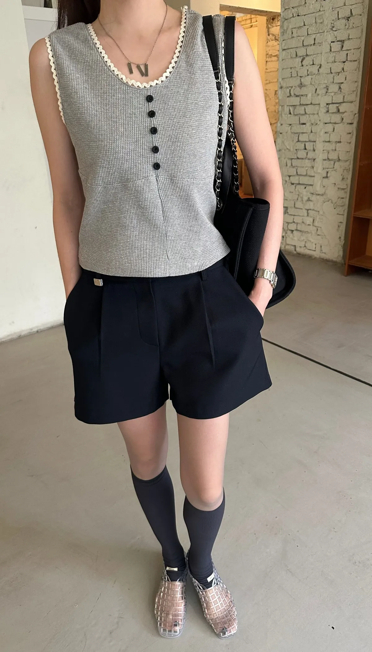 蕾絲滾邊鬆餅格紋背心套裝