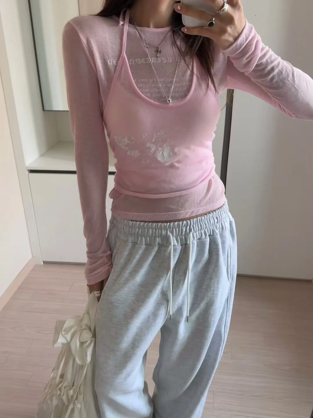 兩件式透膚背心+上衣
