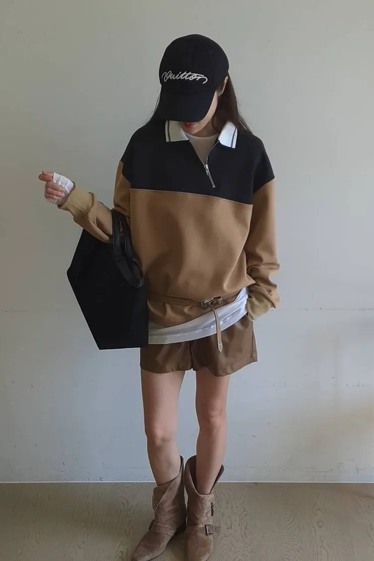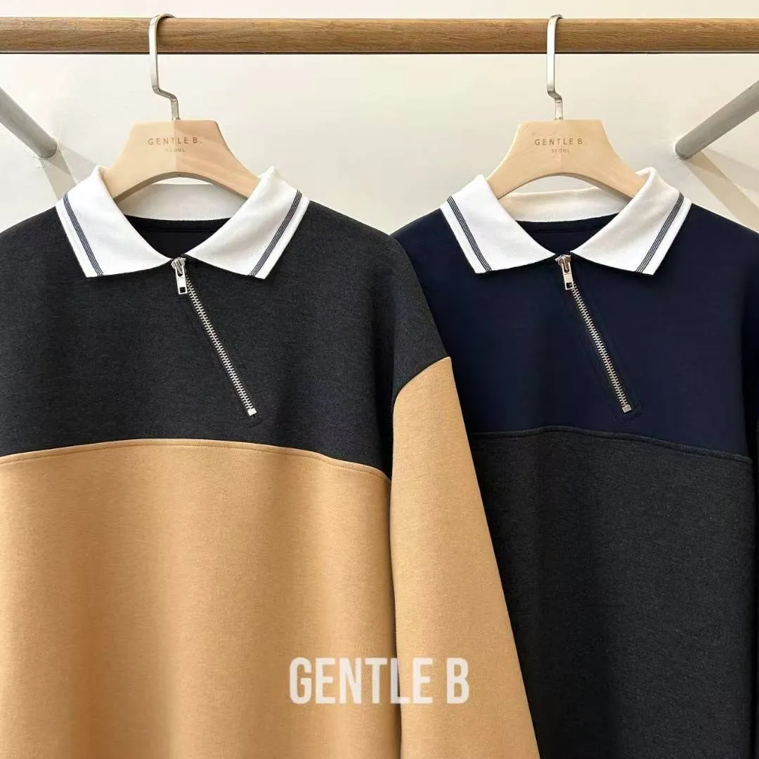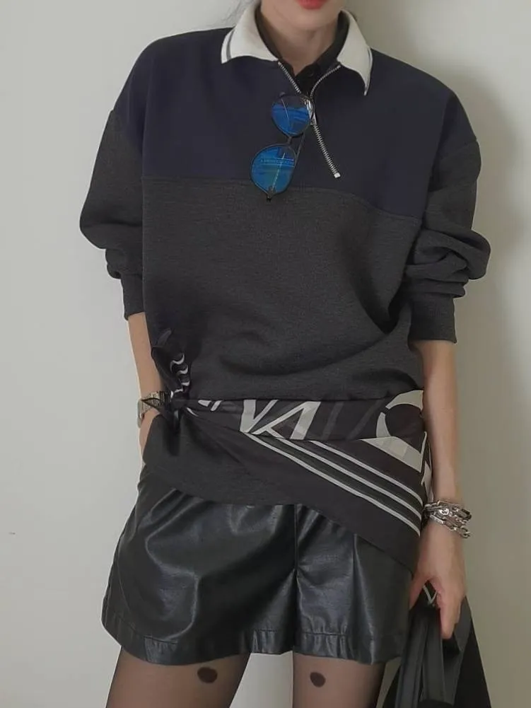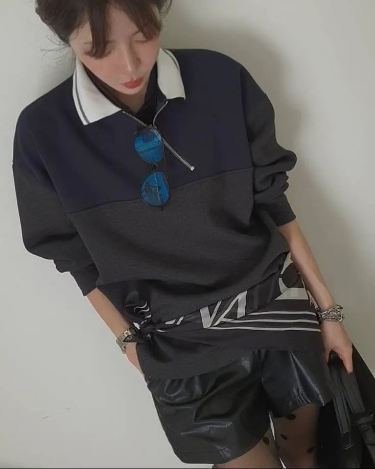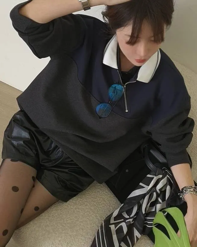 拉鍊跳色翻領上衣
