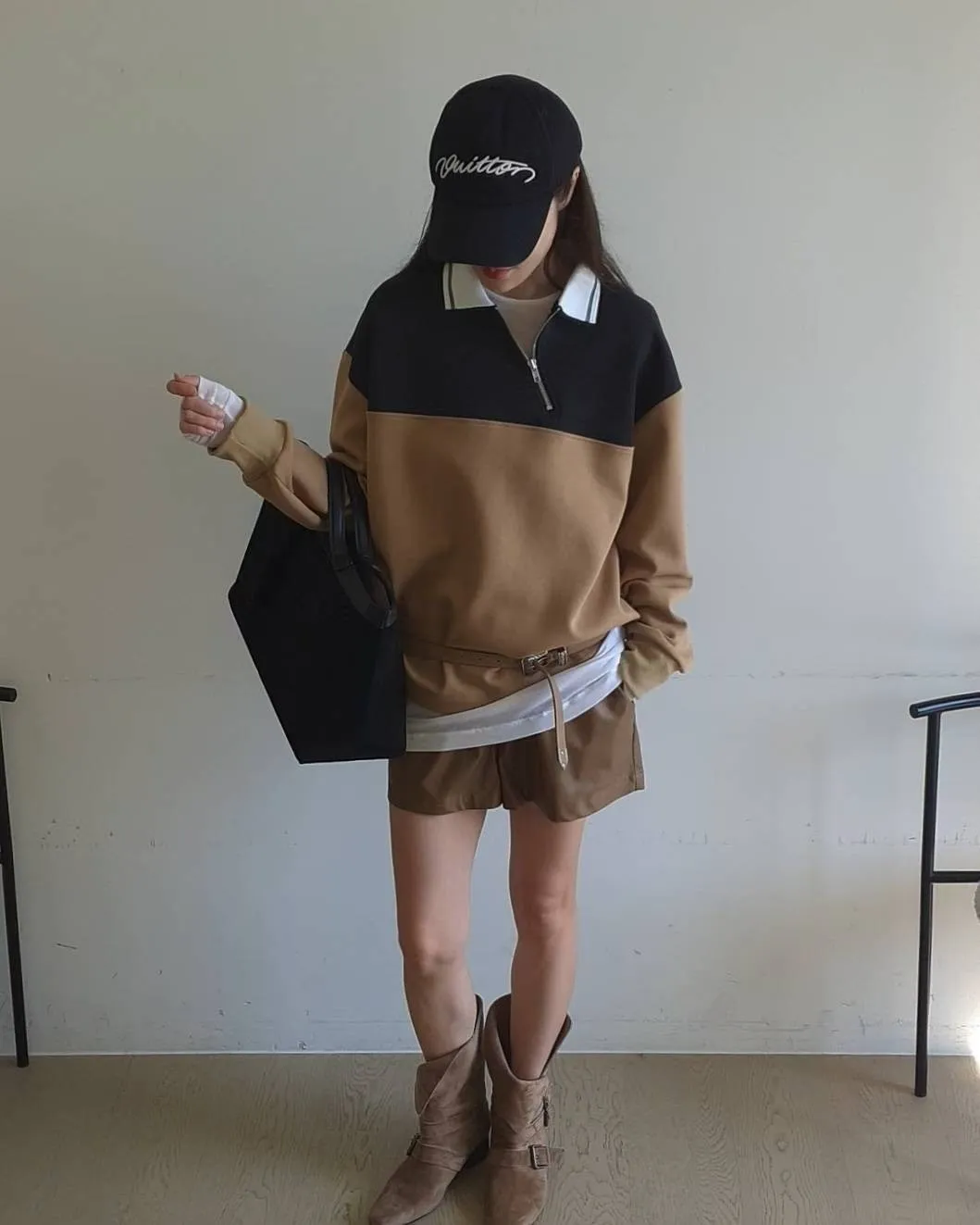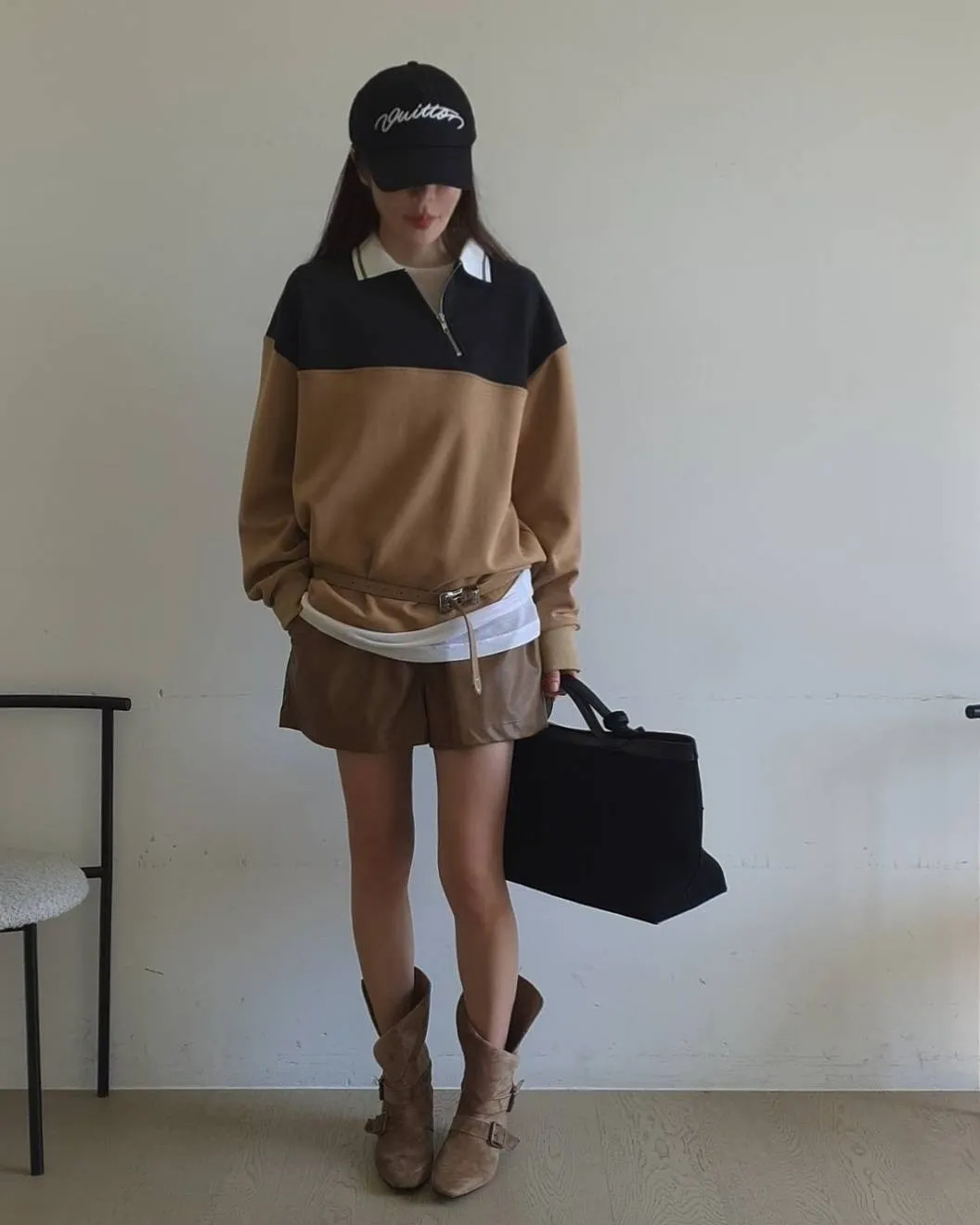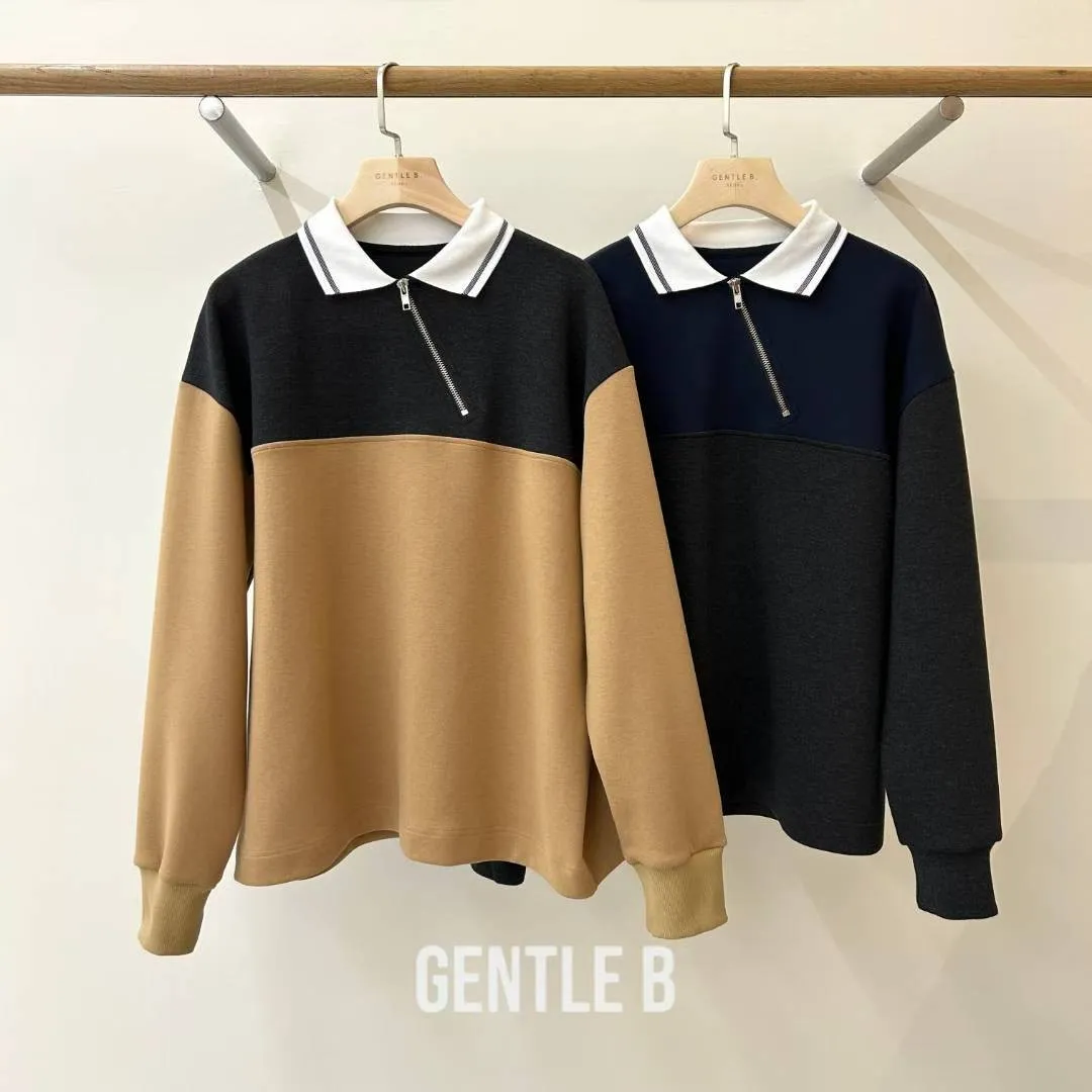 拉鍊跳色翻領上衣