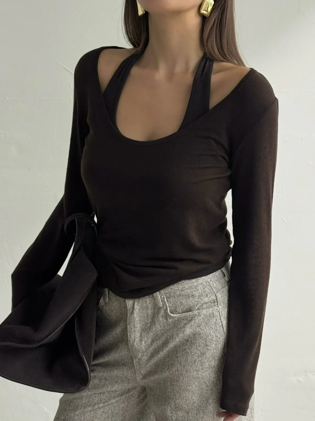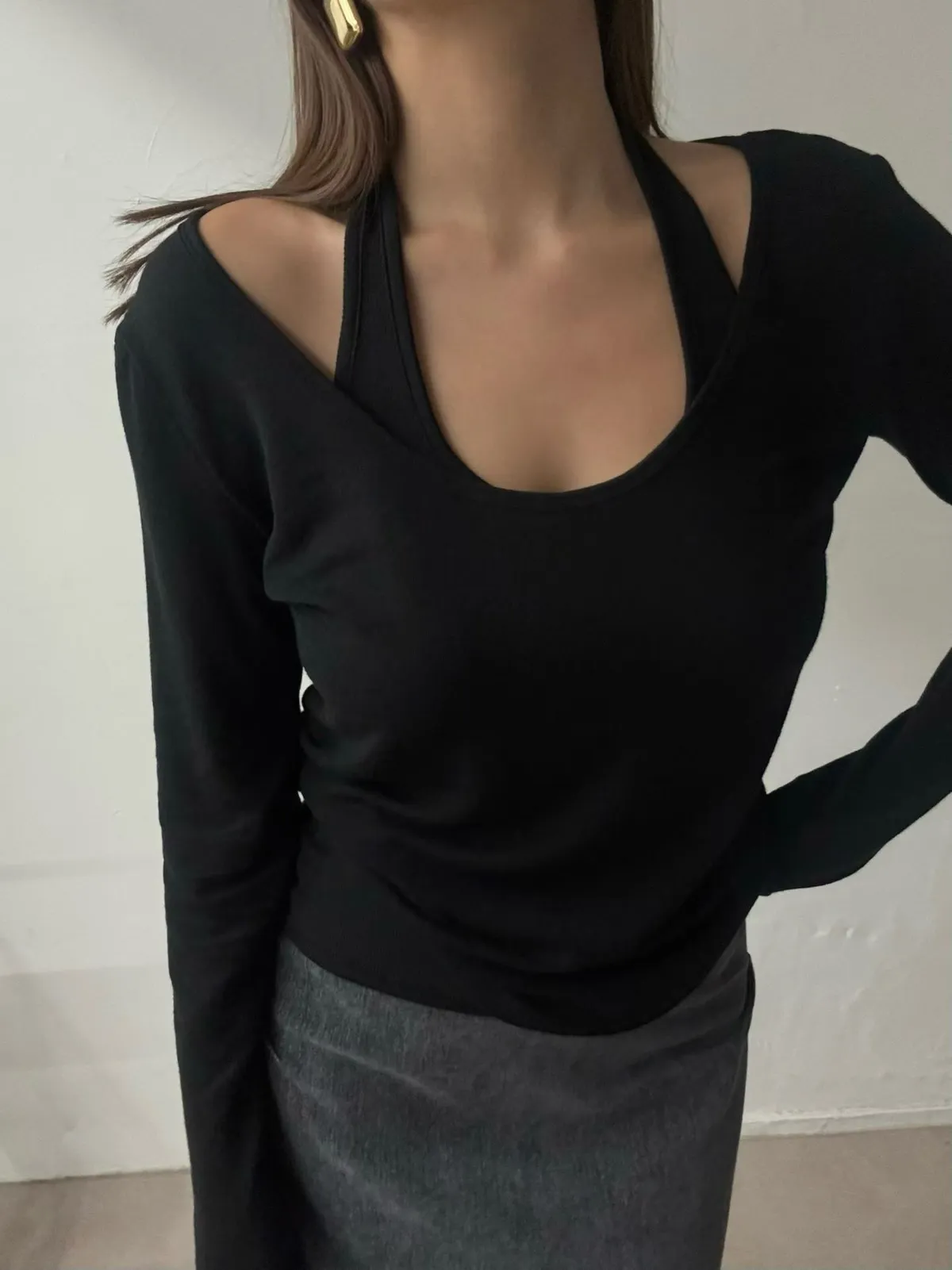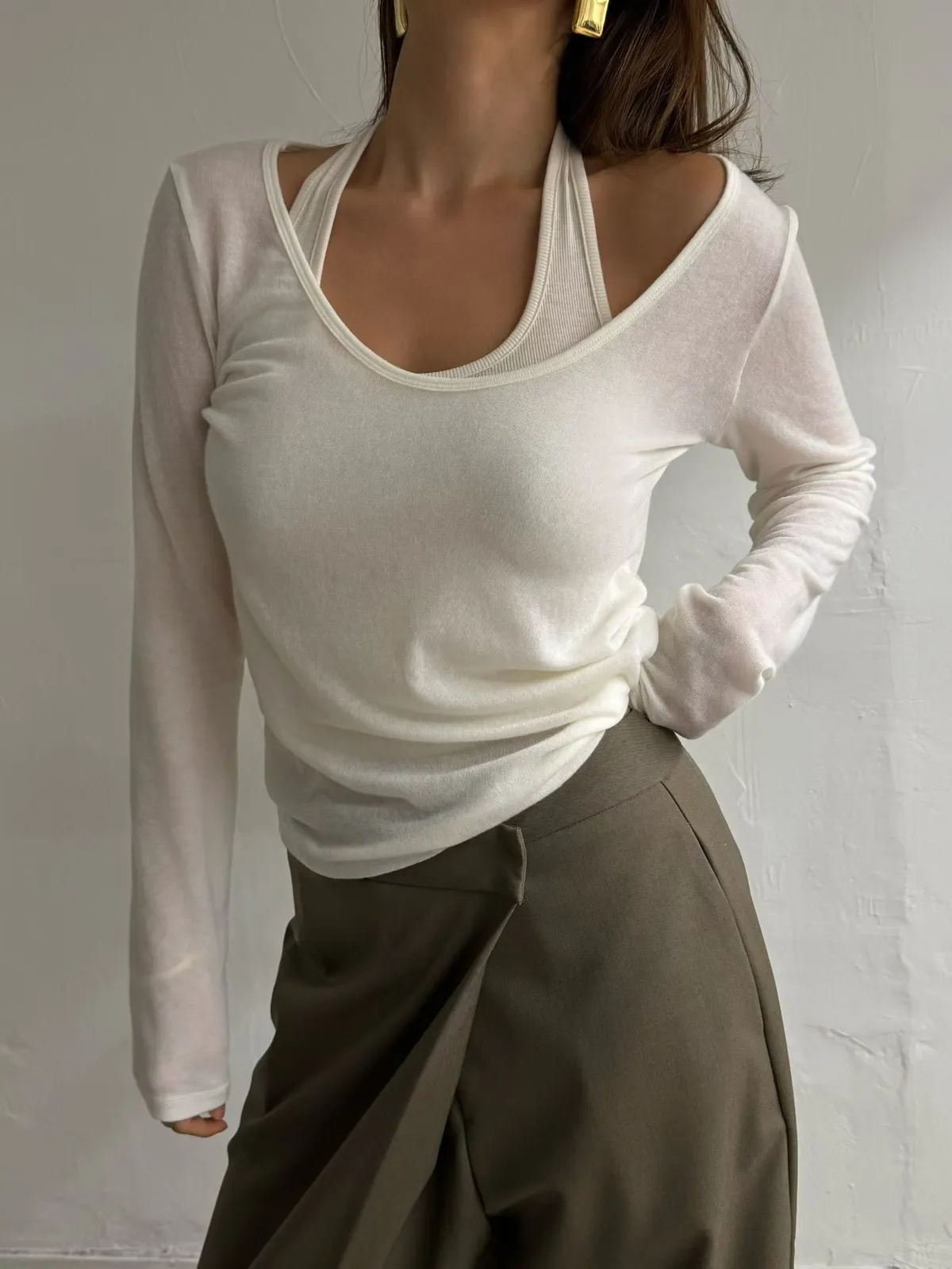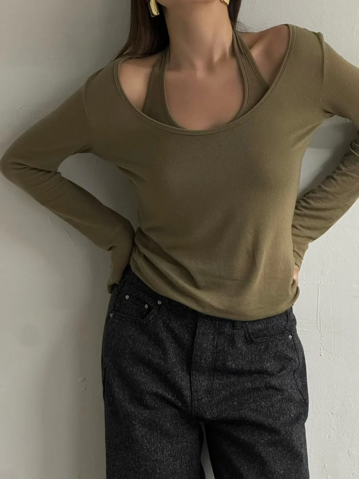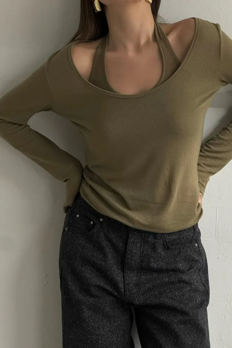 寬領上衣+繞脖背心