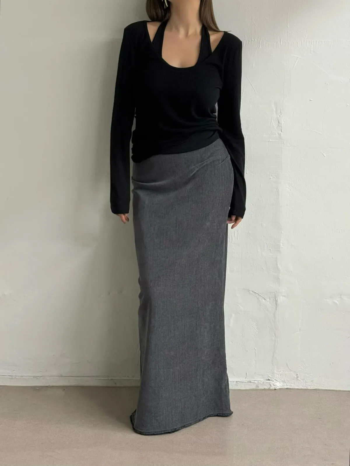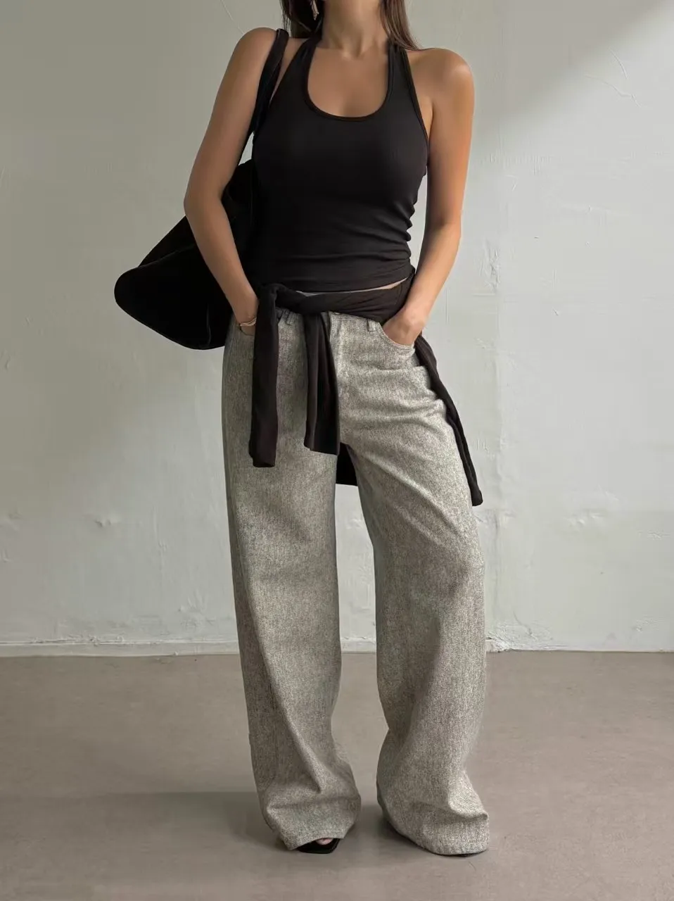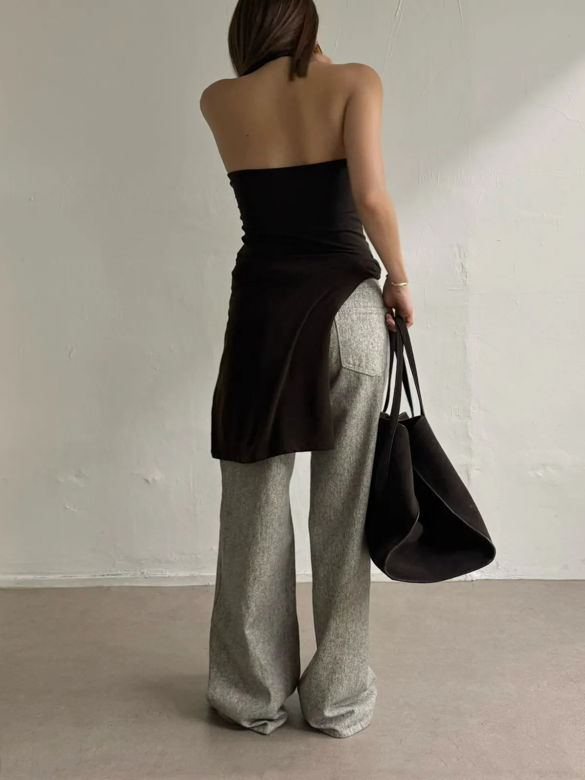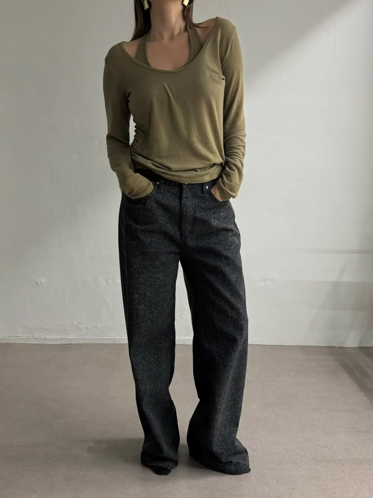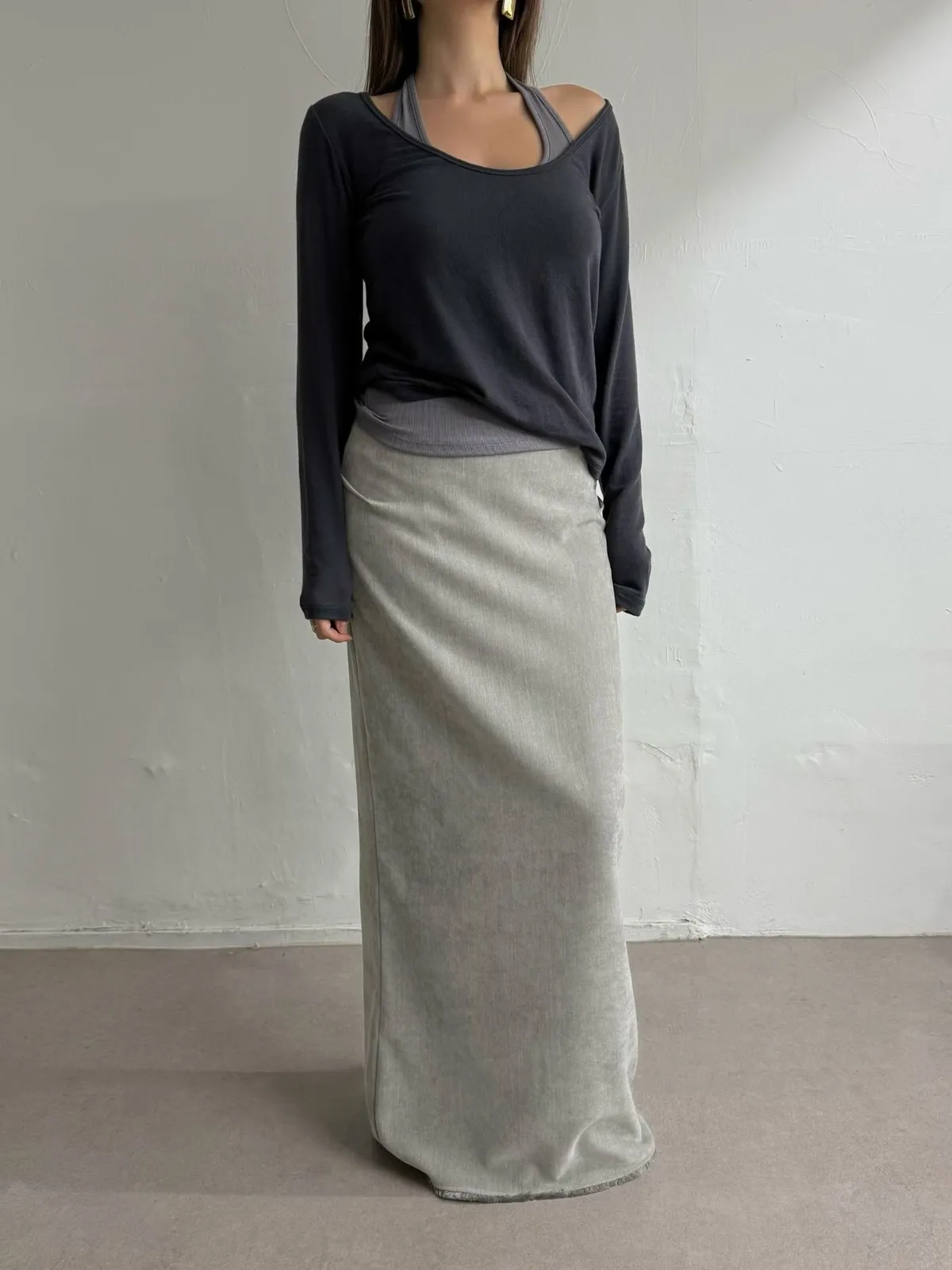 寬領上衣+繞脖背心