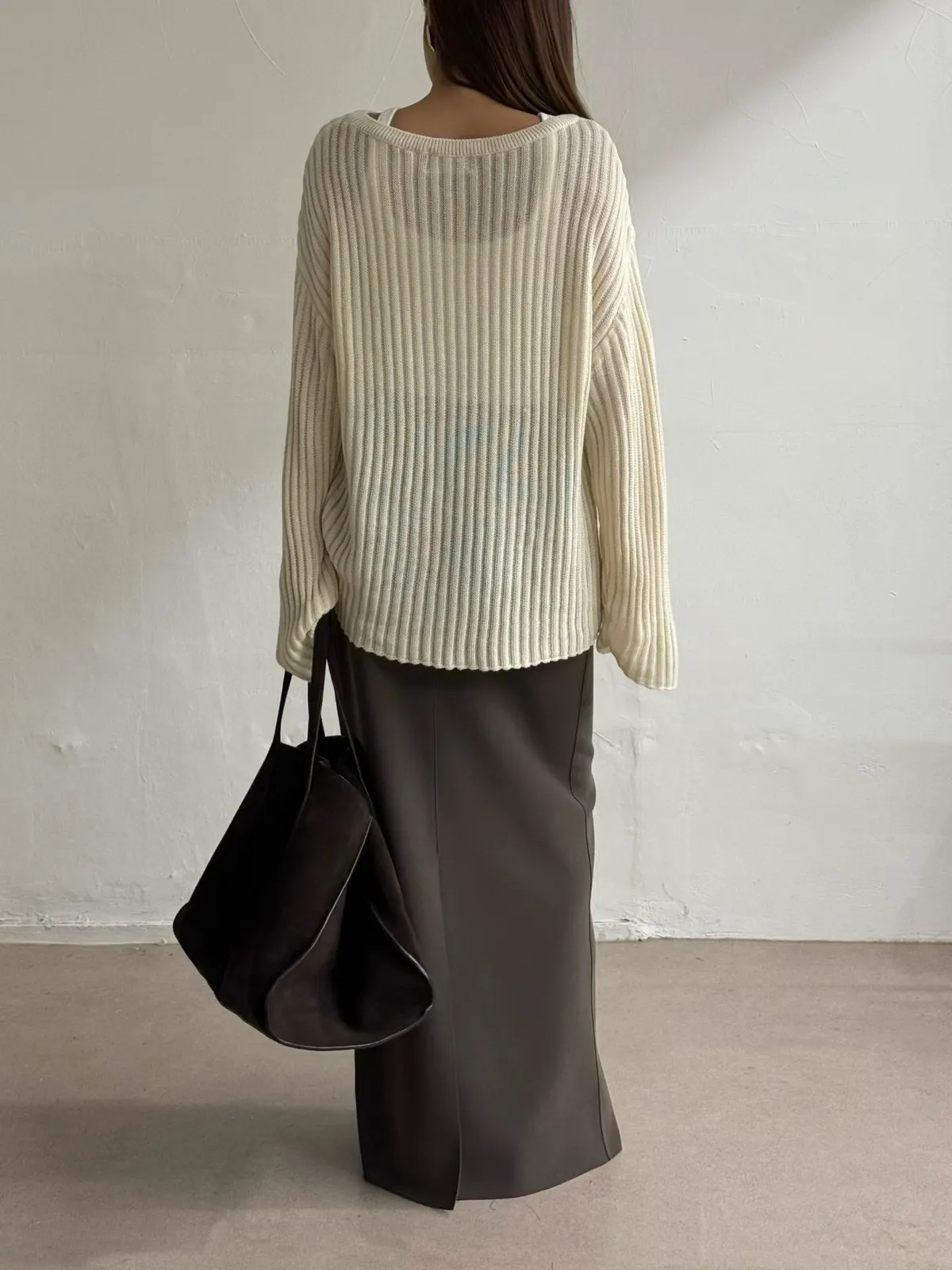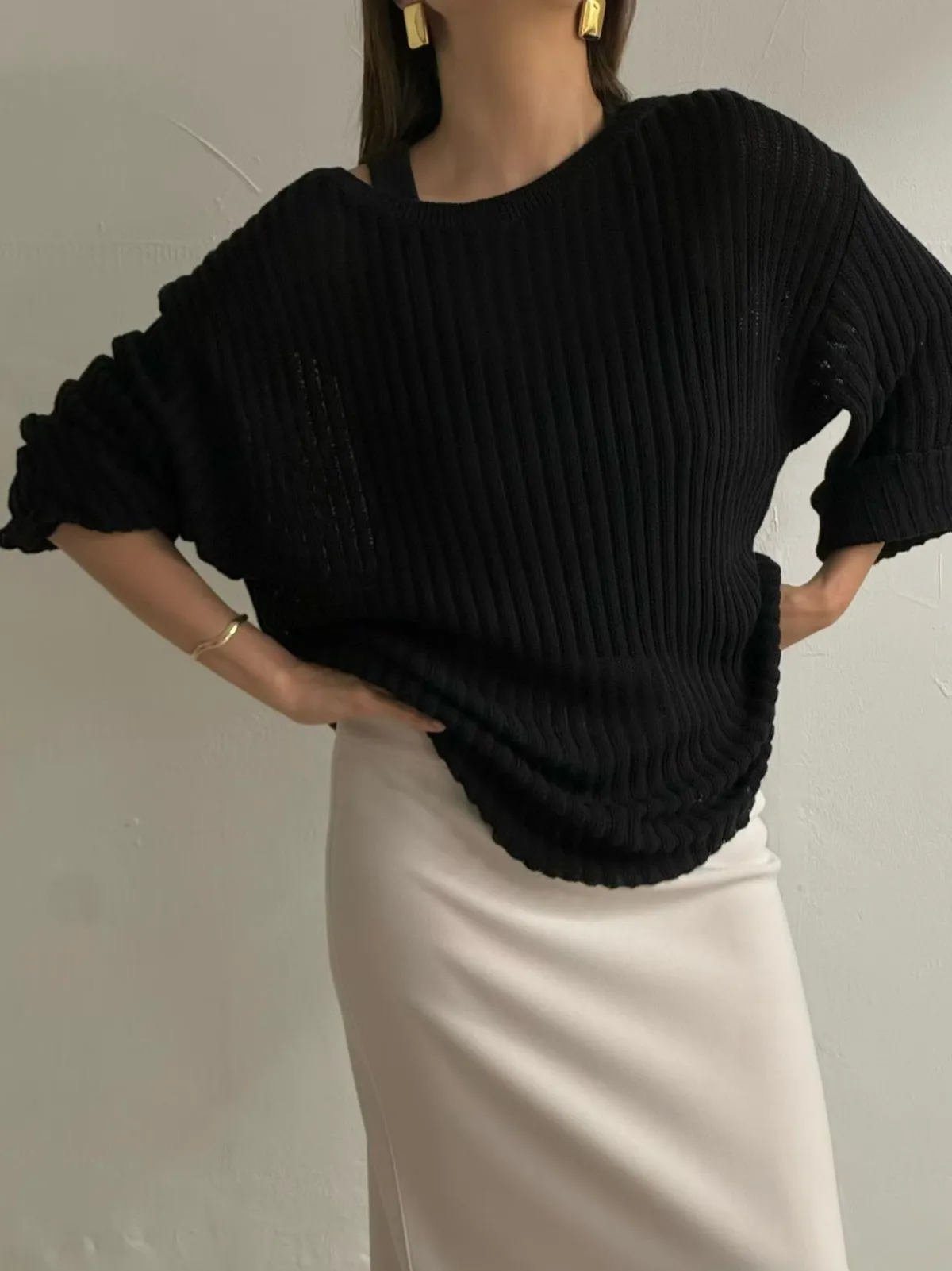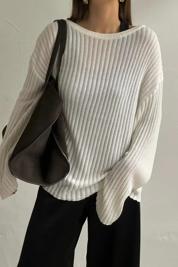 坑條透膚長上衣