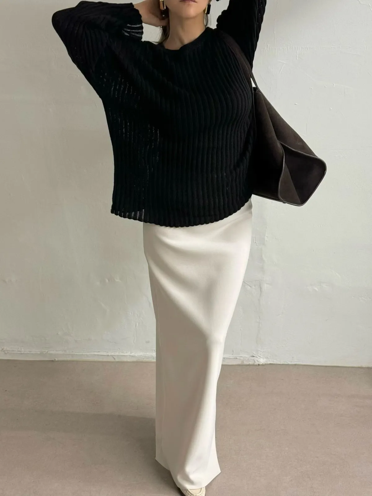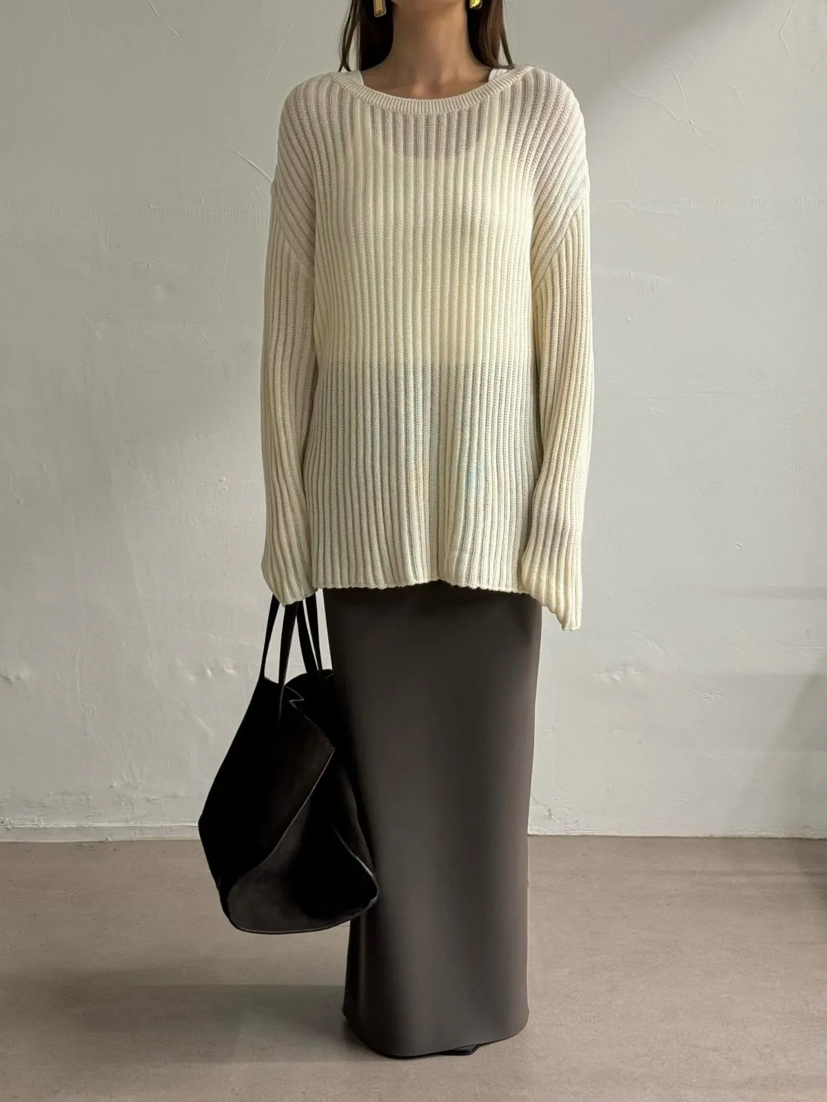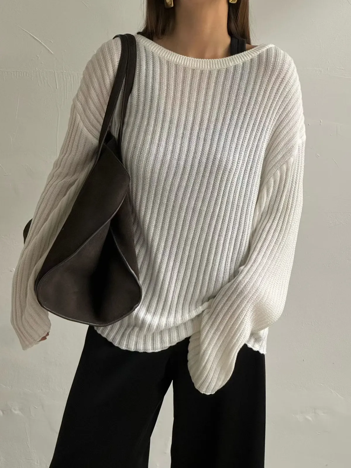 坑條透膚長上衣