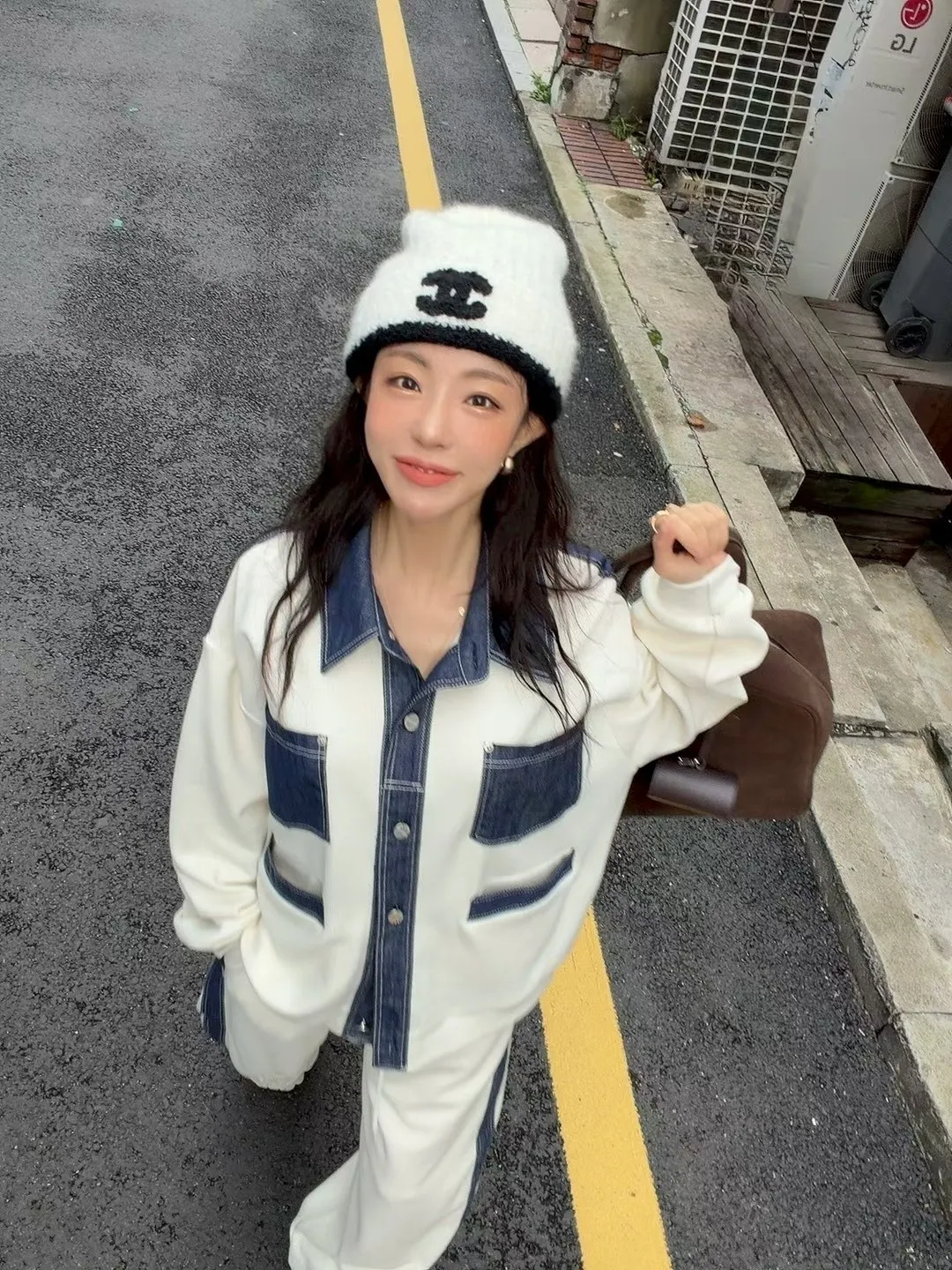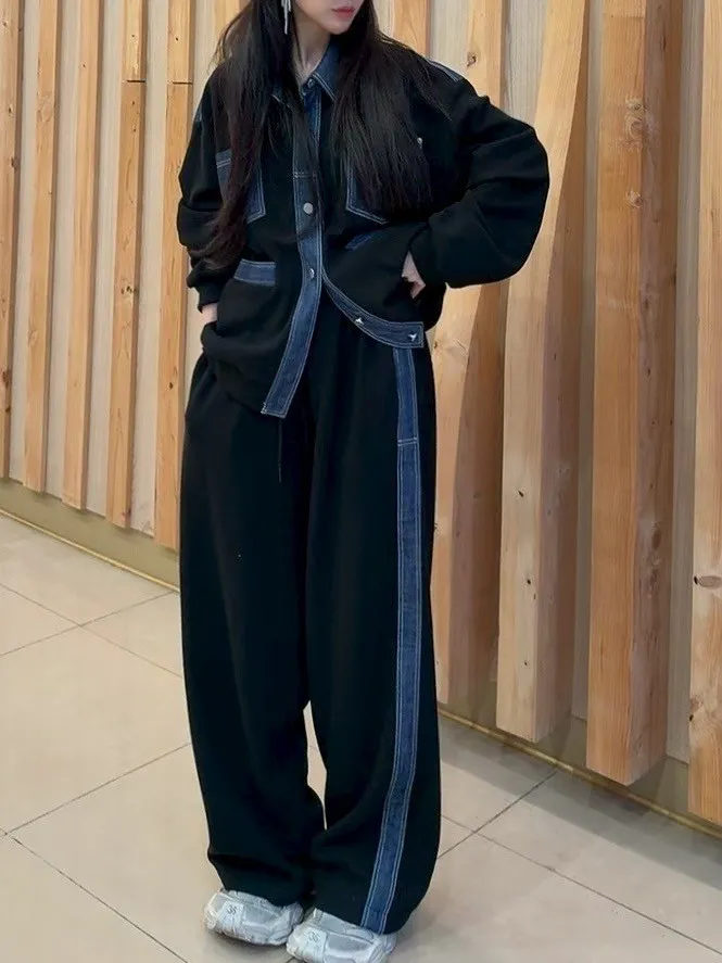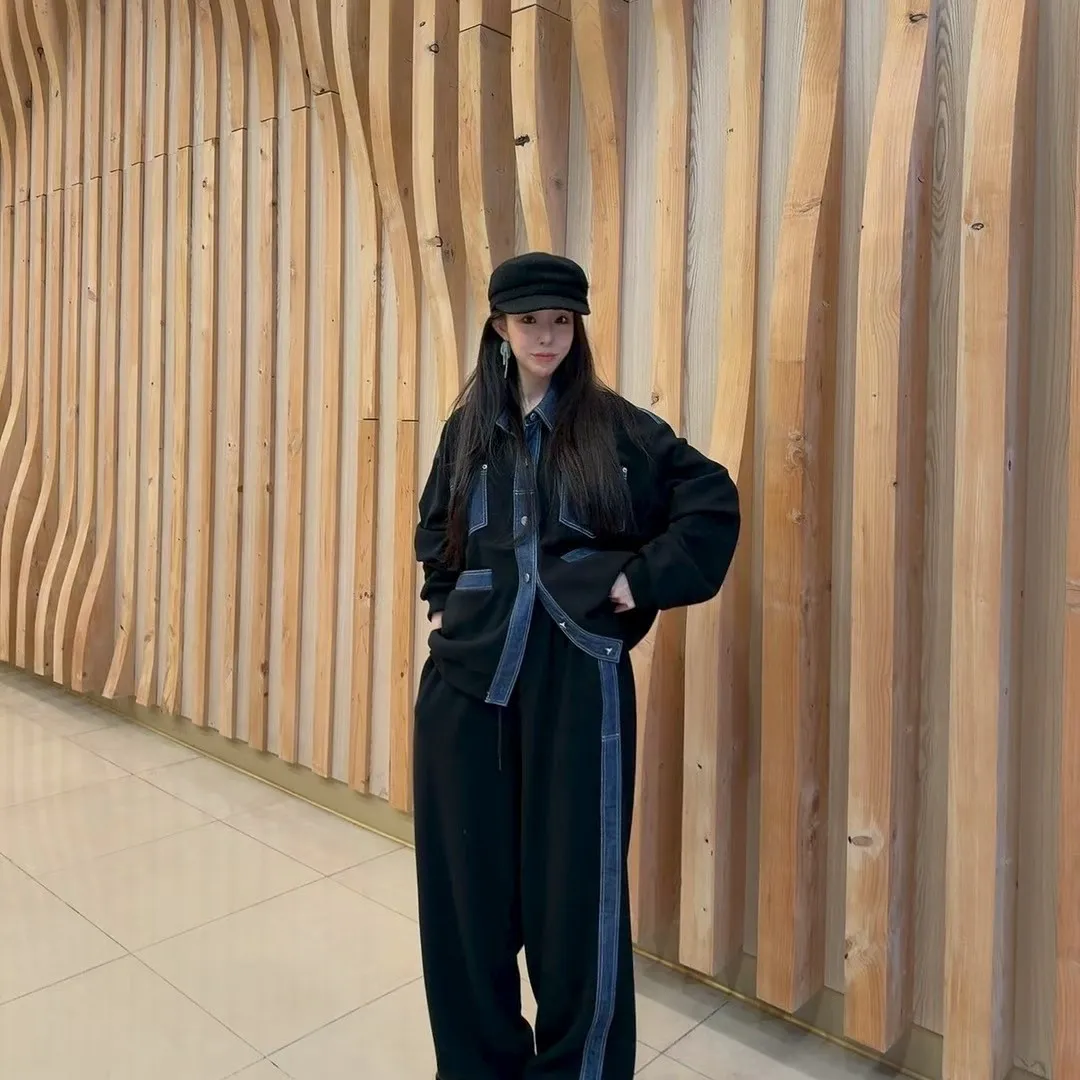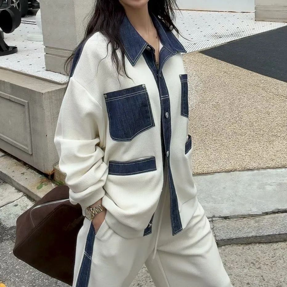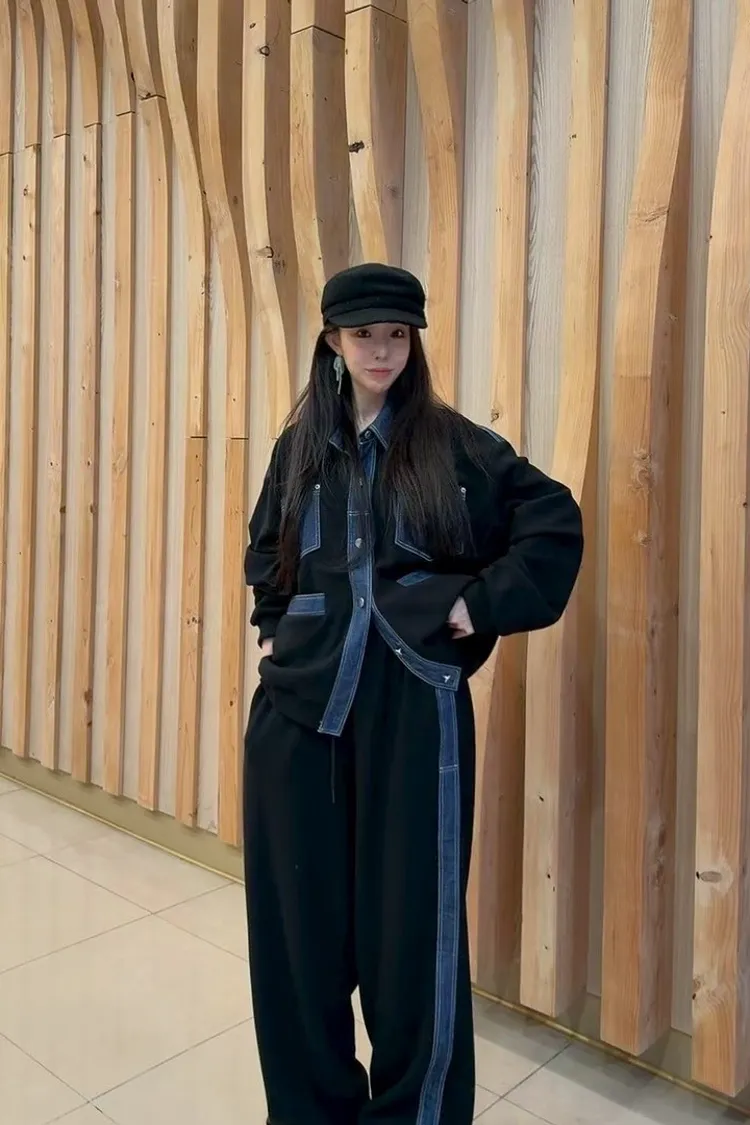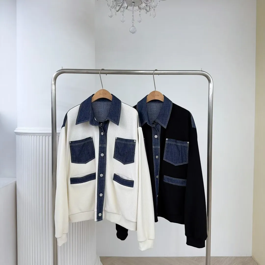 牛仔配色夾克套裝
