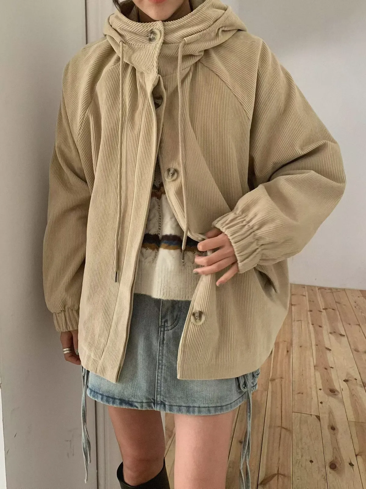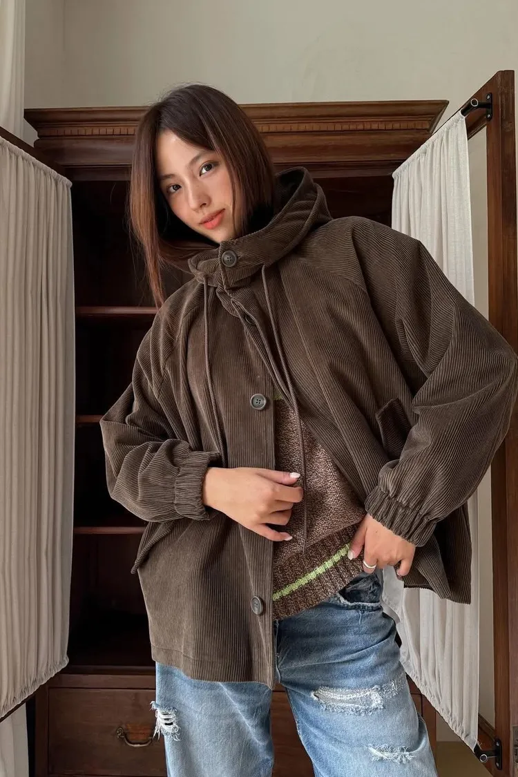 燈芯絨連帽外套