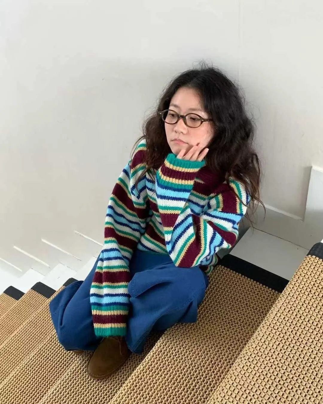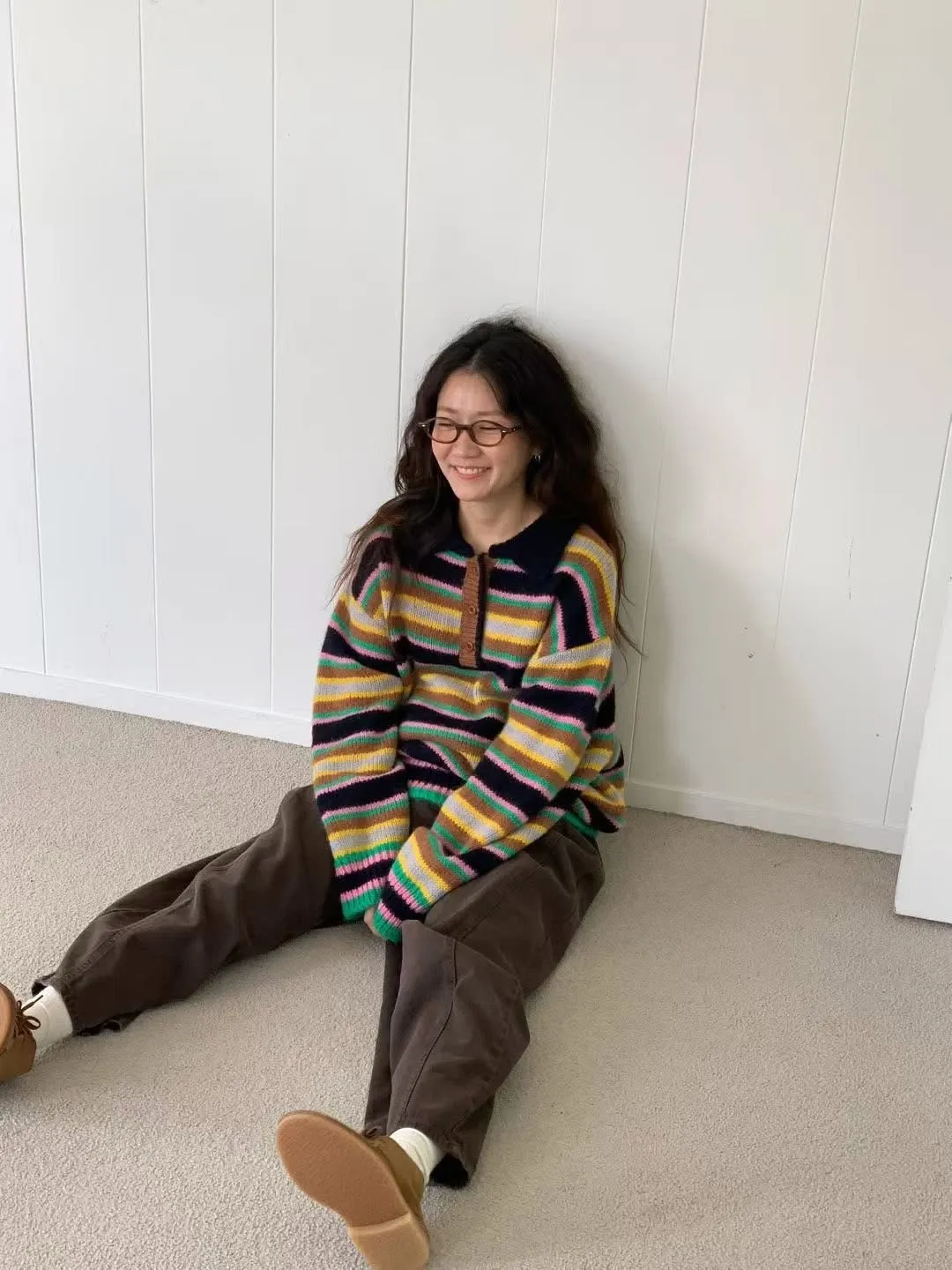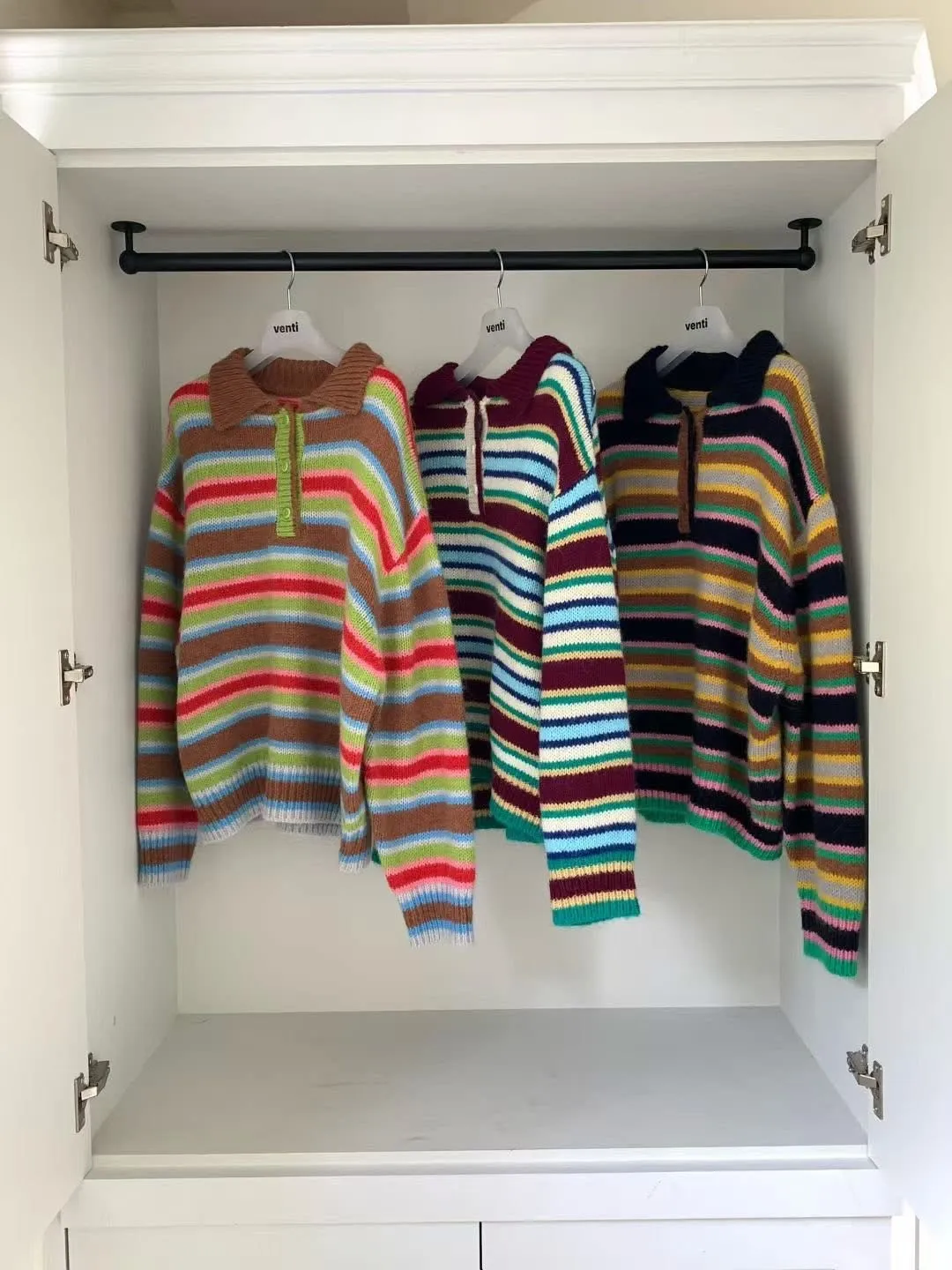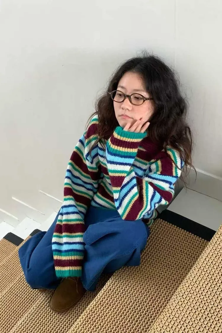 翻領彩色條紋毛衣
