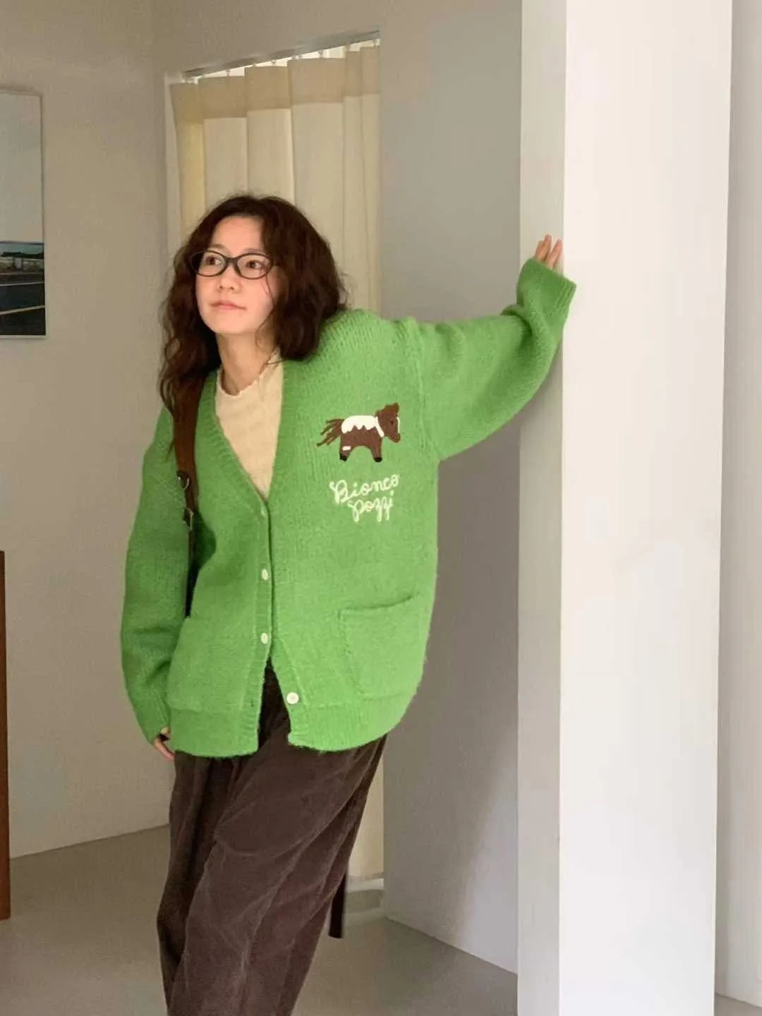 英字小馬羊毛外套