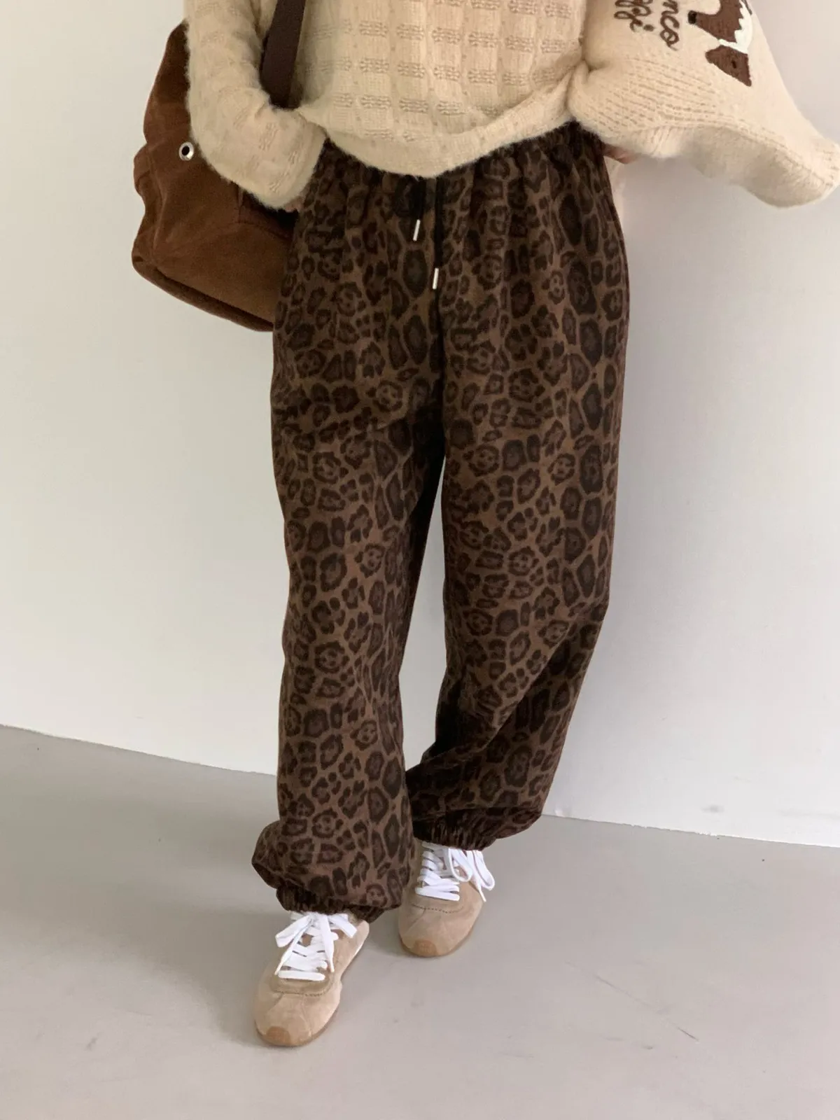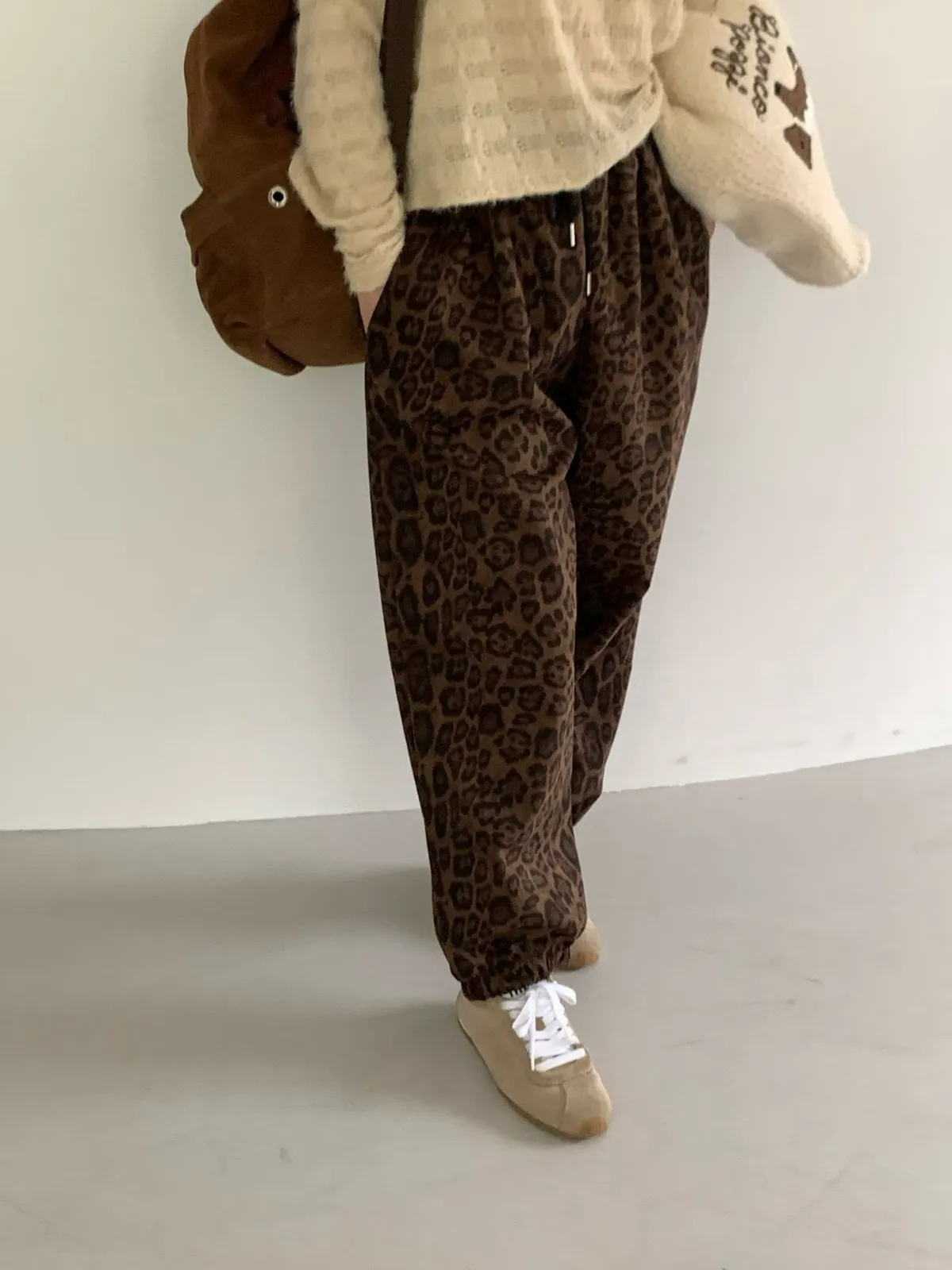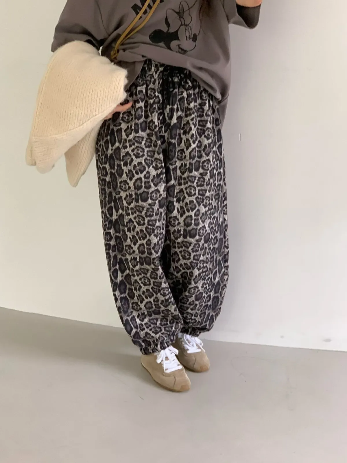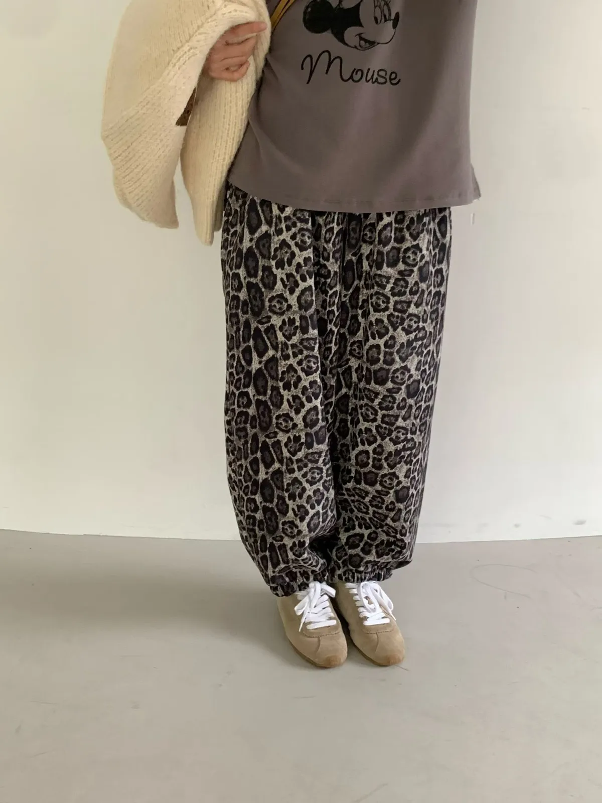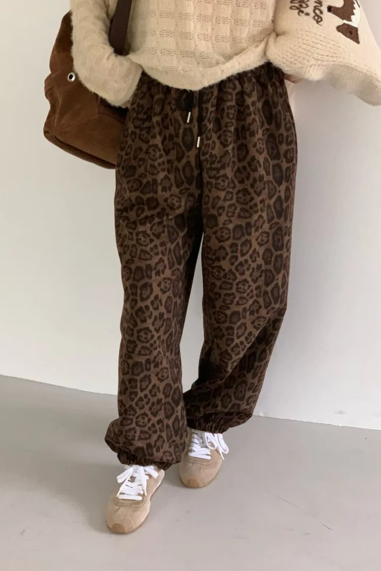 鬆緊豹紋長褲