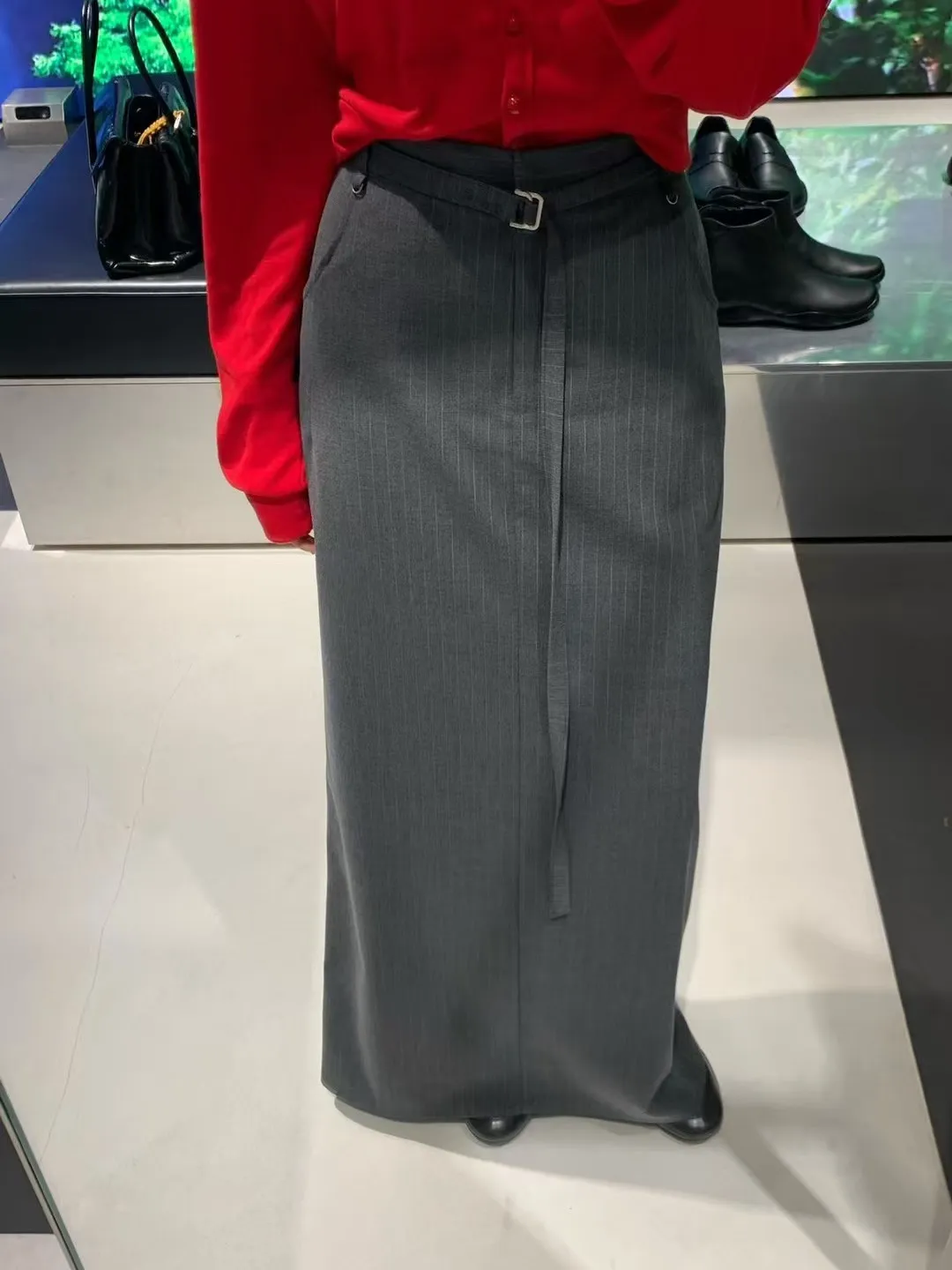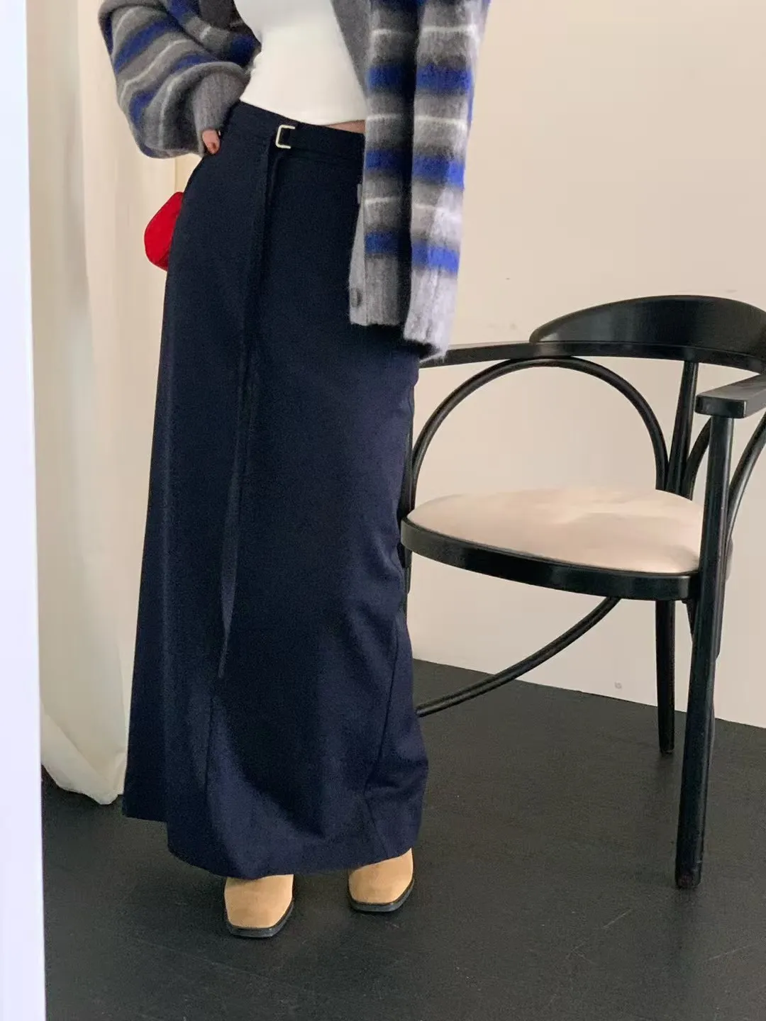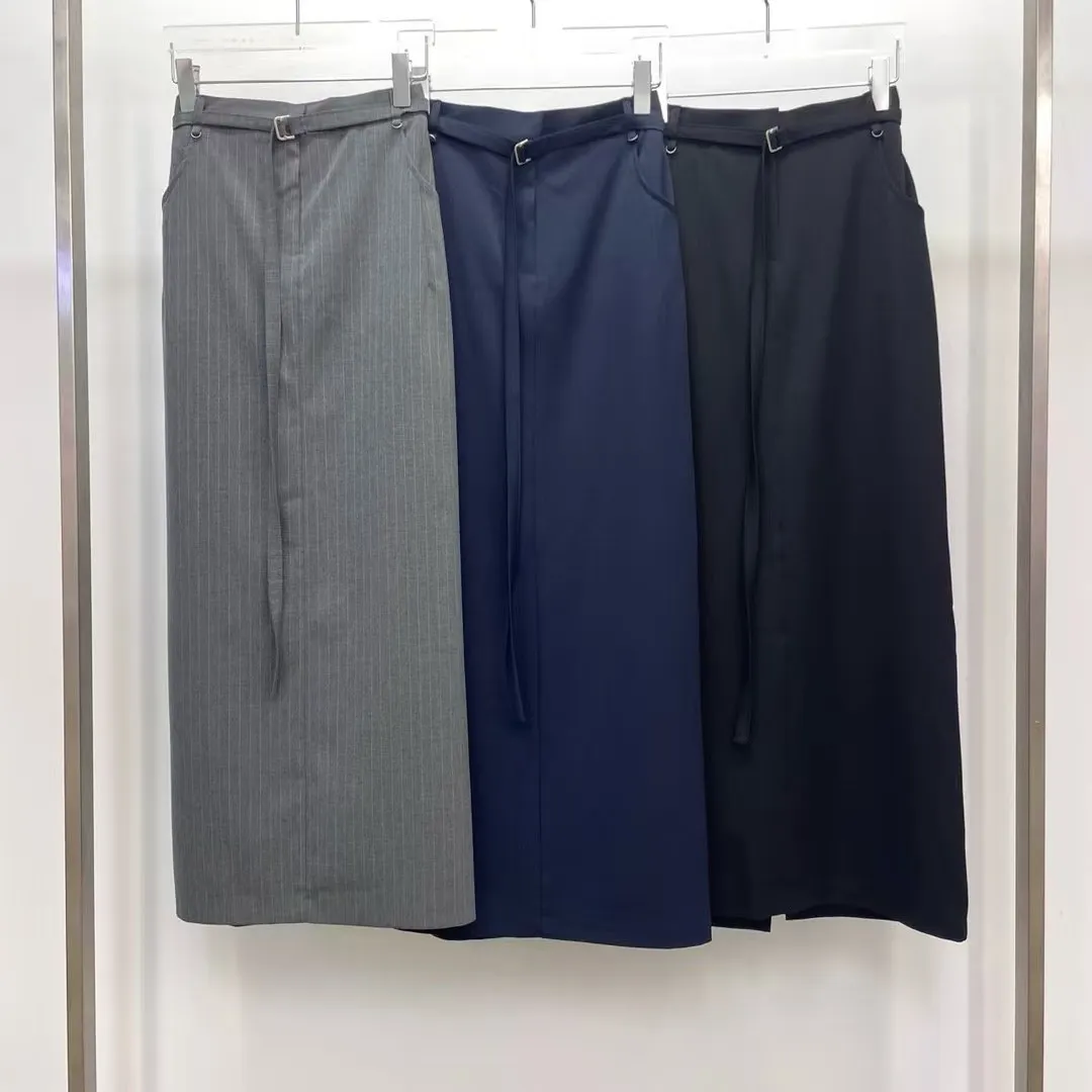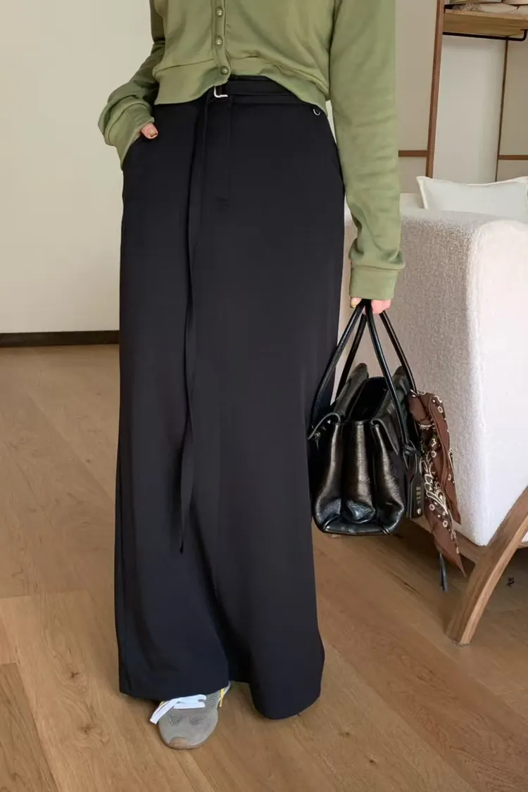 後鬆緊附腰帶長裙