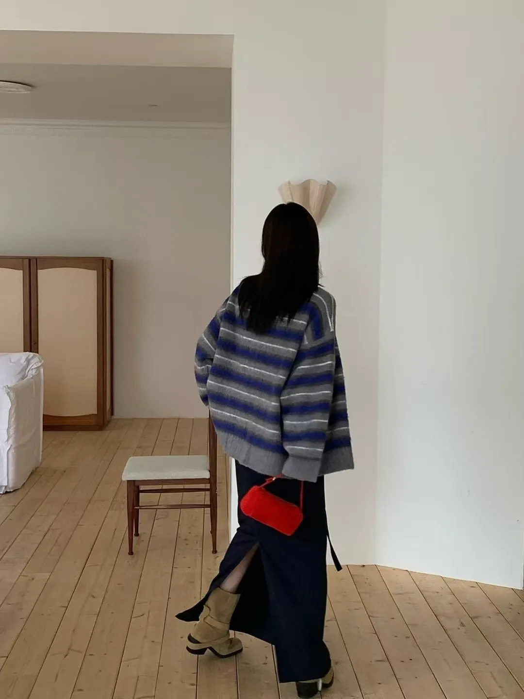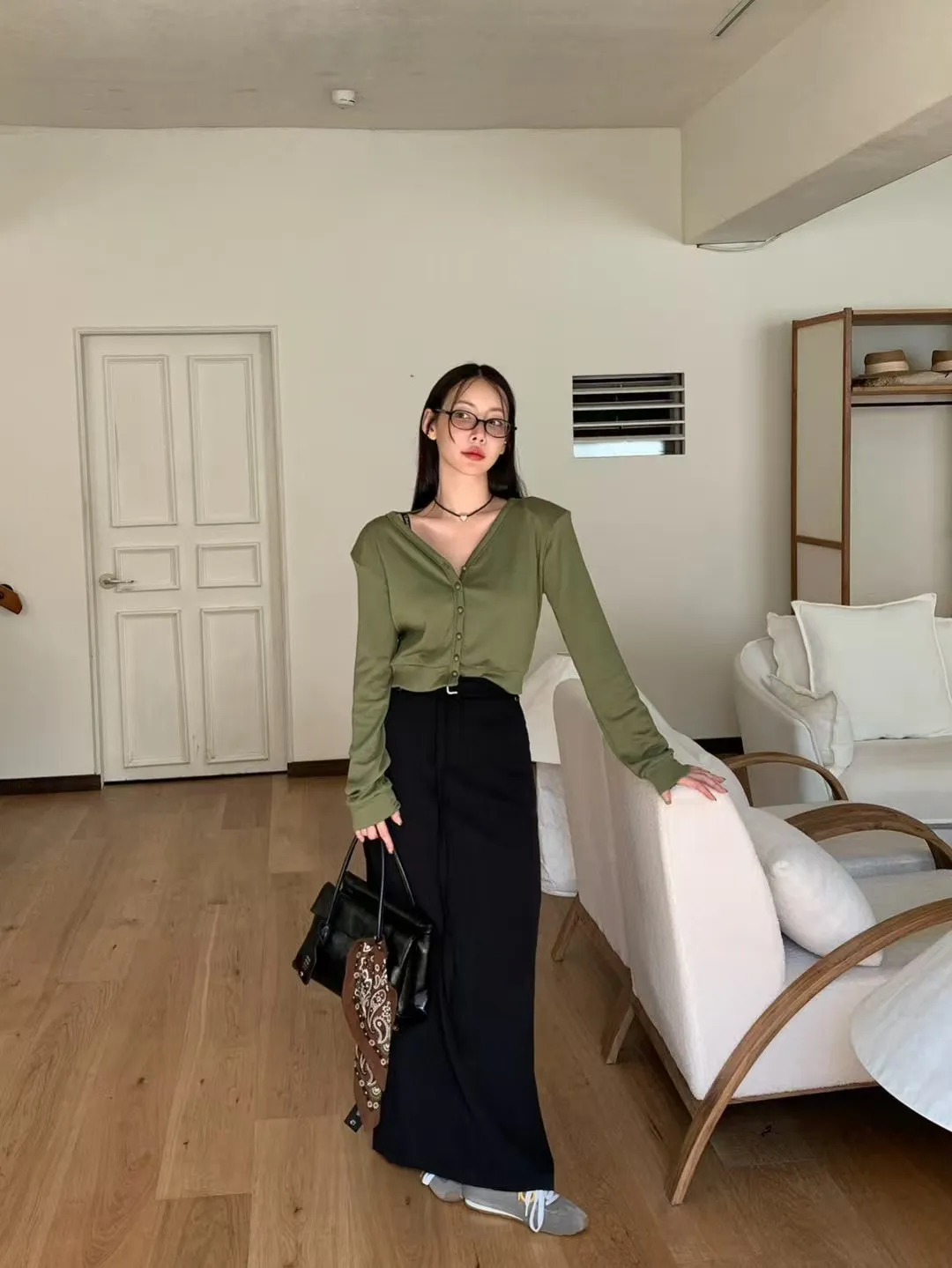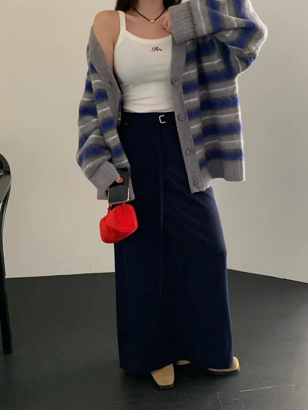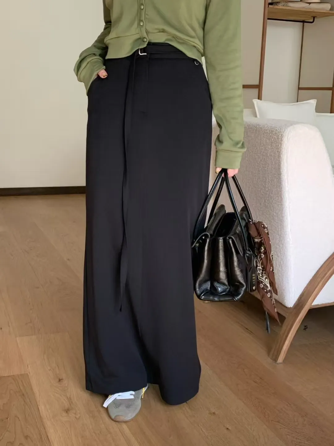 後鬆緊附腰帶長裙