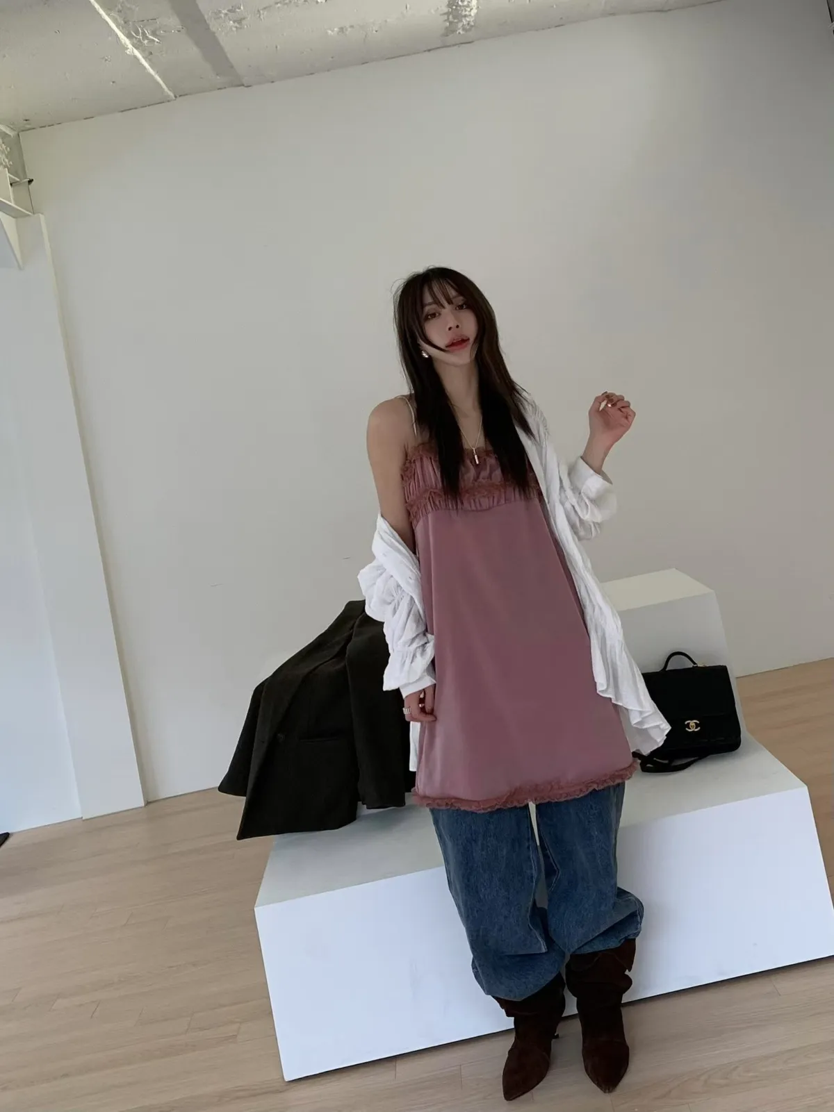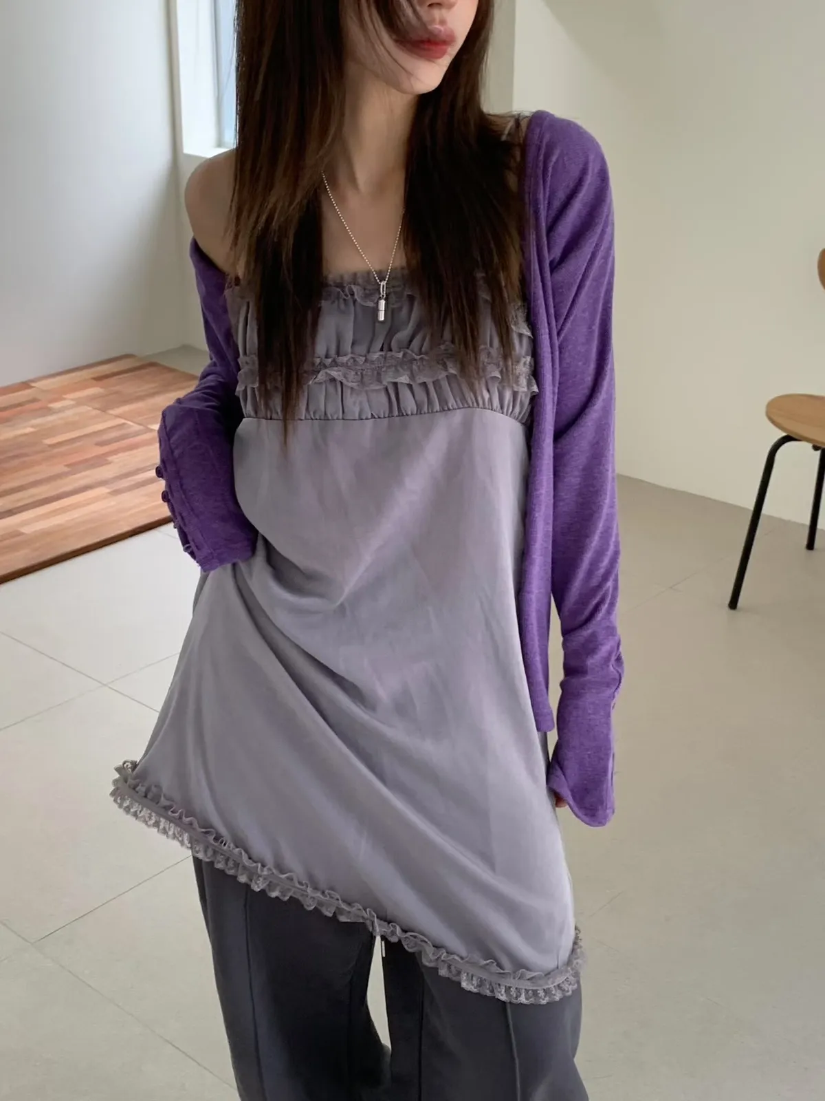 細肩拼接蕾絲洋裝