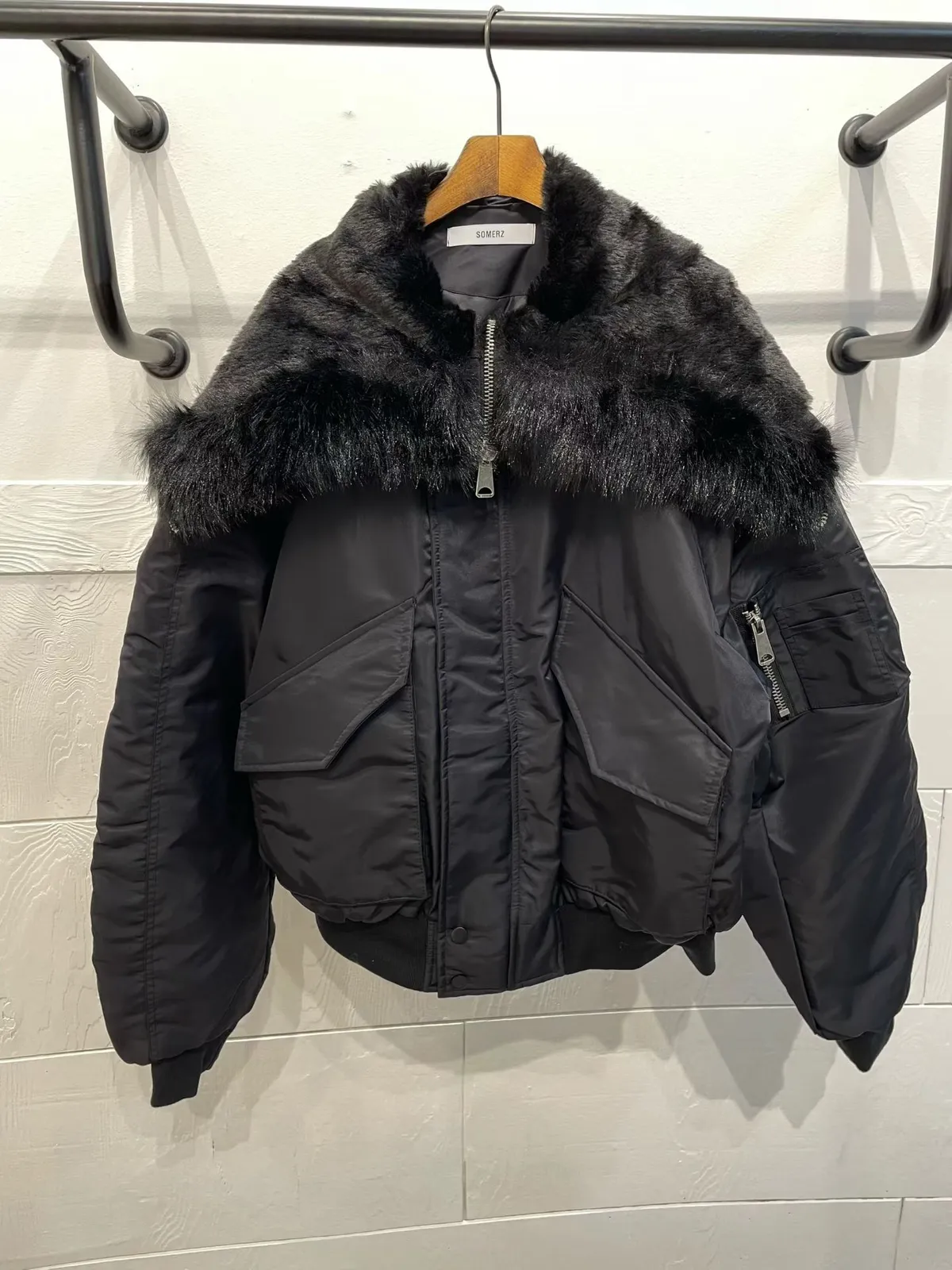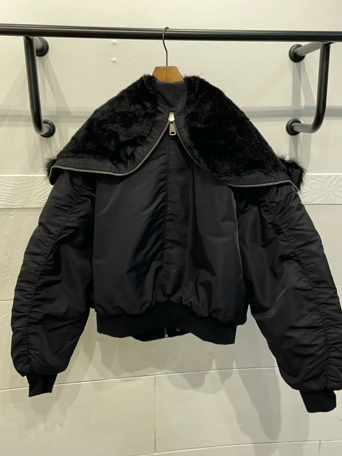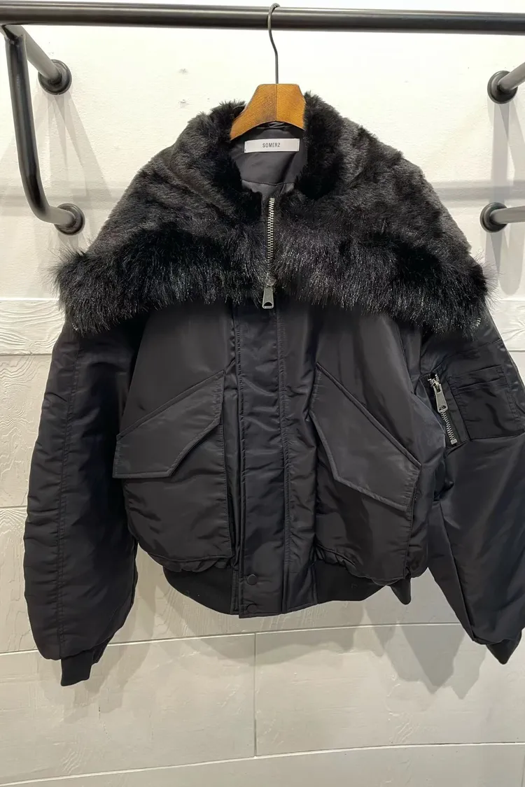 毛毛領連帽皮革外套