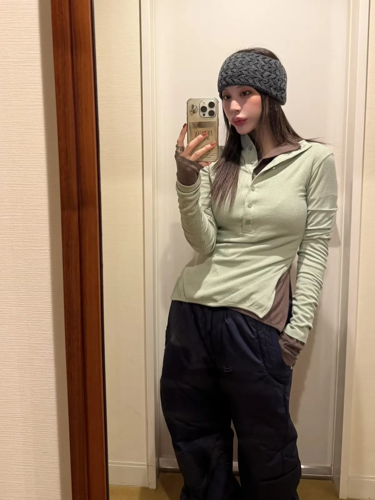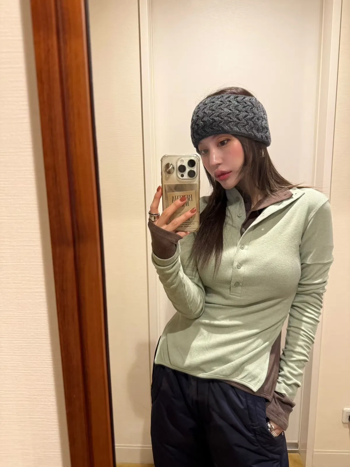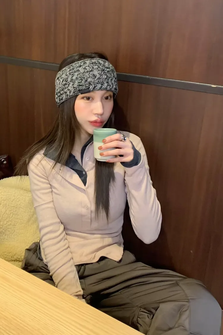 高領排扣側開叉上衣