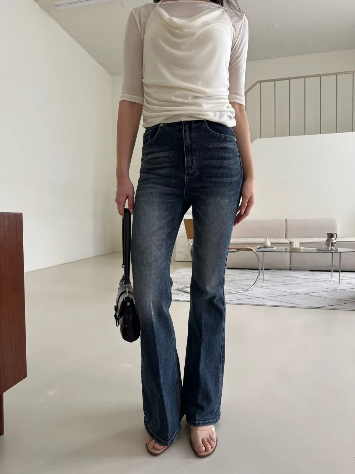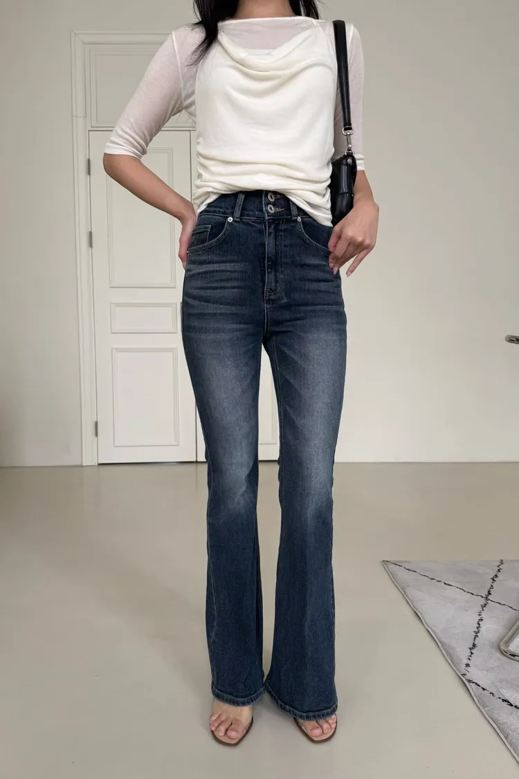 刷色牛仔喇叭褲