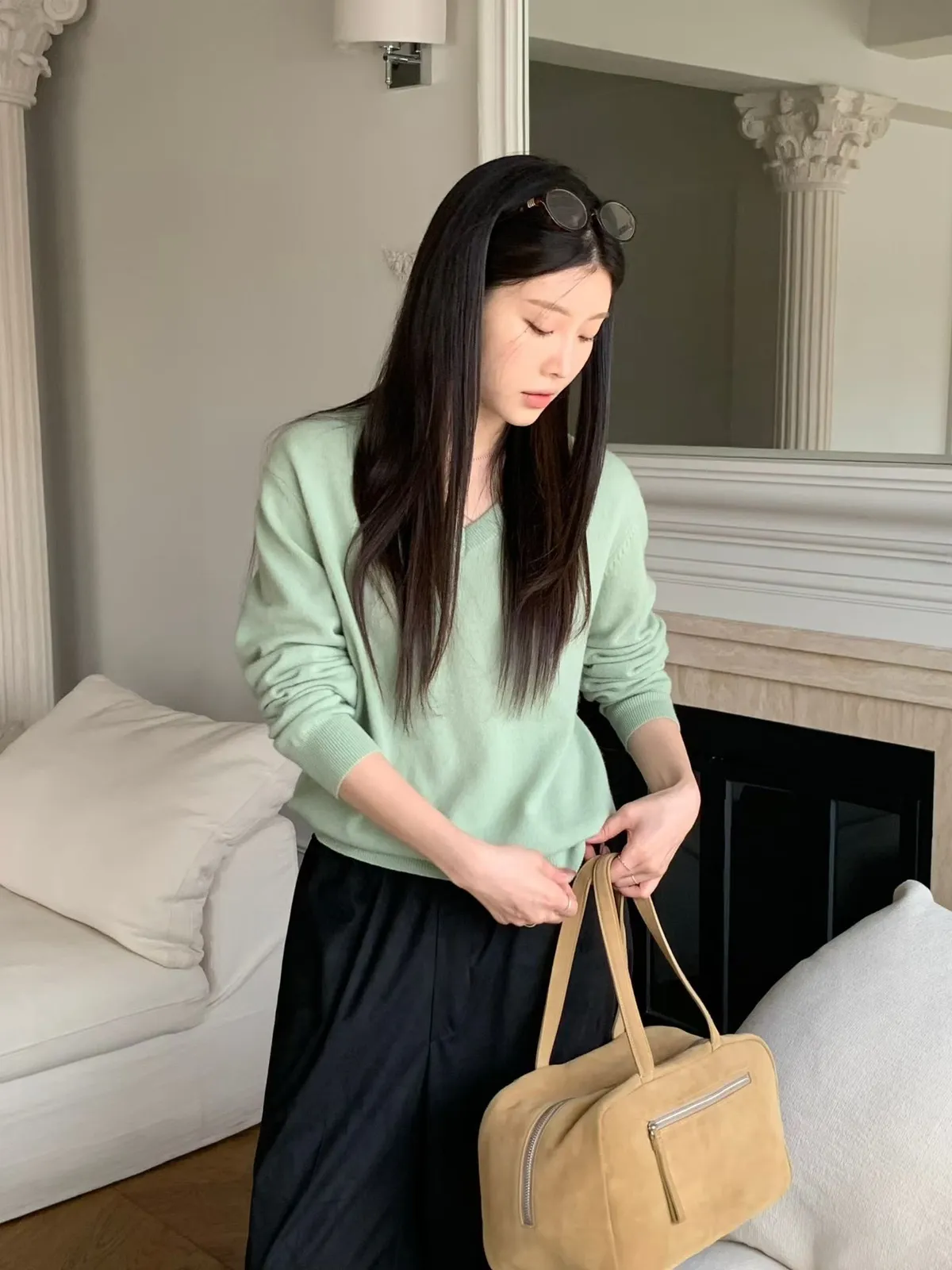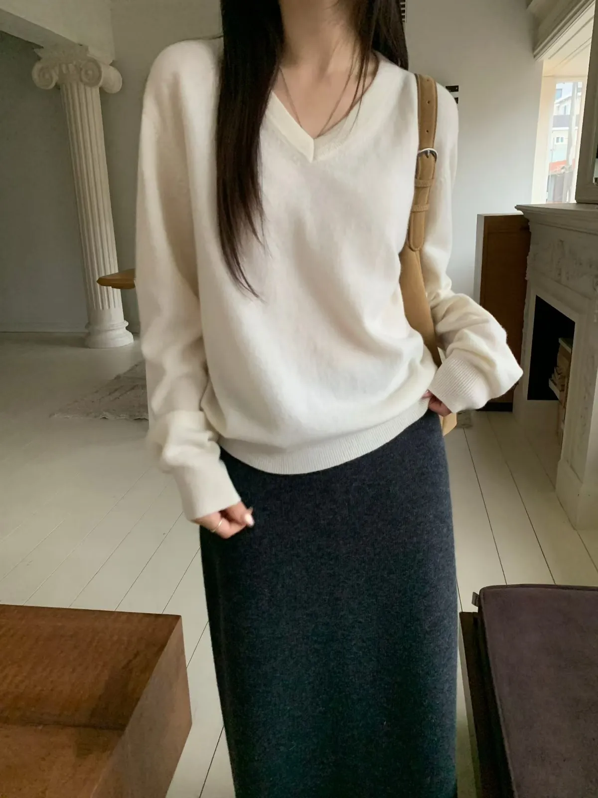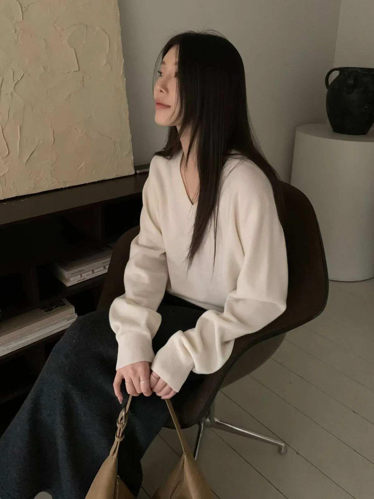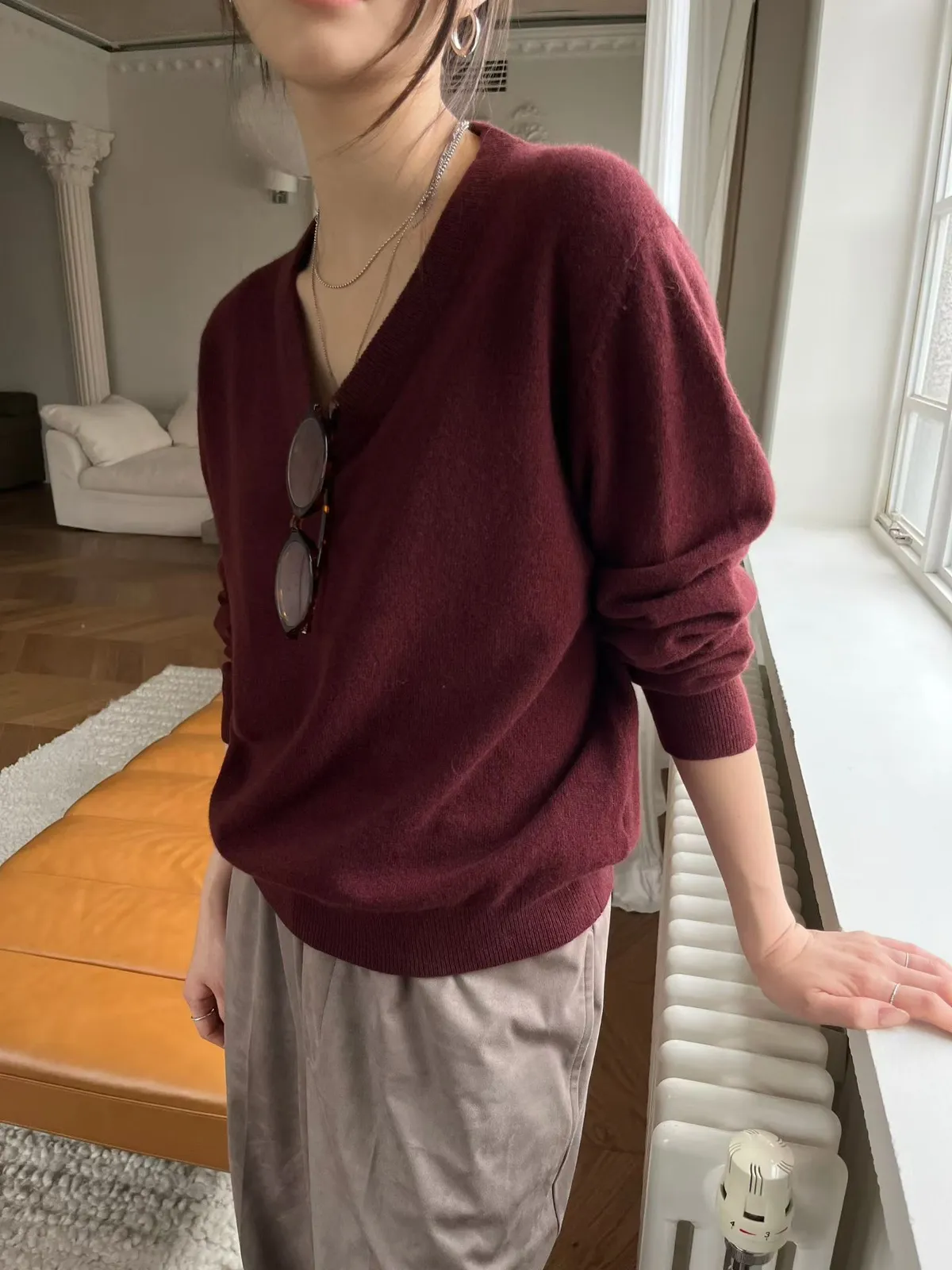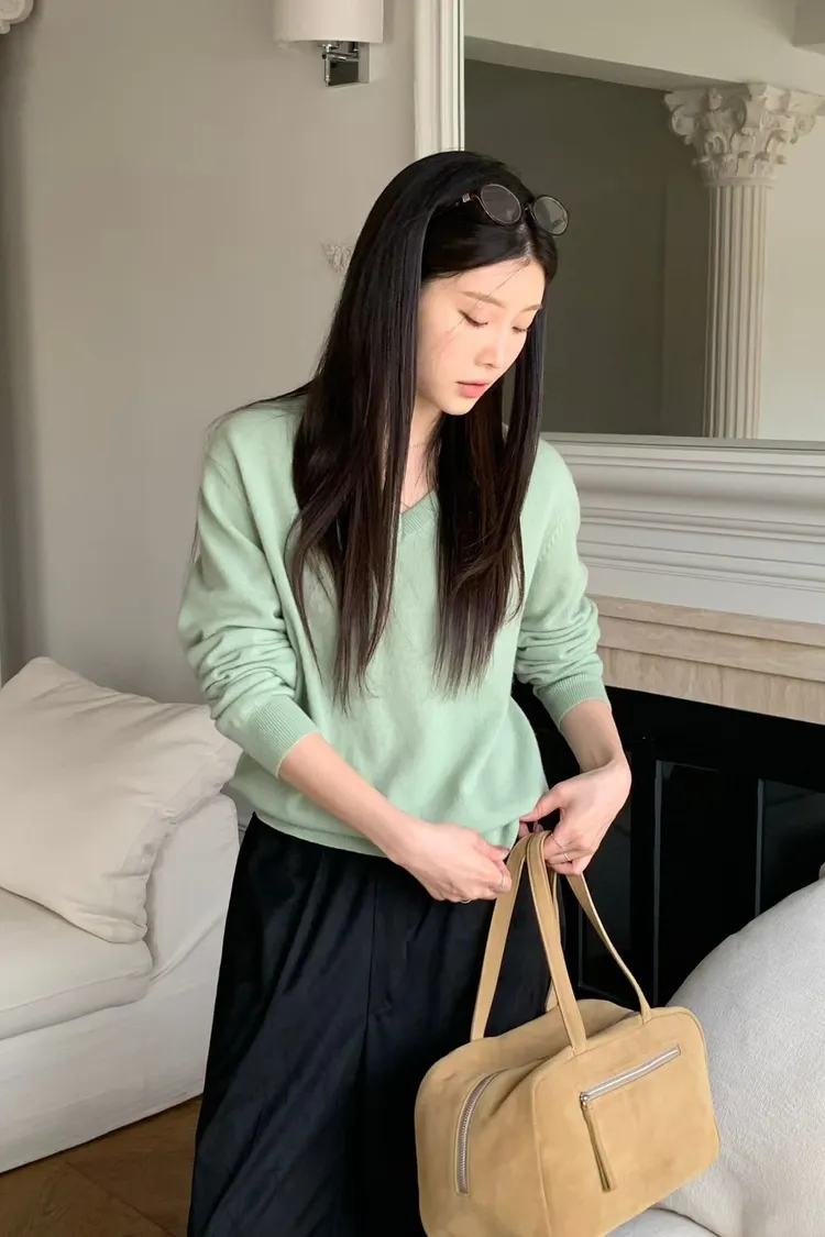V領羊毛針織上衣