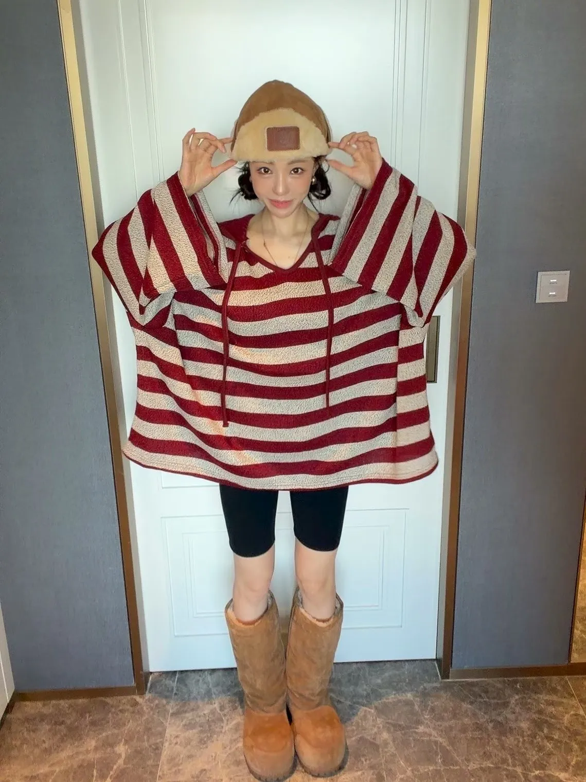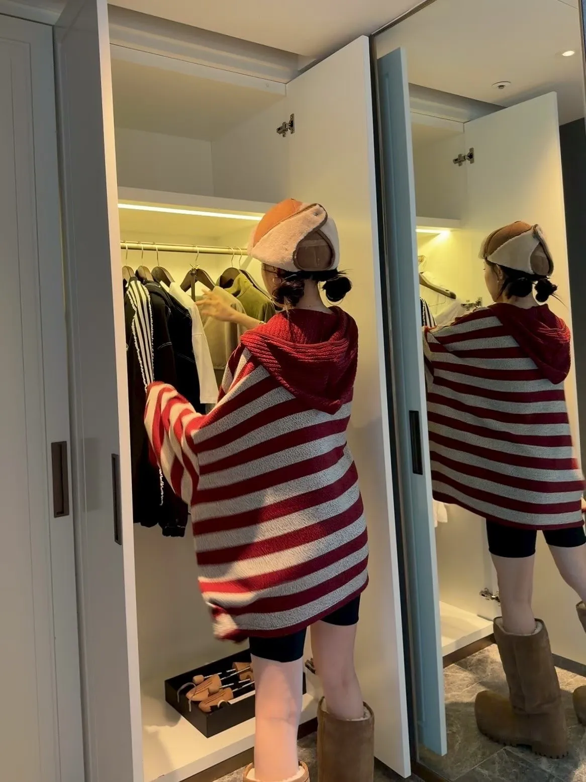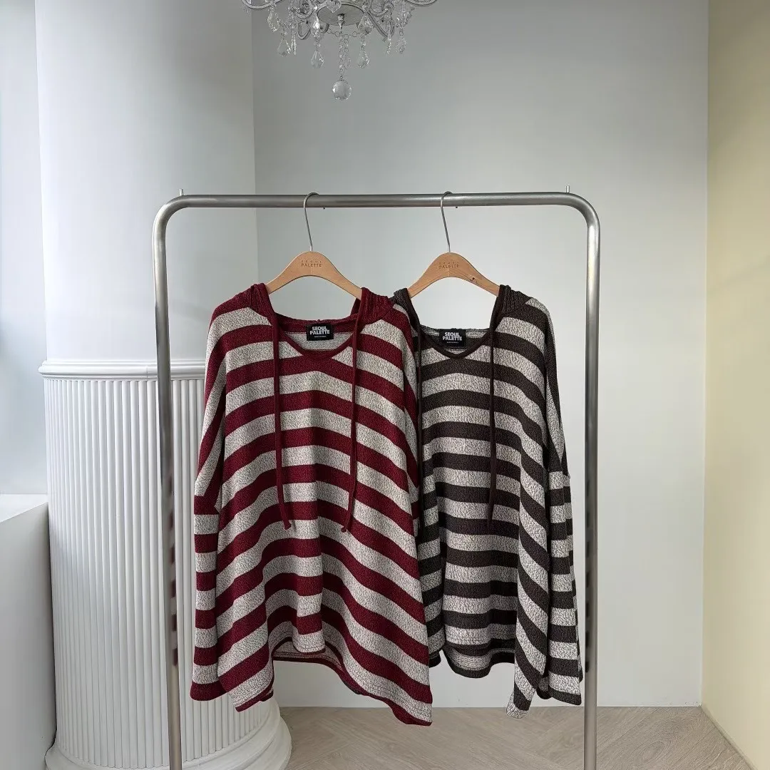 條紋連帽針織上衣