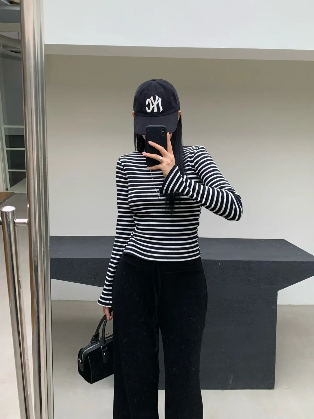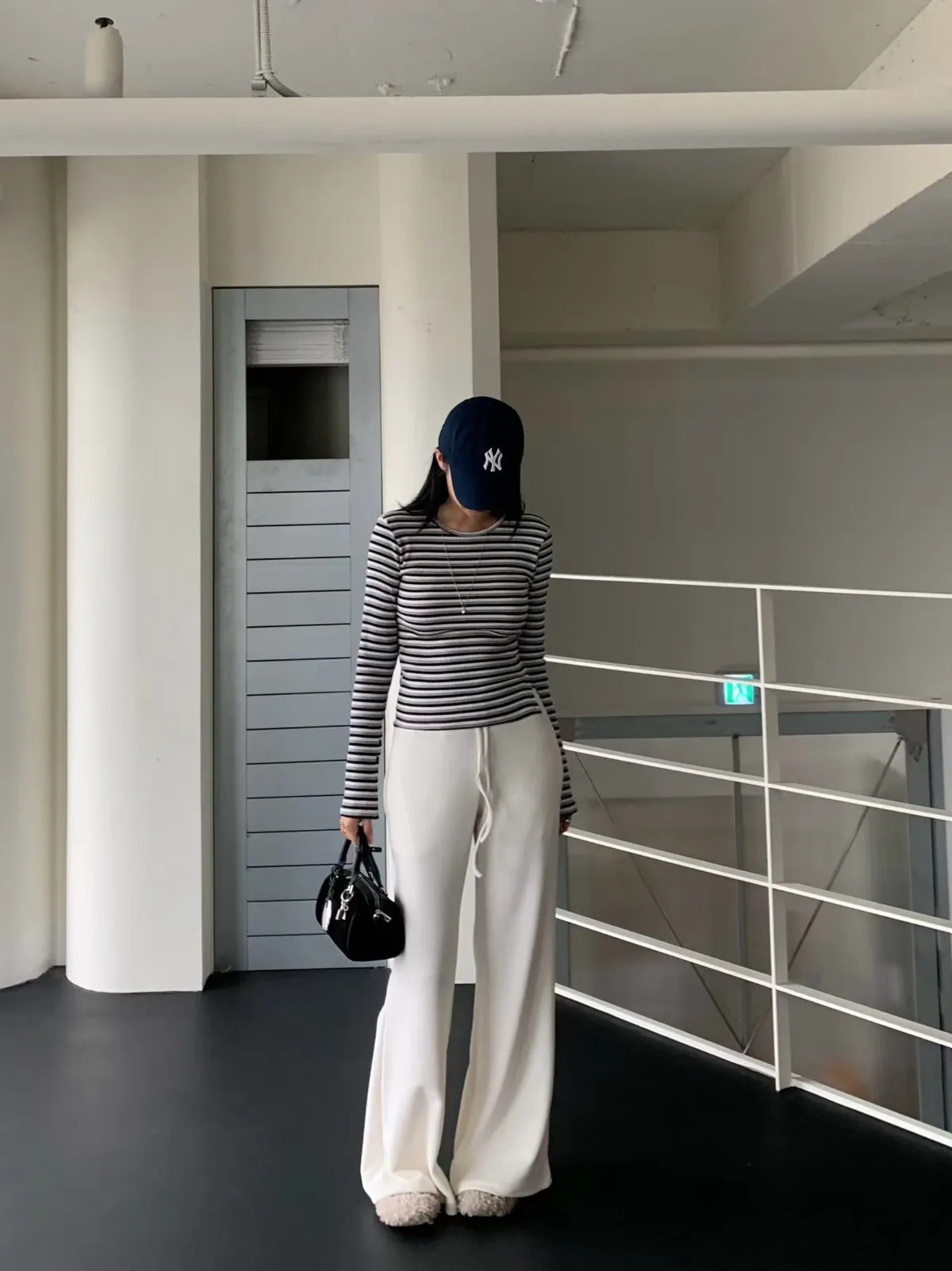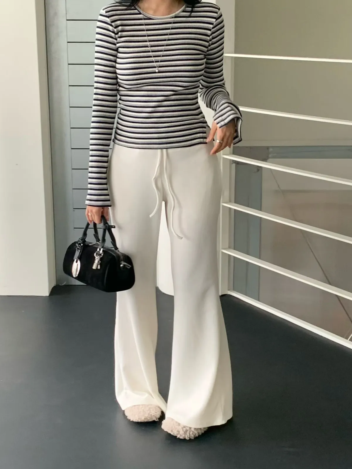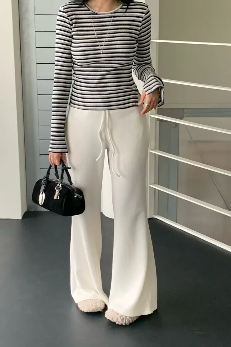 鬆緊坑條針織長褲