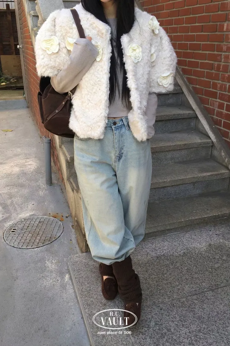 花朵羊羔毛夾克