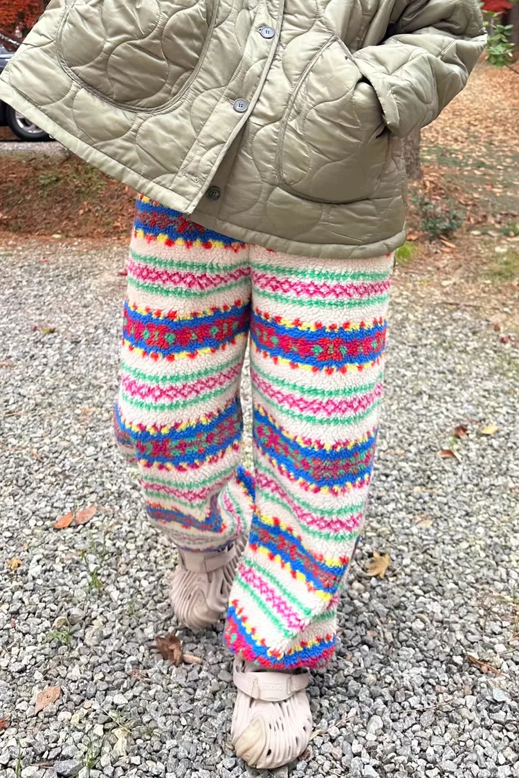 鬆緊羊羔毛長褲