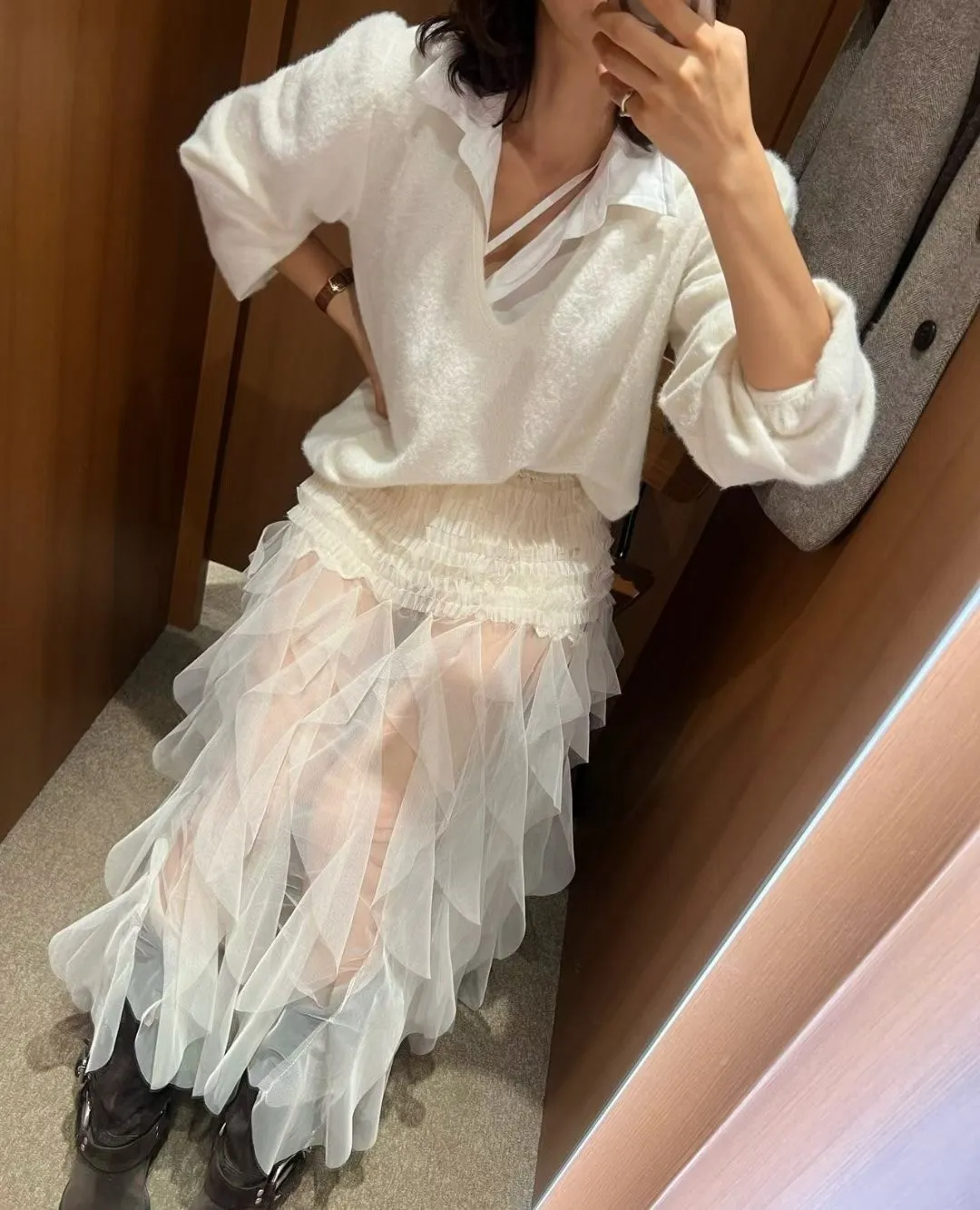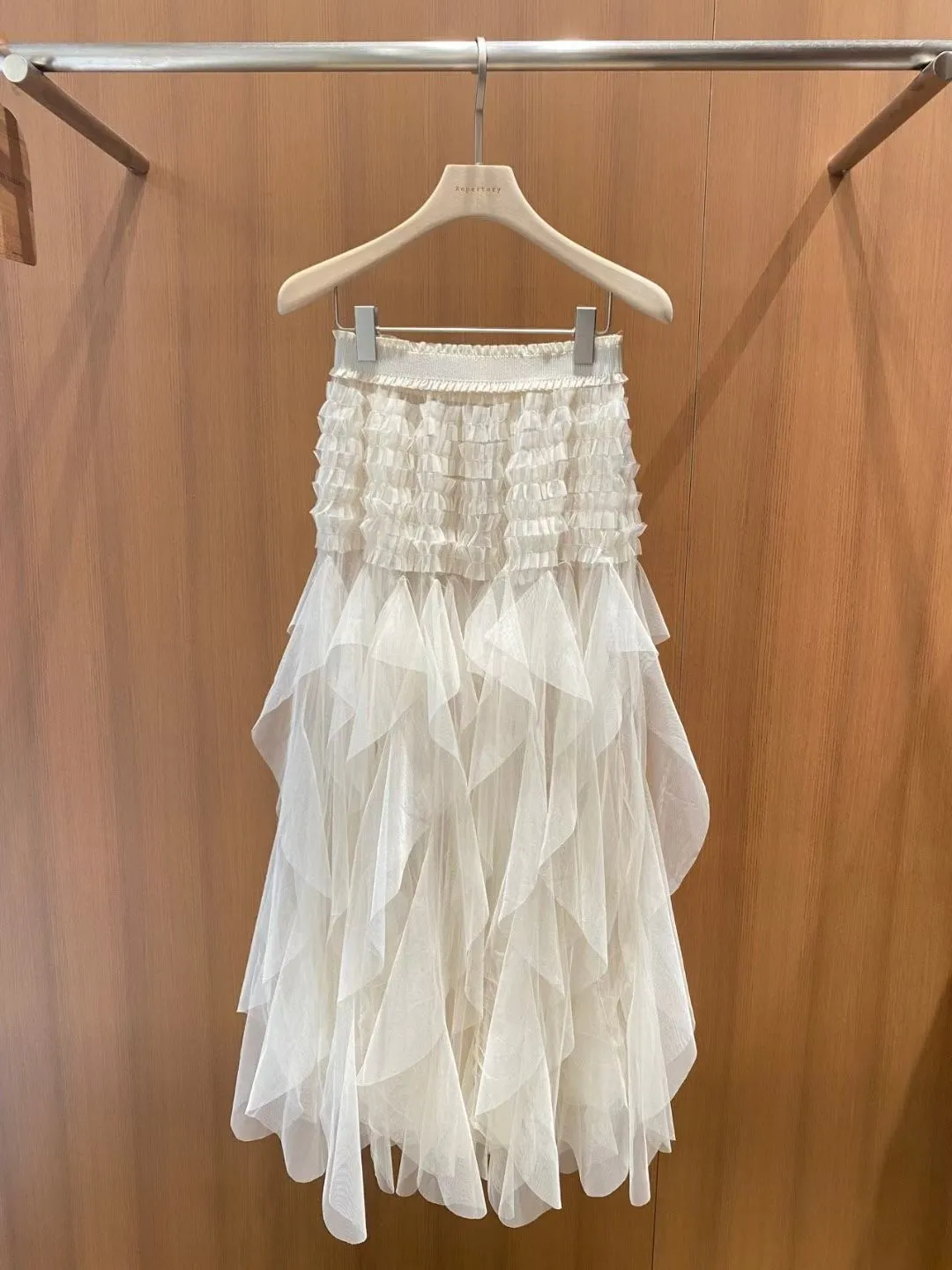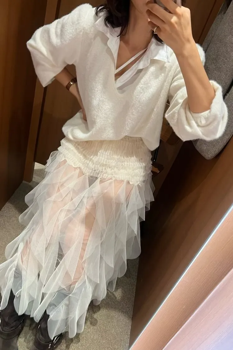 鬆緊不規則無內裡透視紗長裙