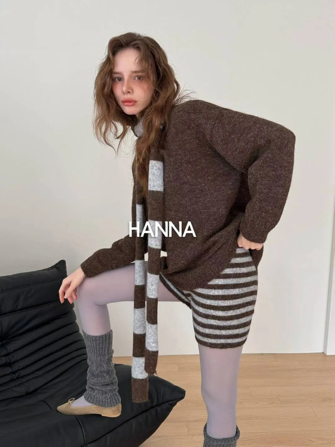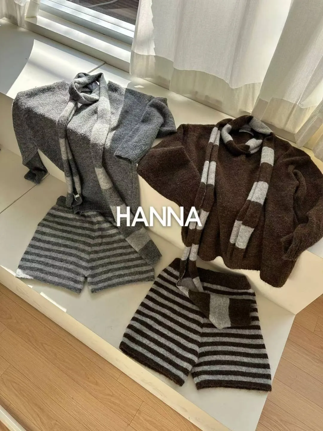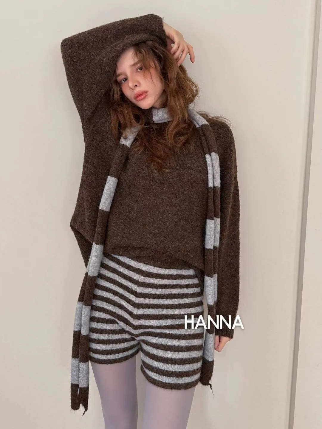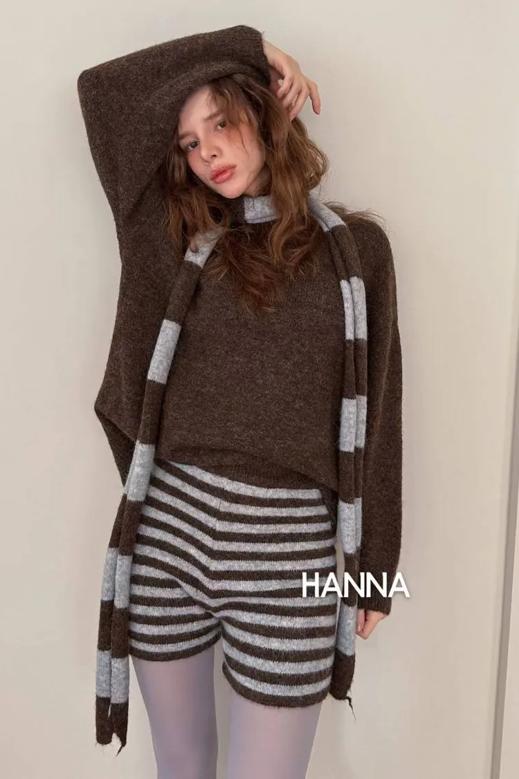 附圍巾羊毛衣短褲套裝