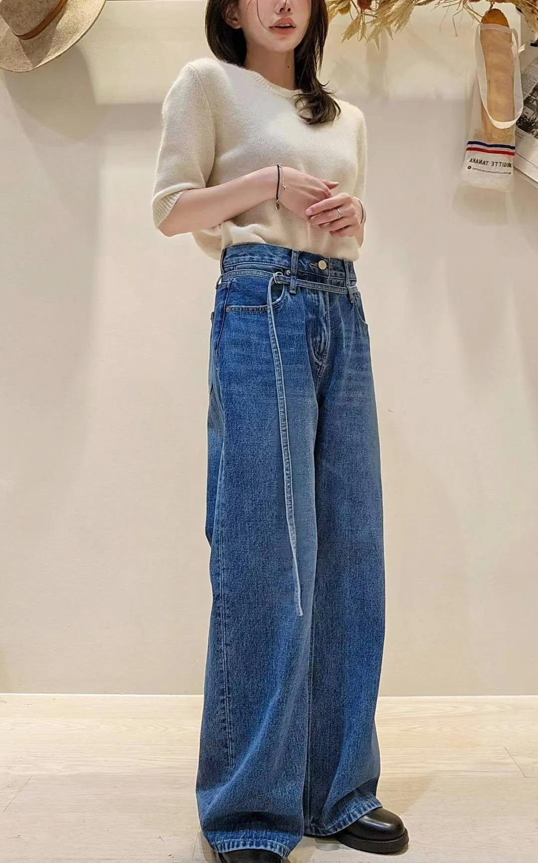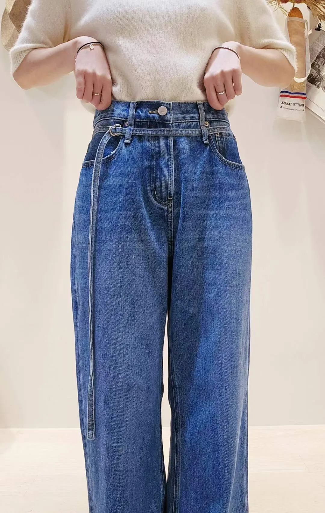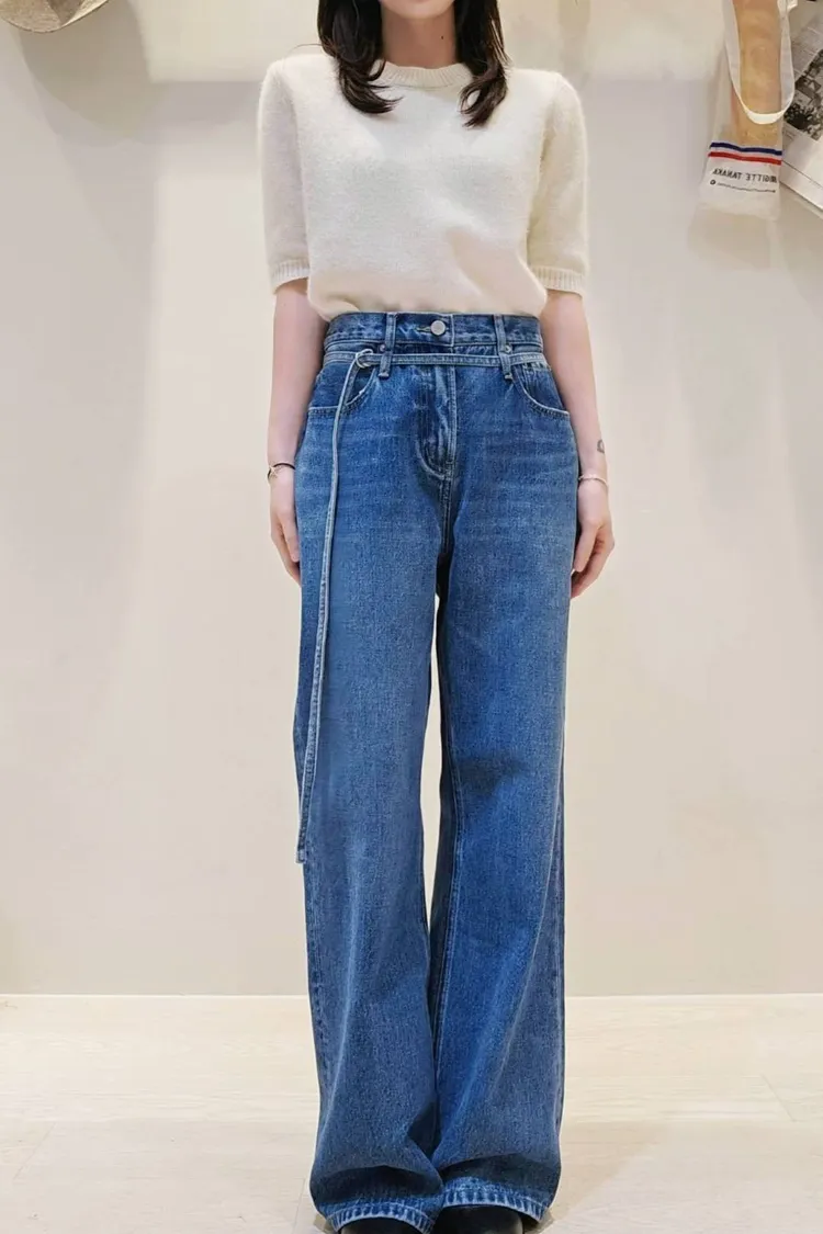 歐美時髦的腰帶微寬牛仔褲