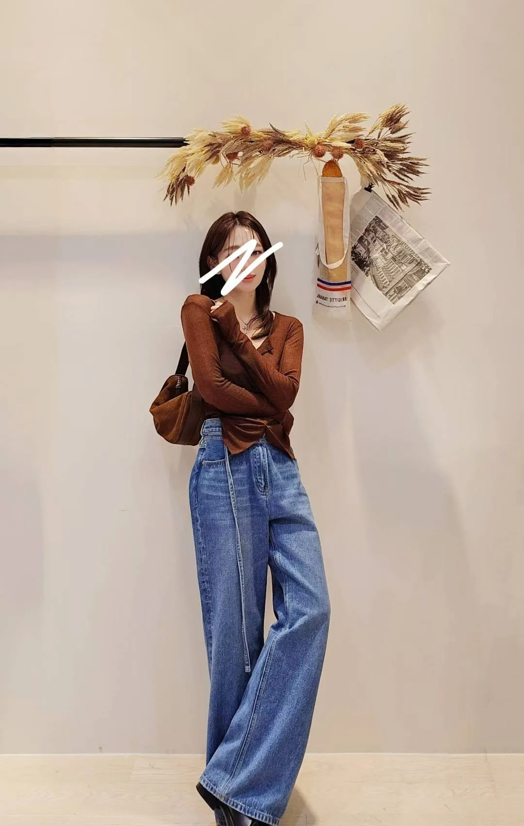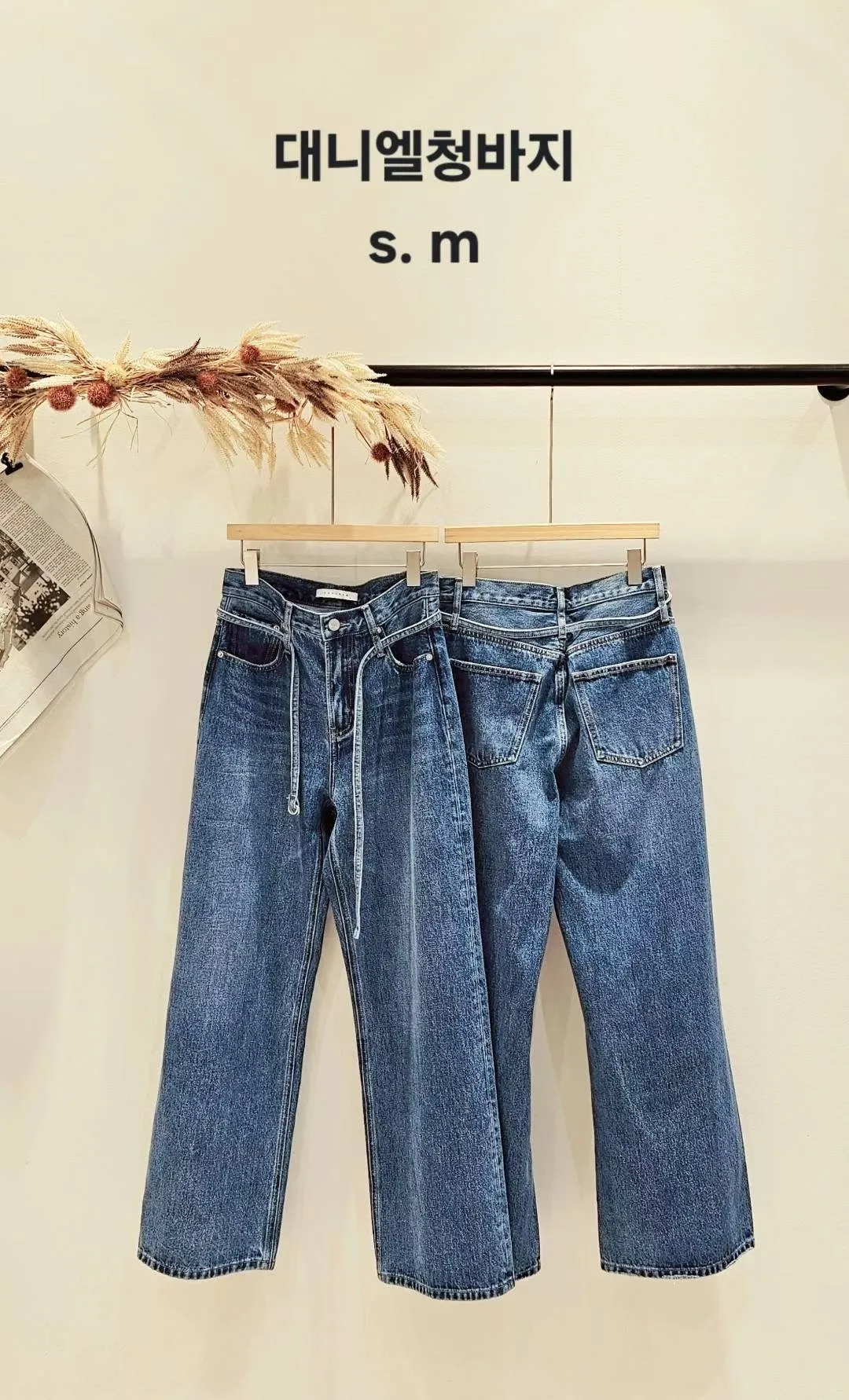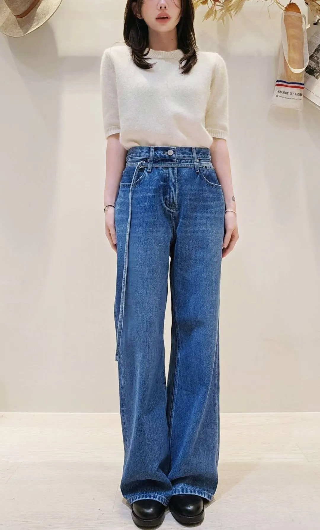 歐美時髦的腰帶微寬牛仔褲