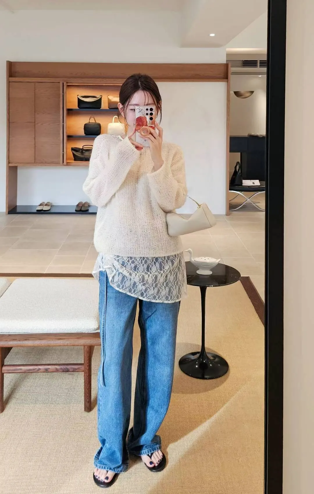 ★搭配:搭配好物V領蕾絲背心+歐美時髦的腰帶微寬牛仔褲