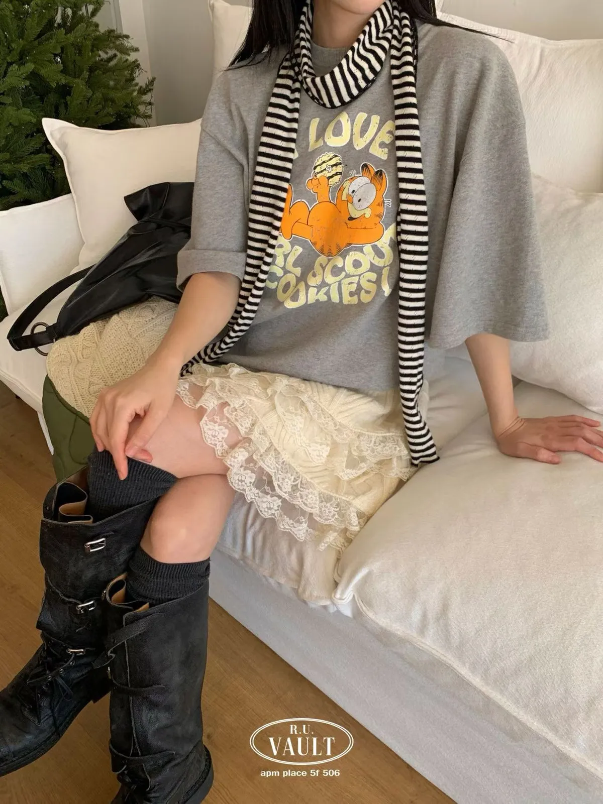 絨毛針織加菲貓上衣