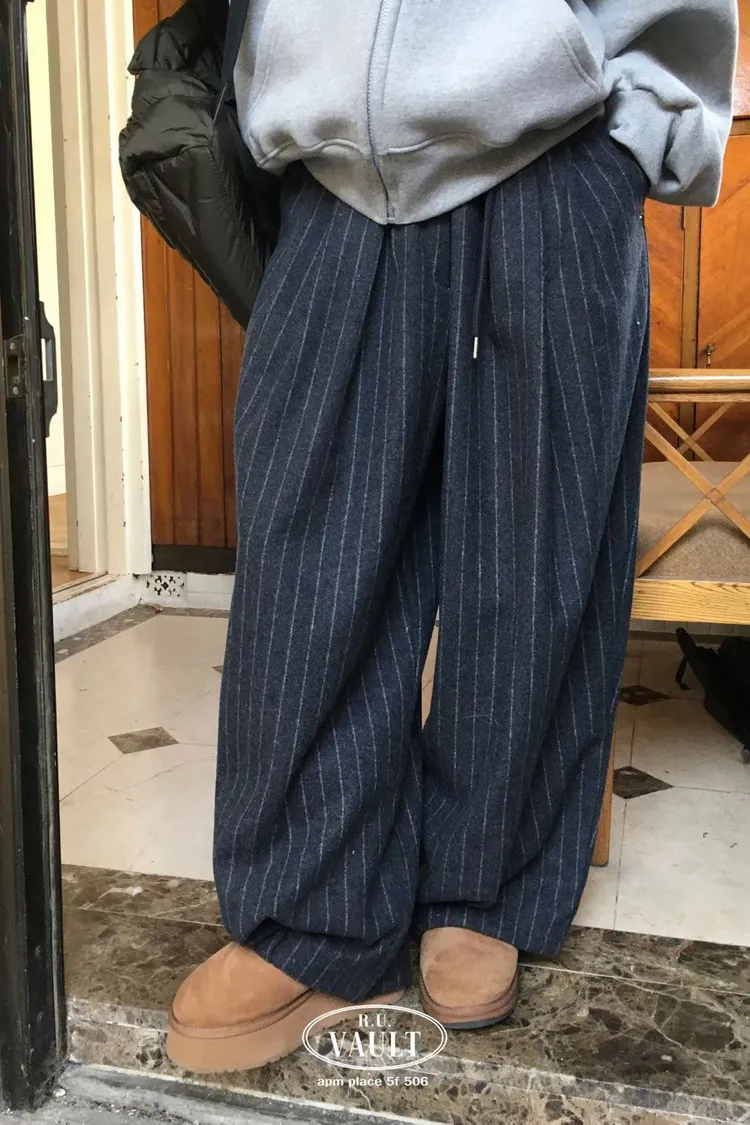 直條紋羊毛褲