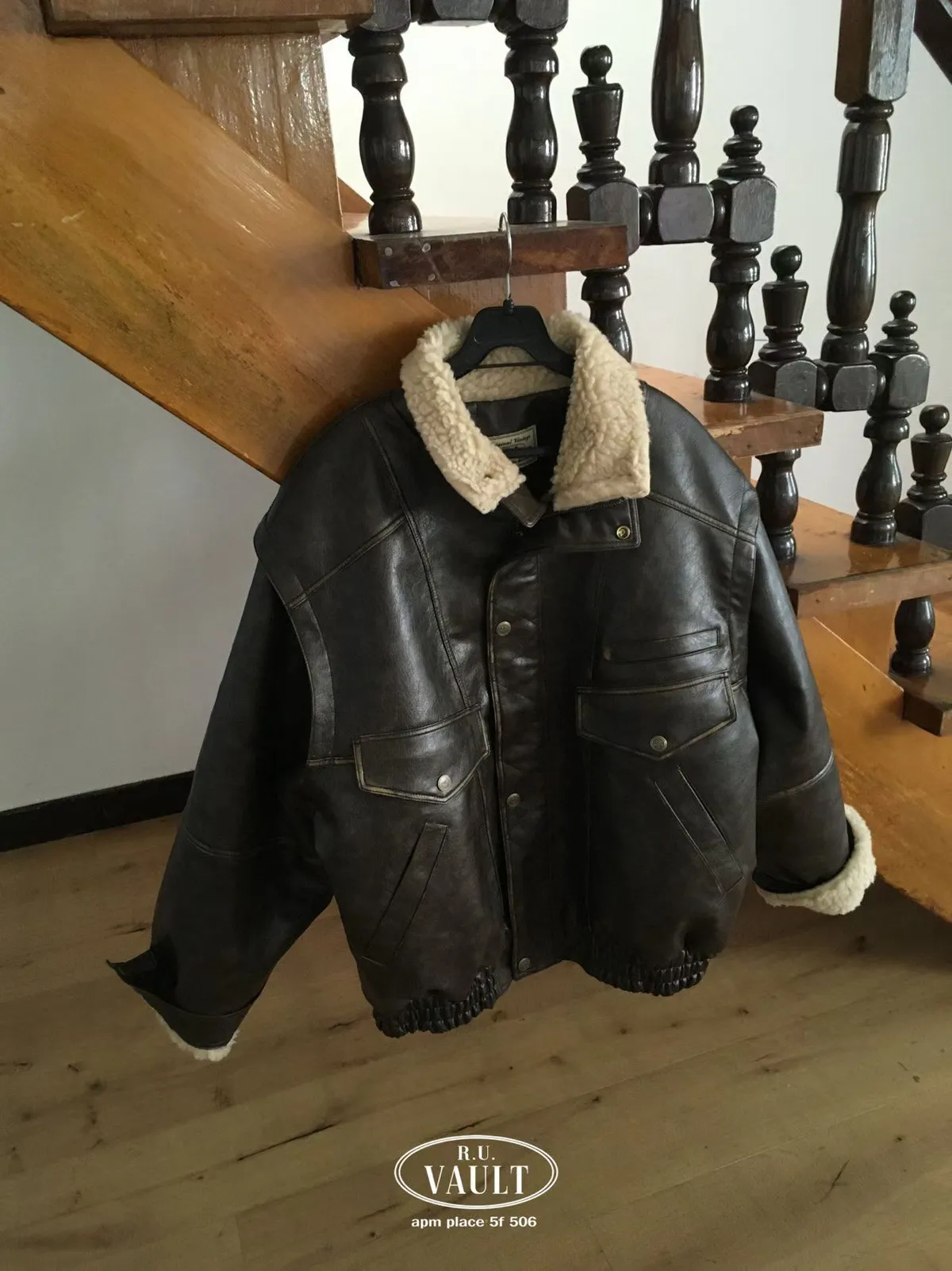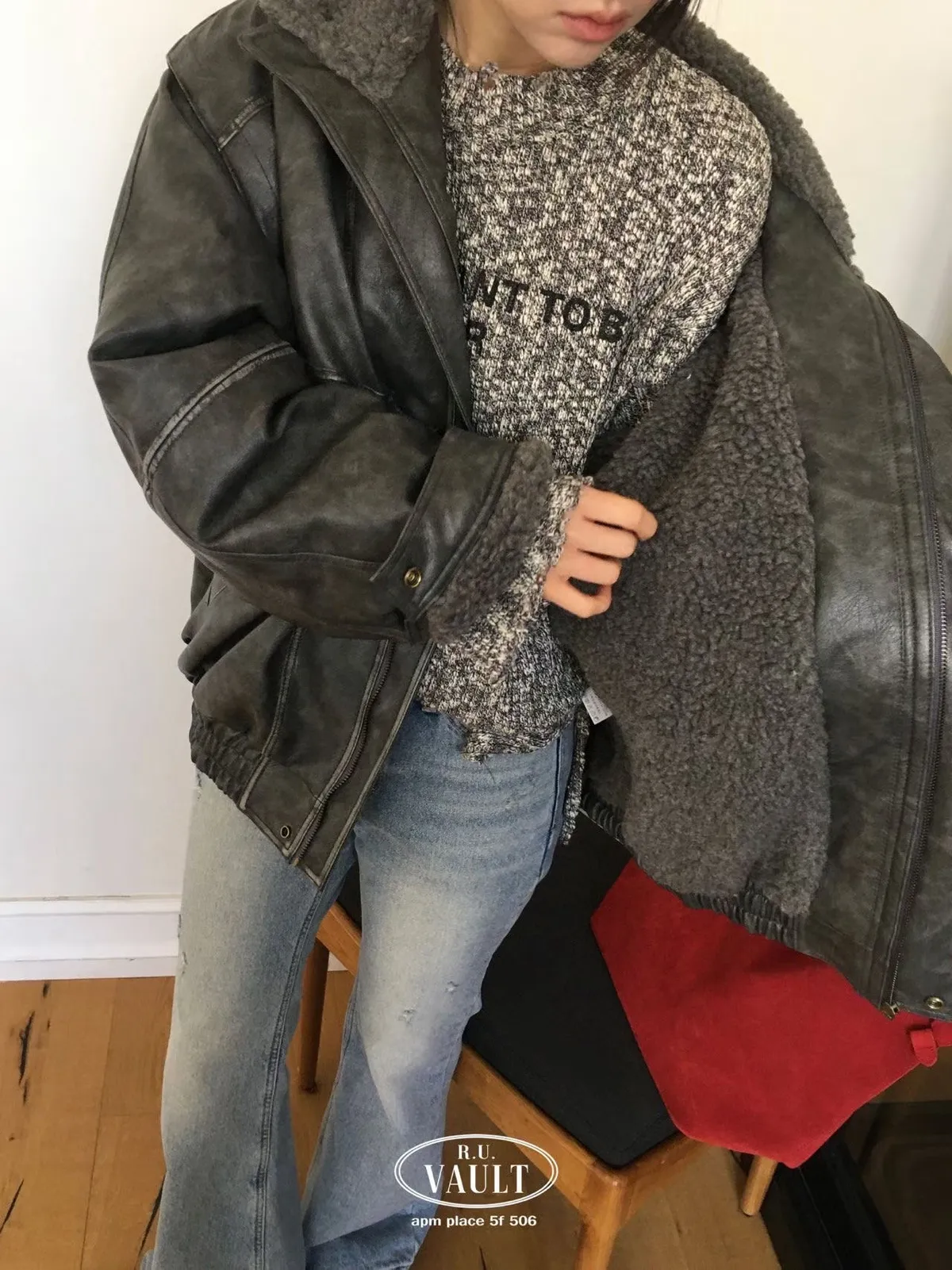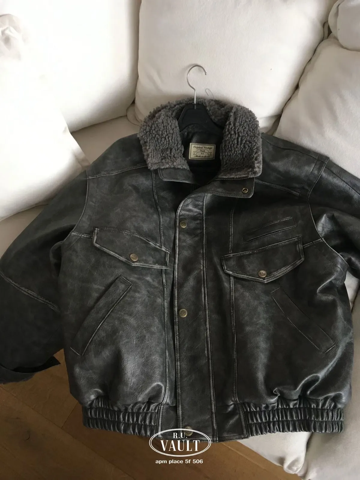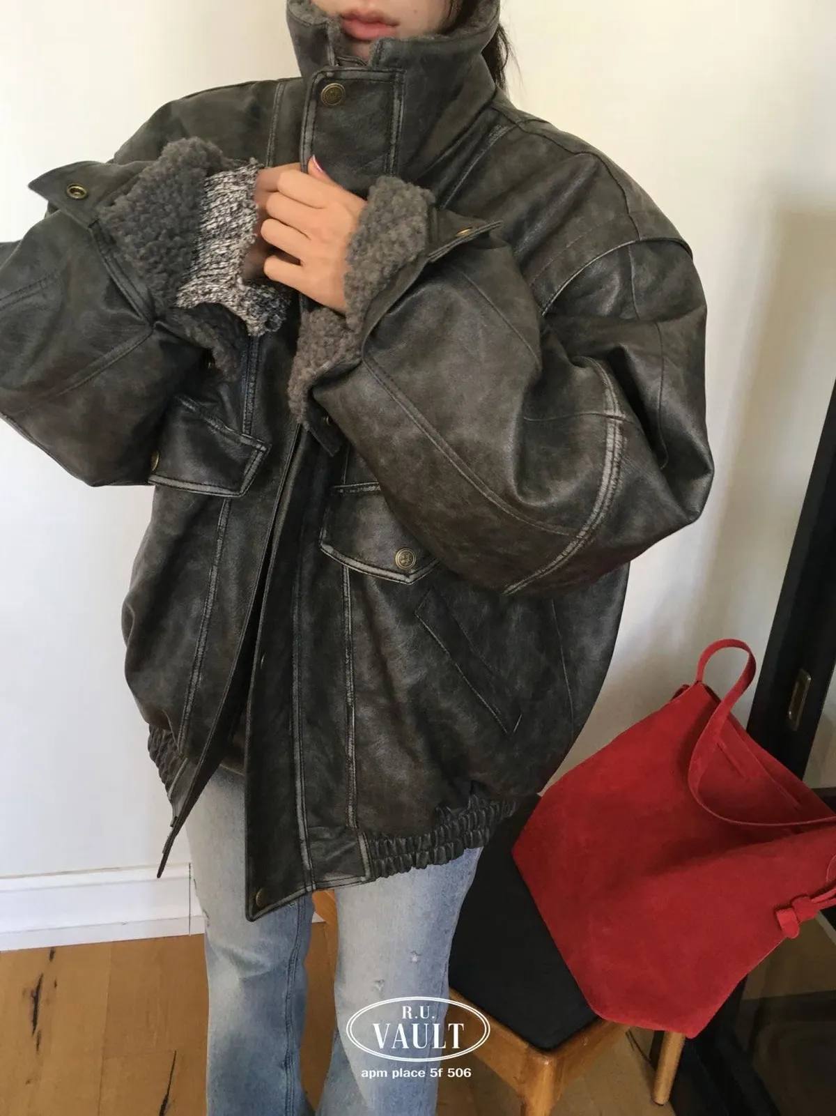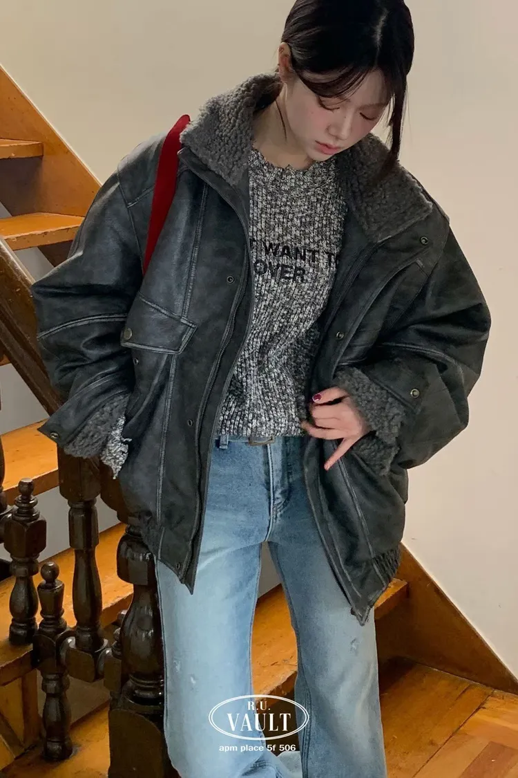 內羔毛復古皮夾克