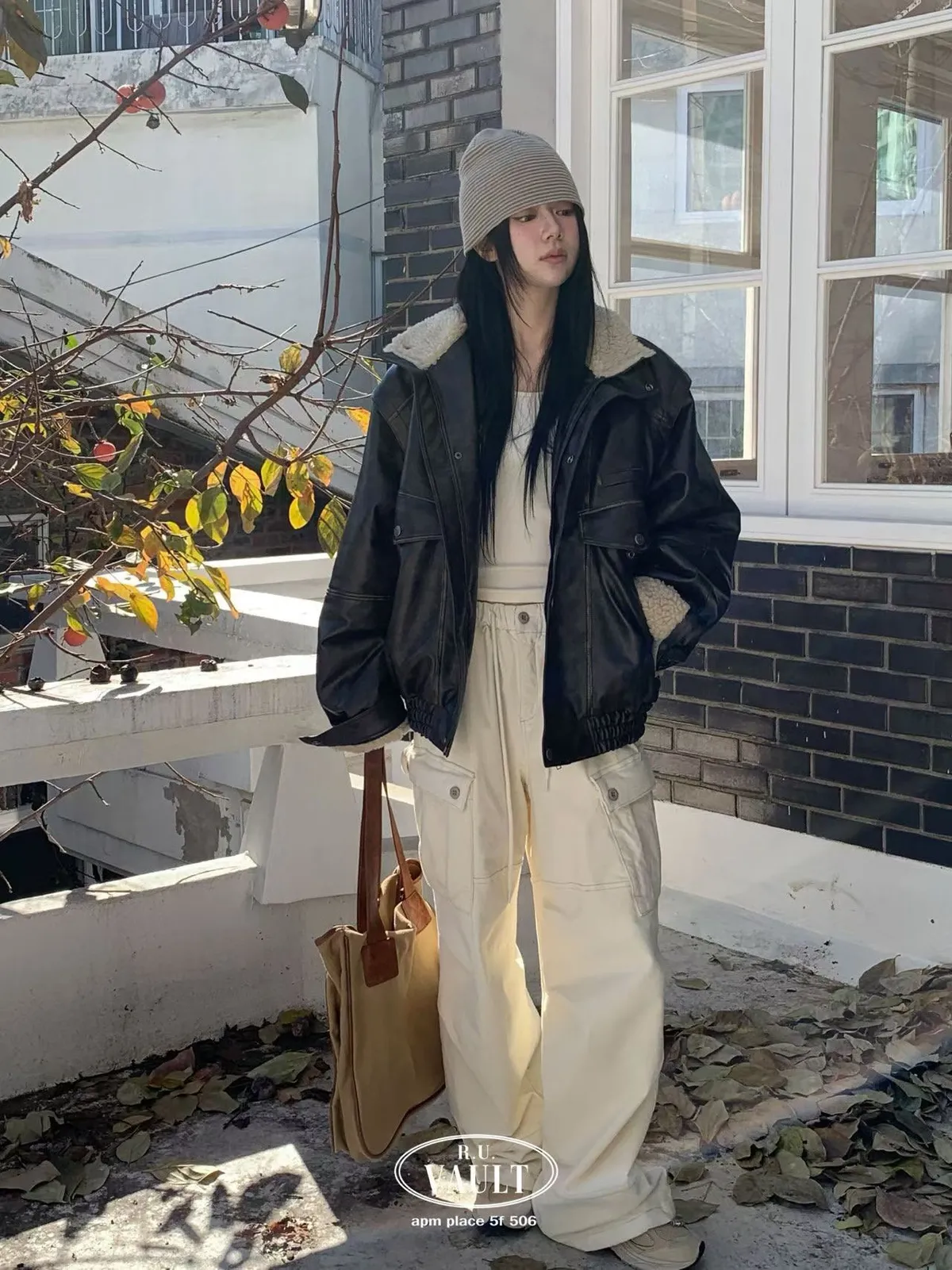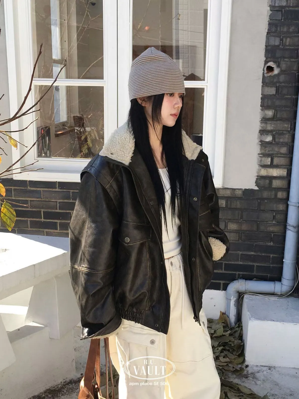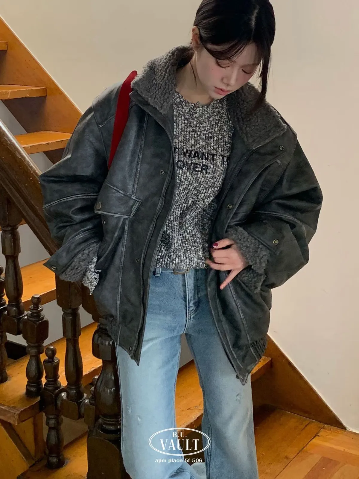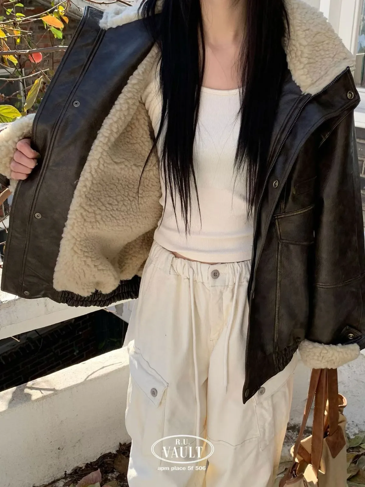內羔毛復古皮夾克