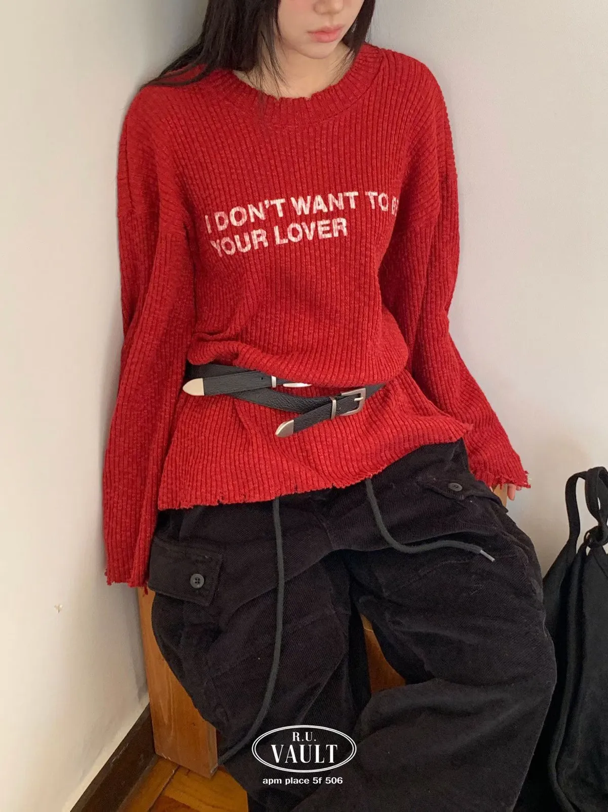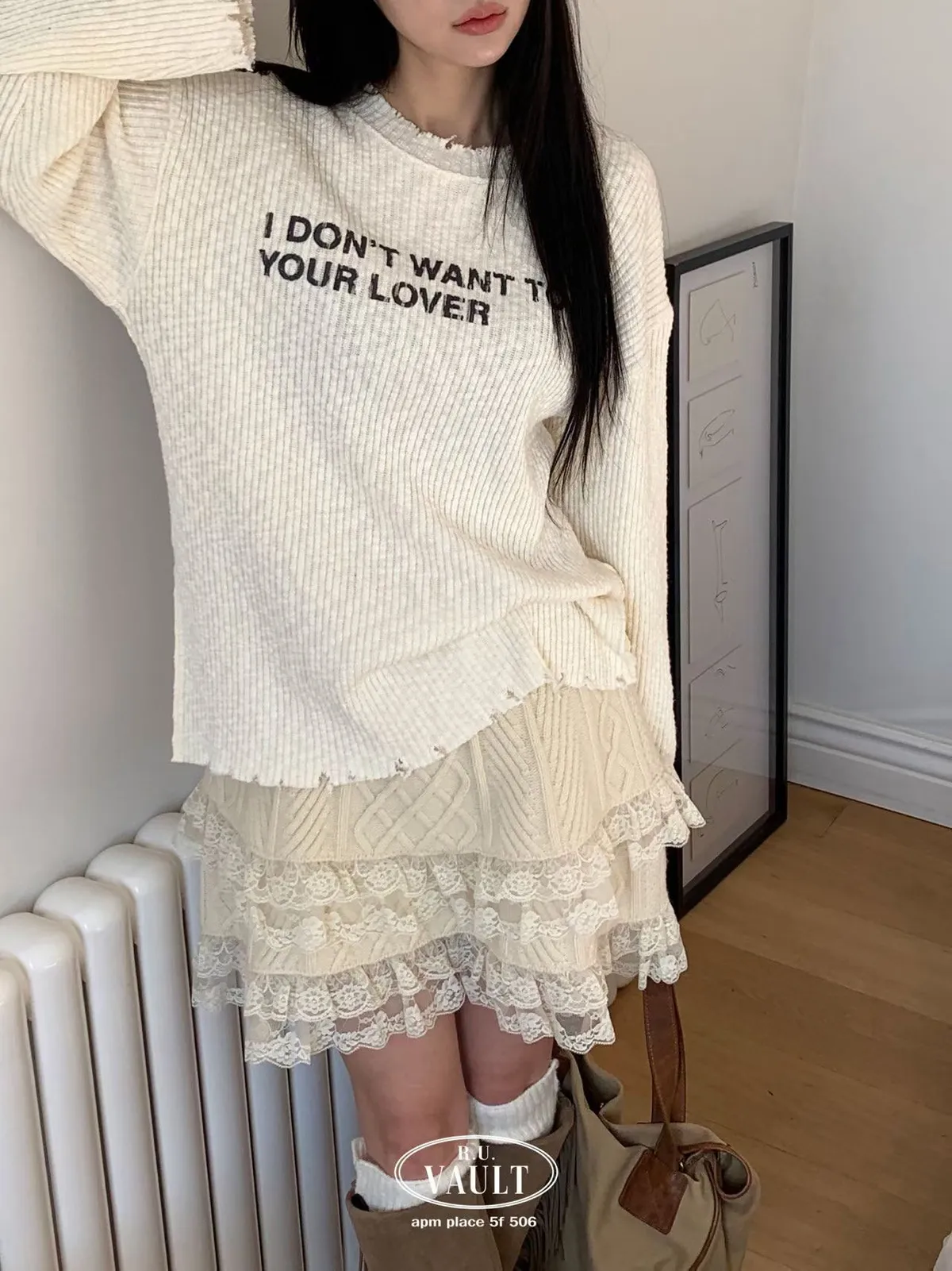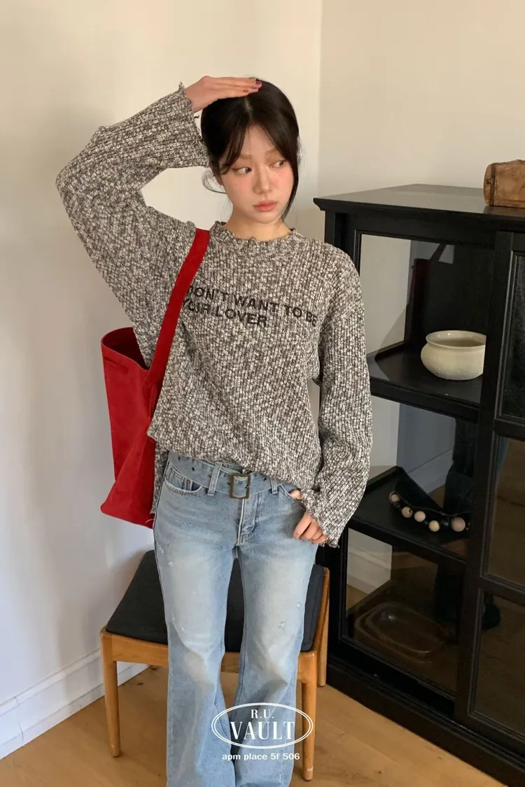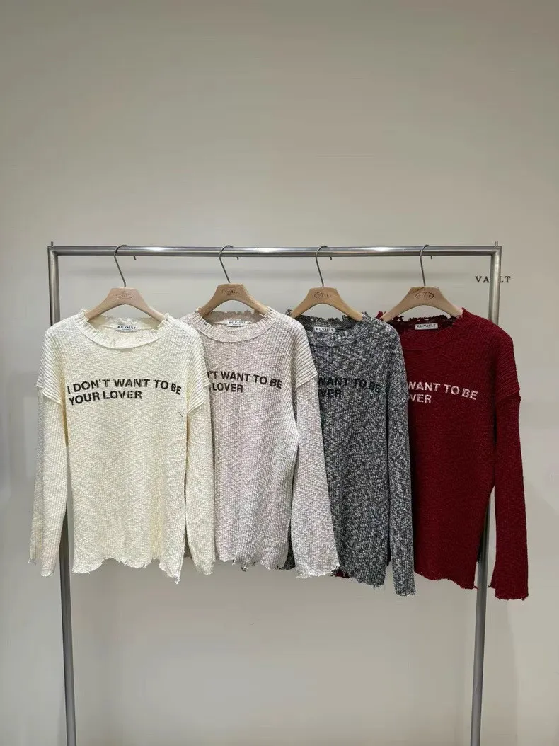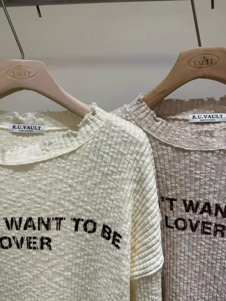 破損寬鬆針織英字上衣
