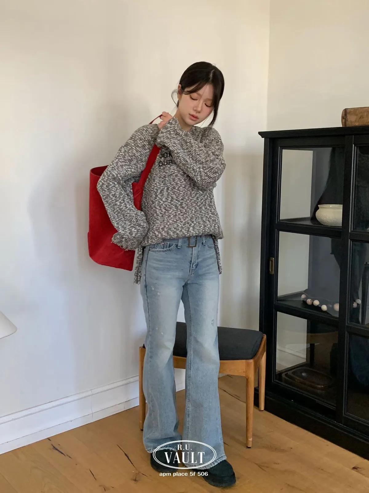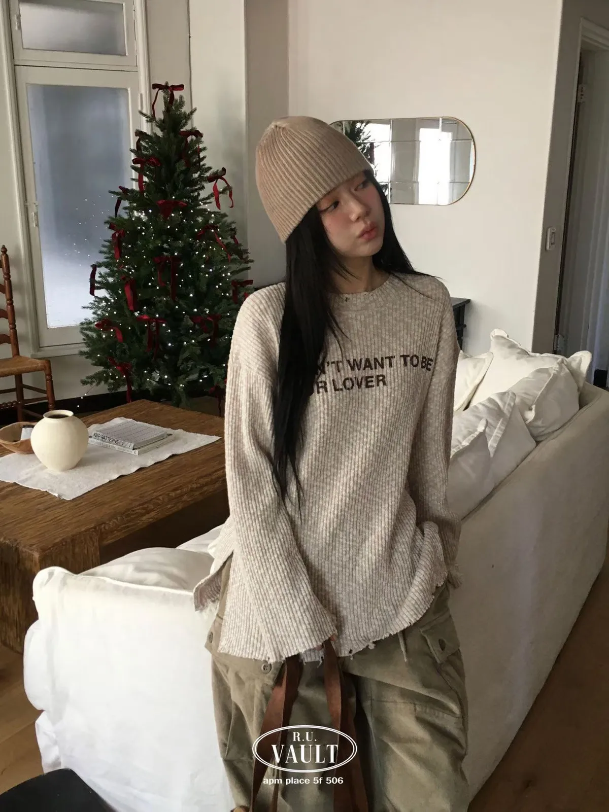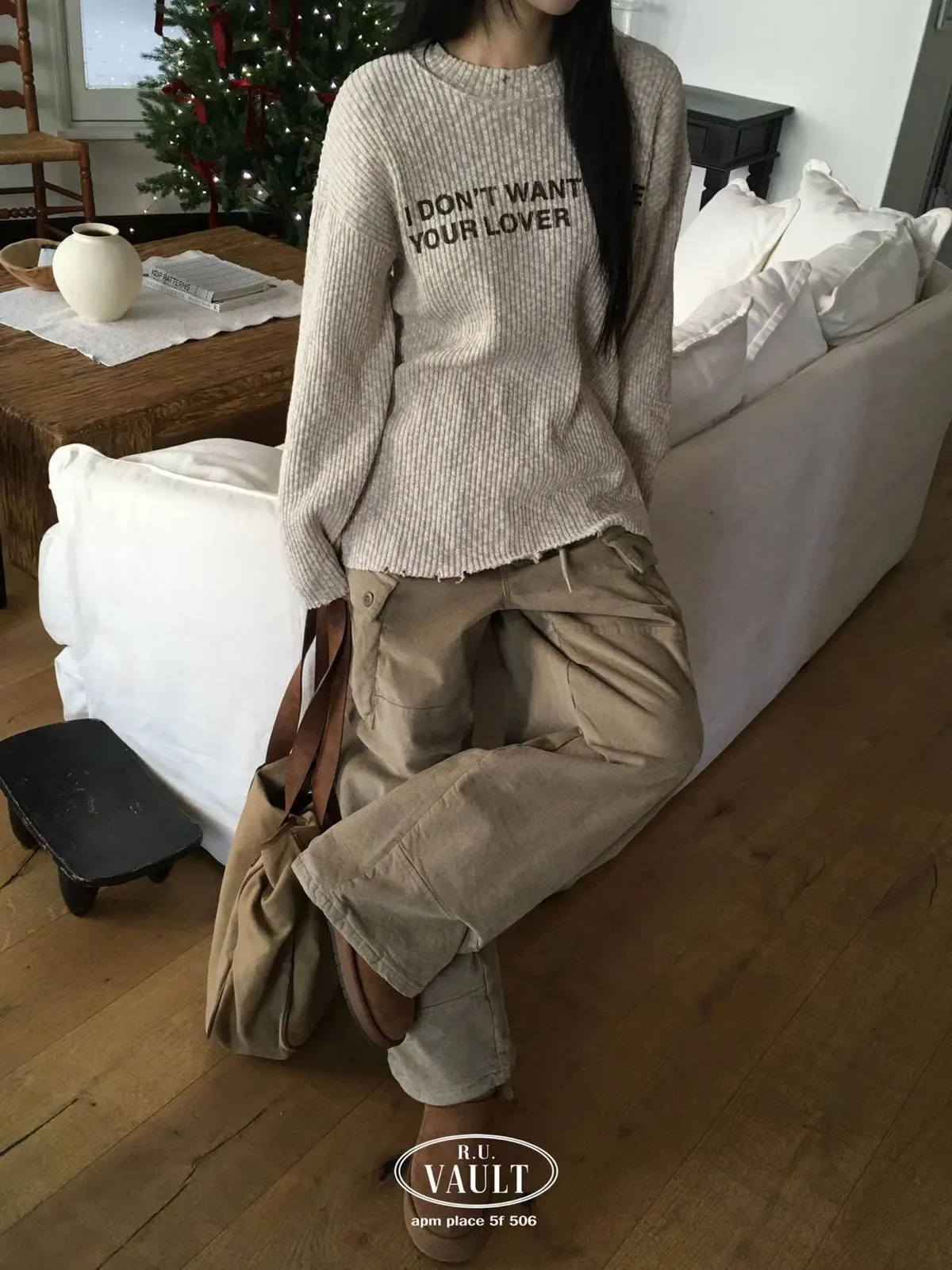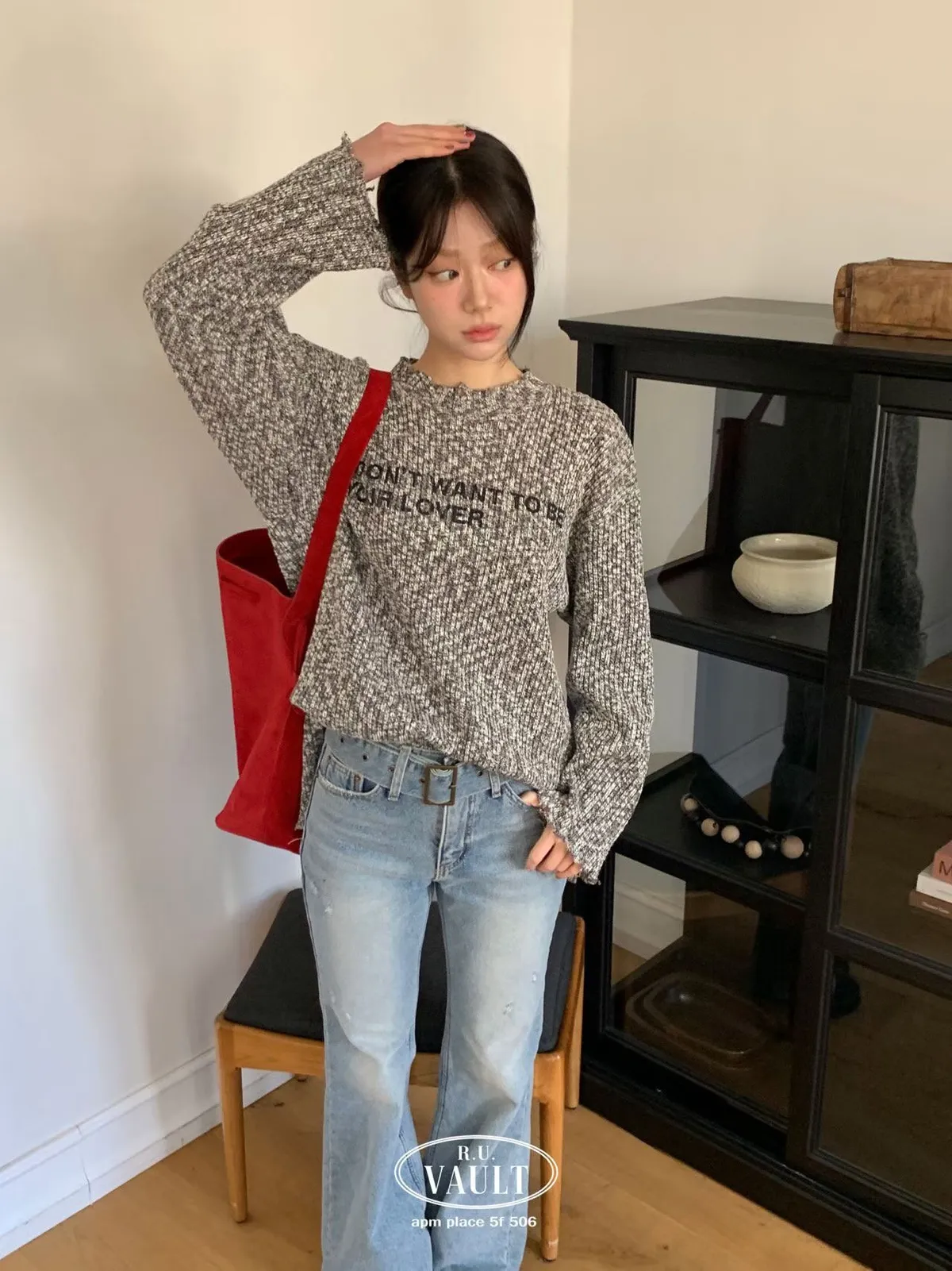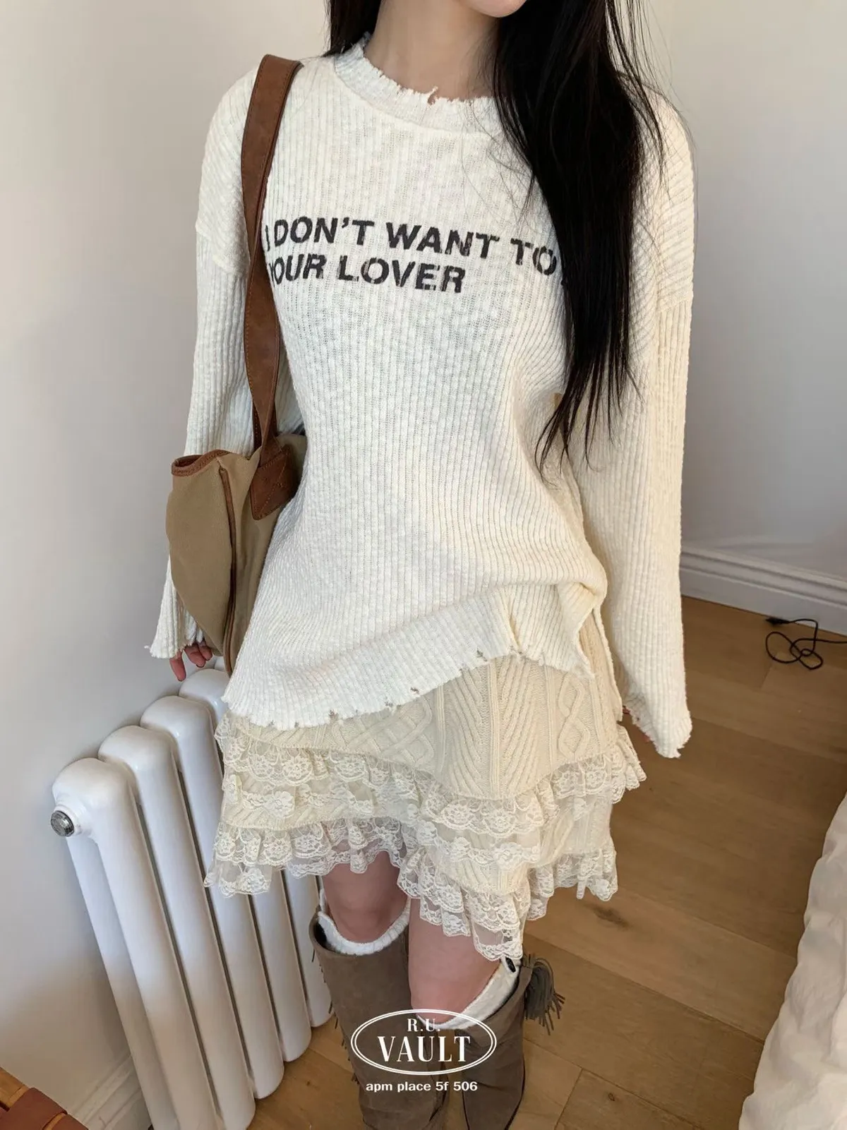 破損寬鬆針織英字上衣