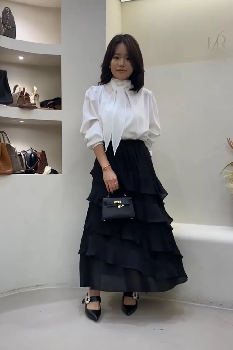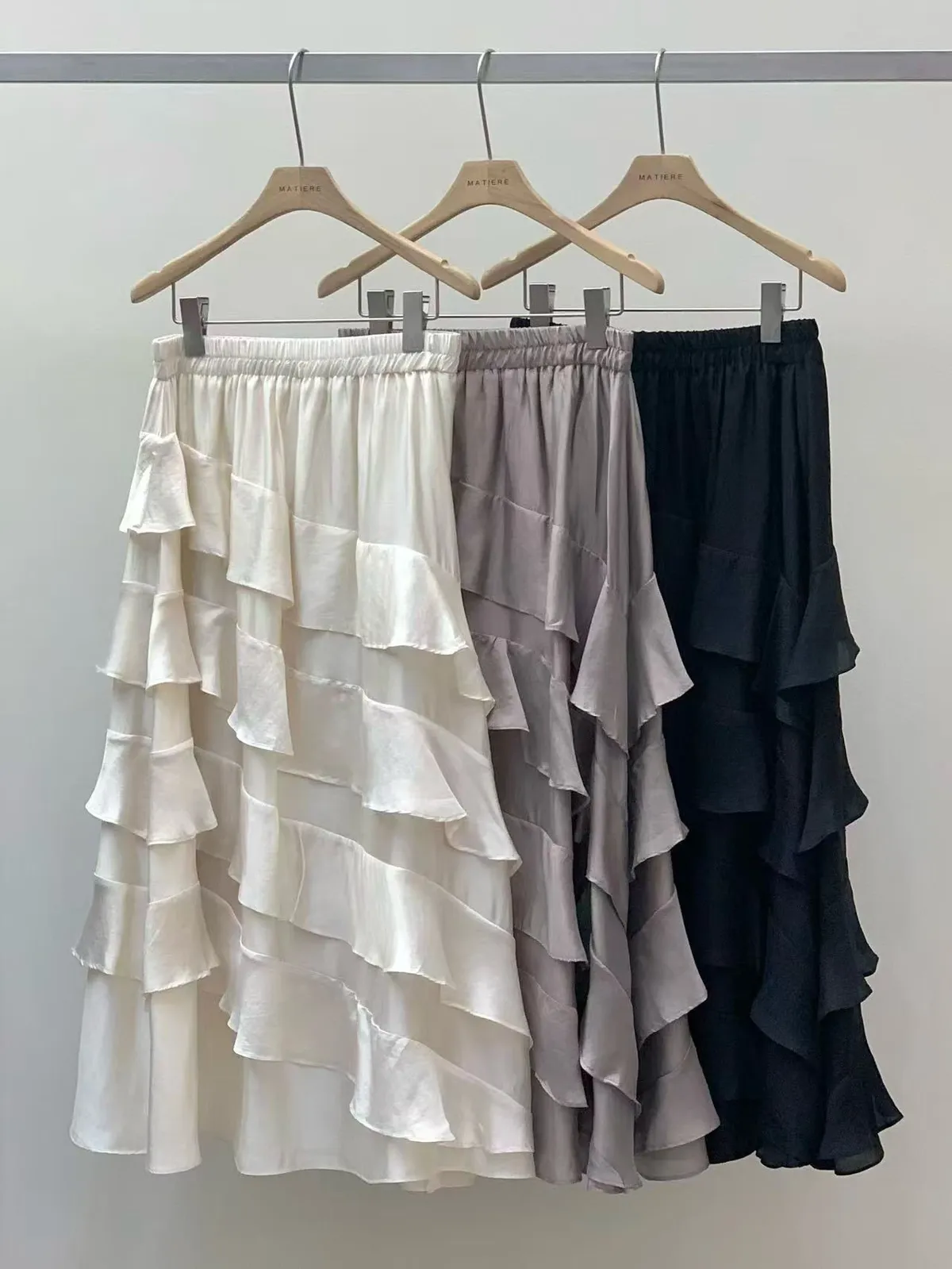 鬆緊天絲蛋糕長裙