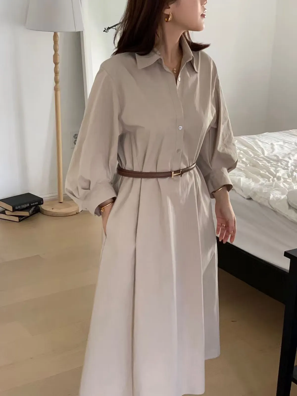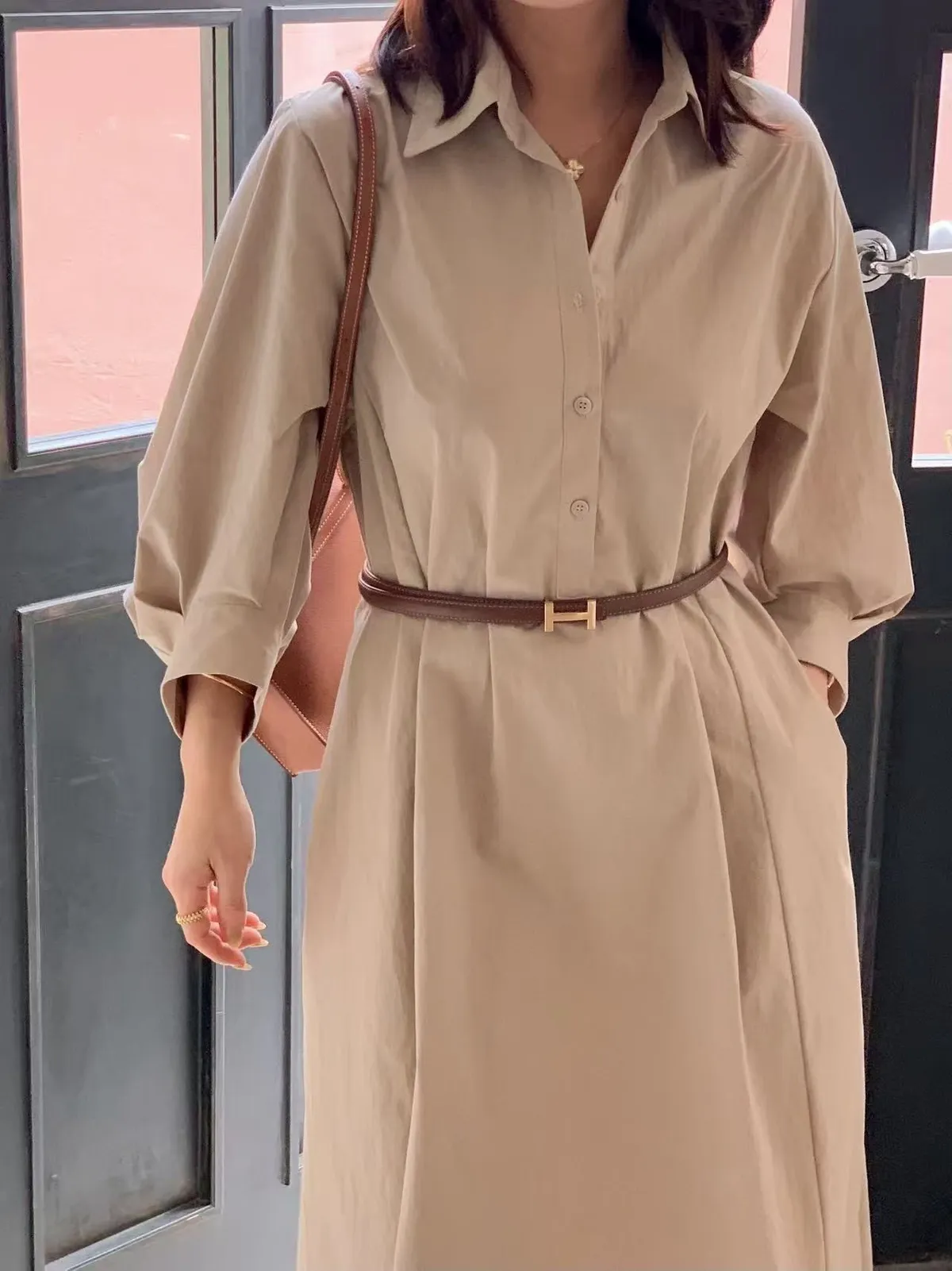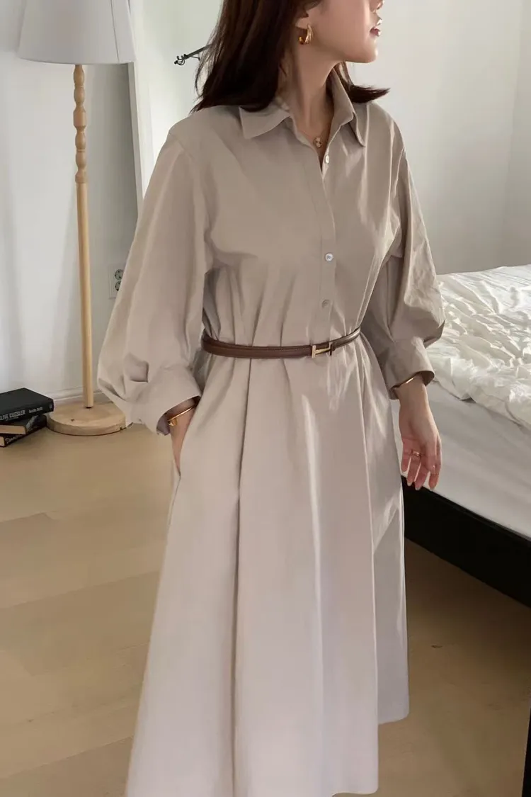 風衣面料襯衫長洋裝
