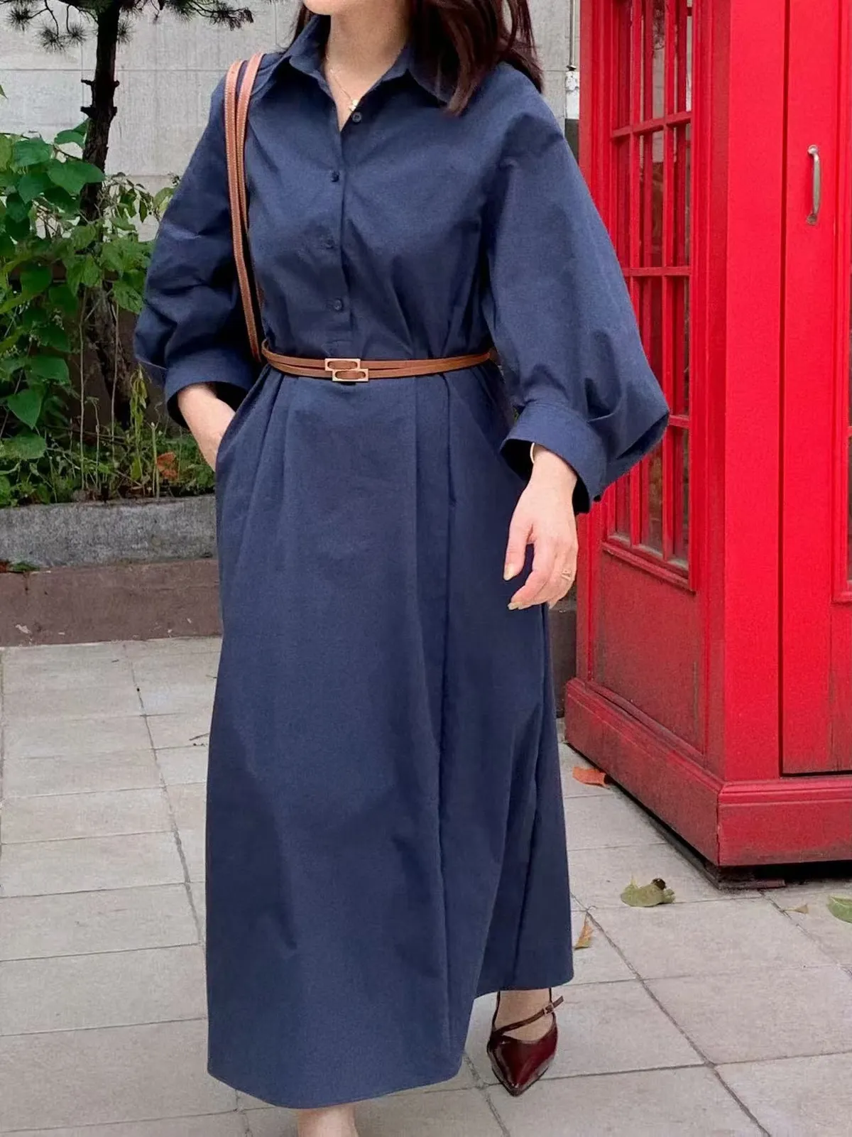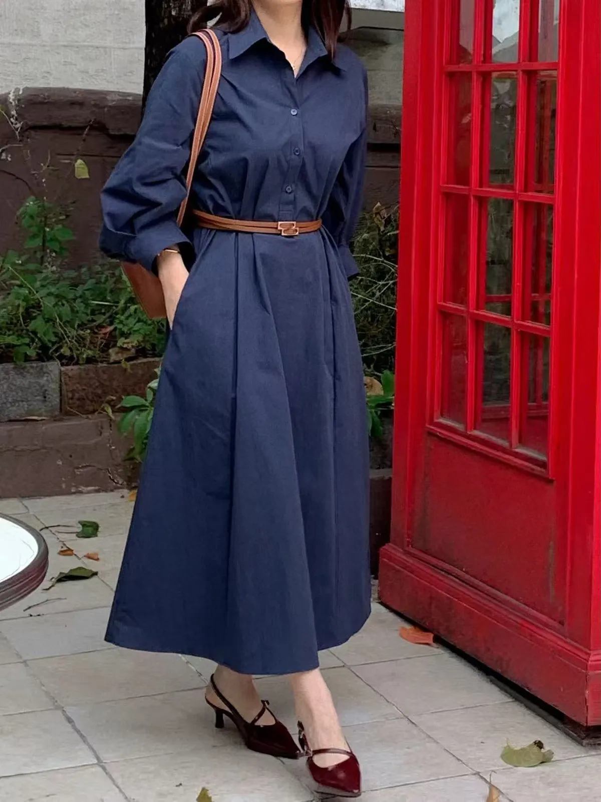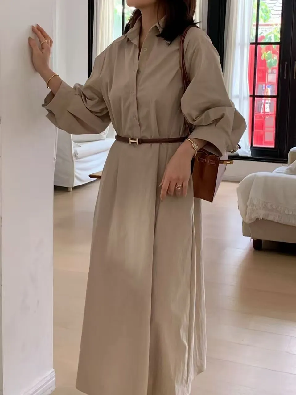 風衣面料襯衫長洋裝