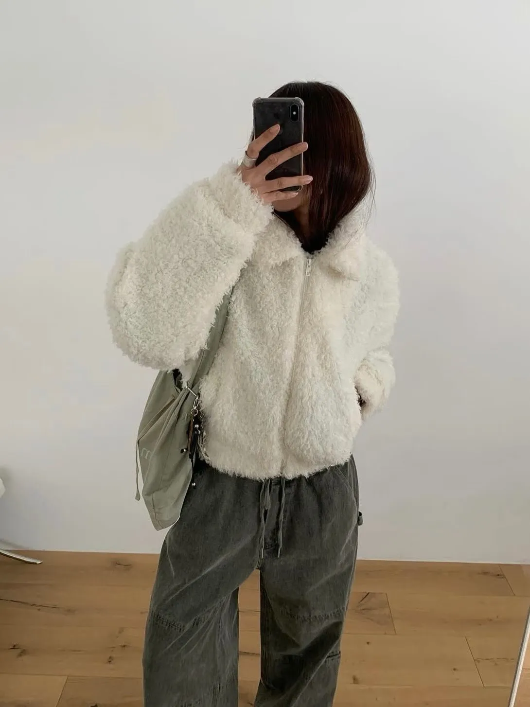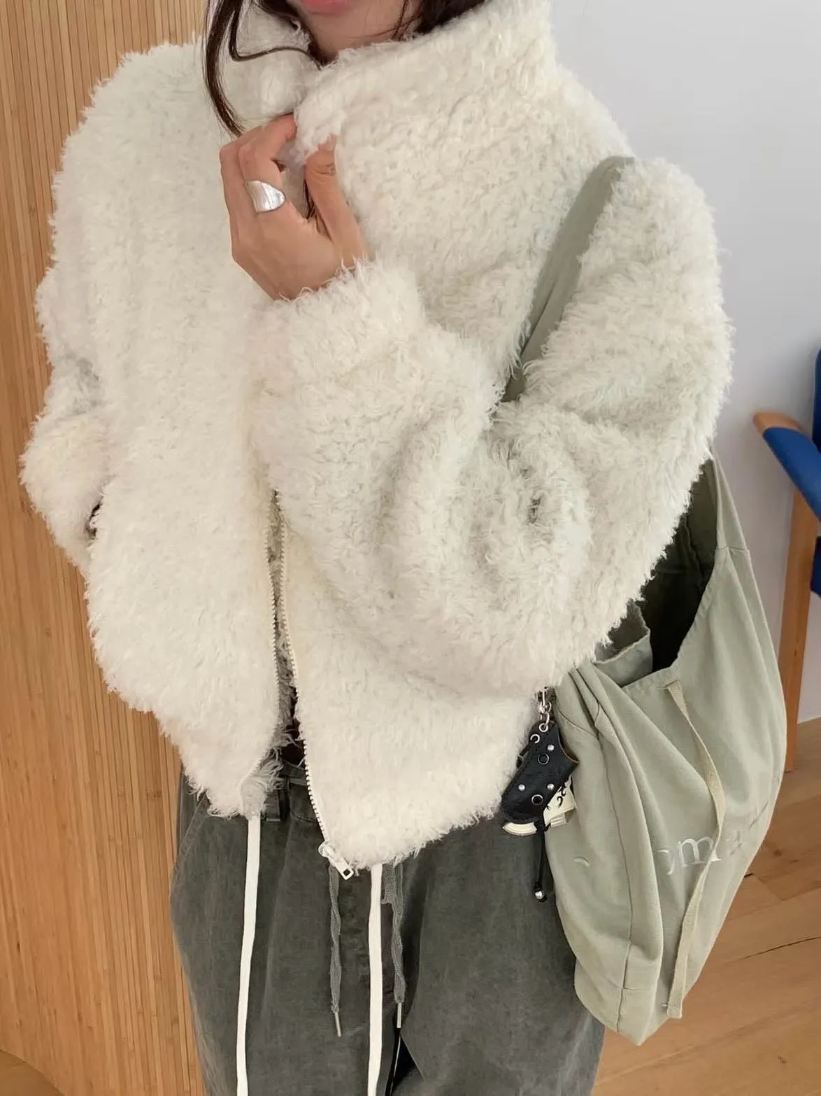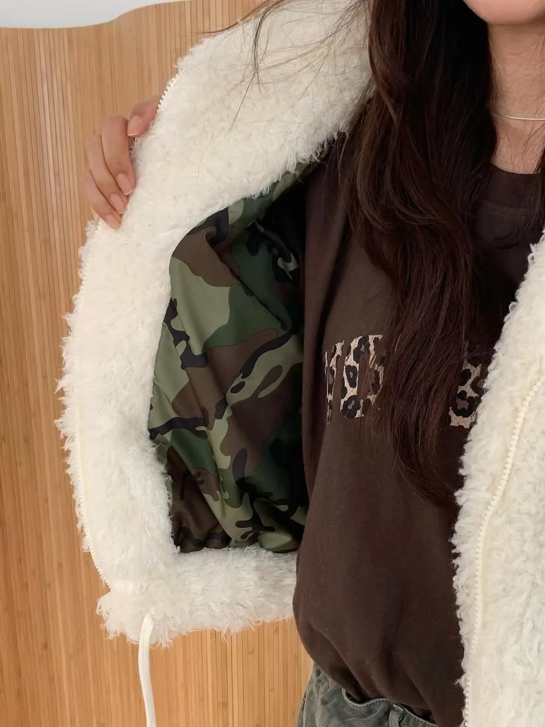 微短版QQ毛夾棉外套