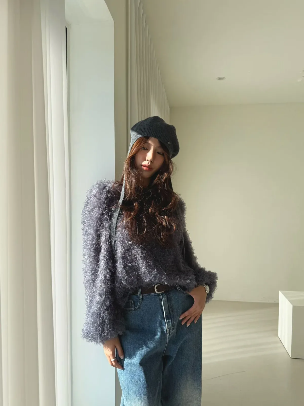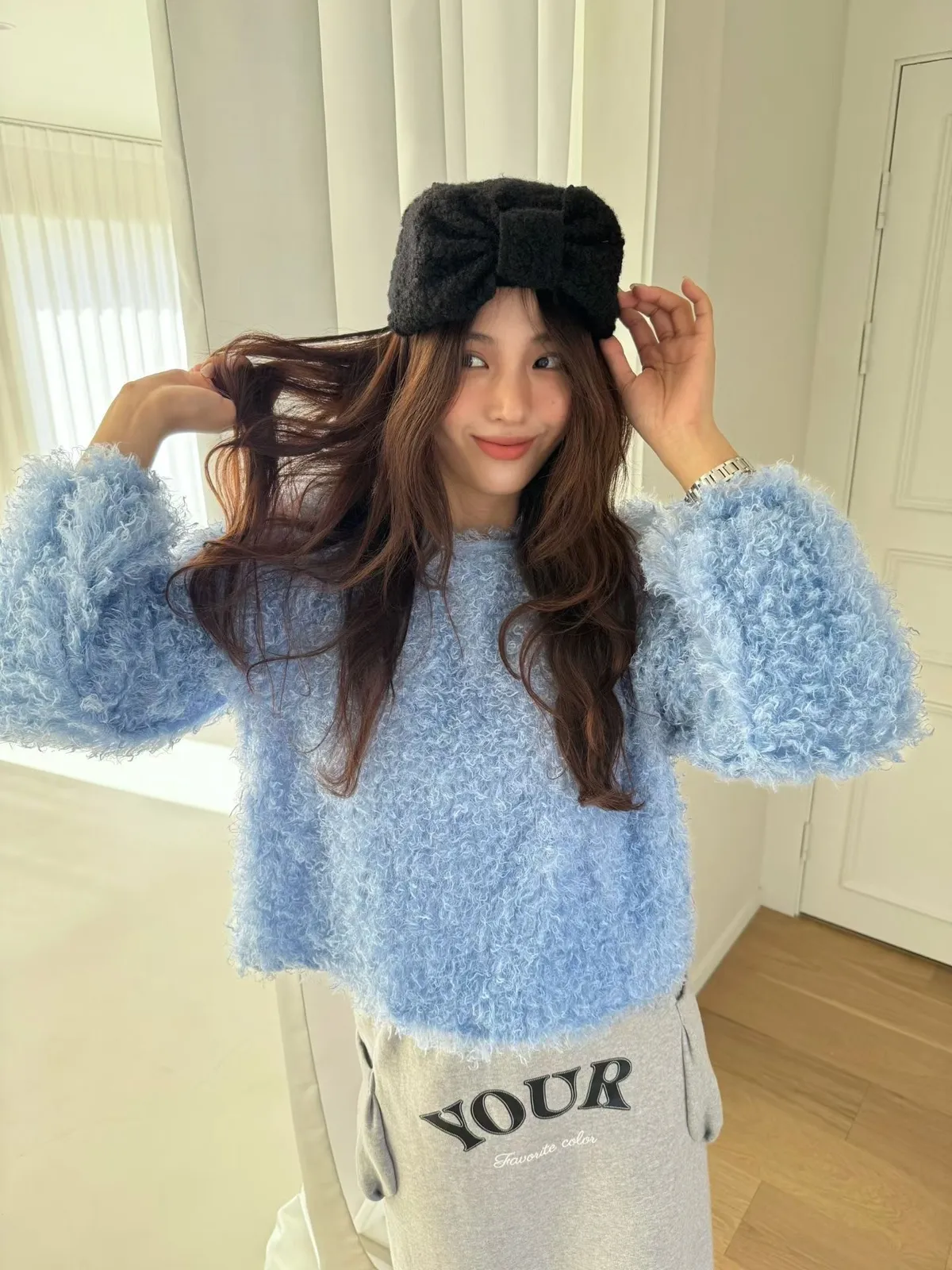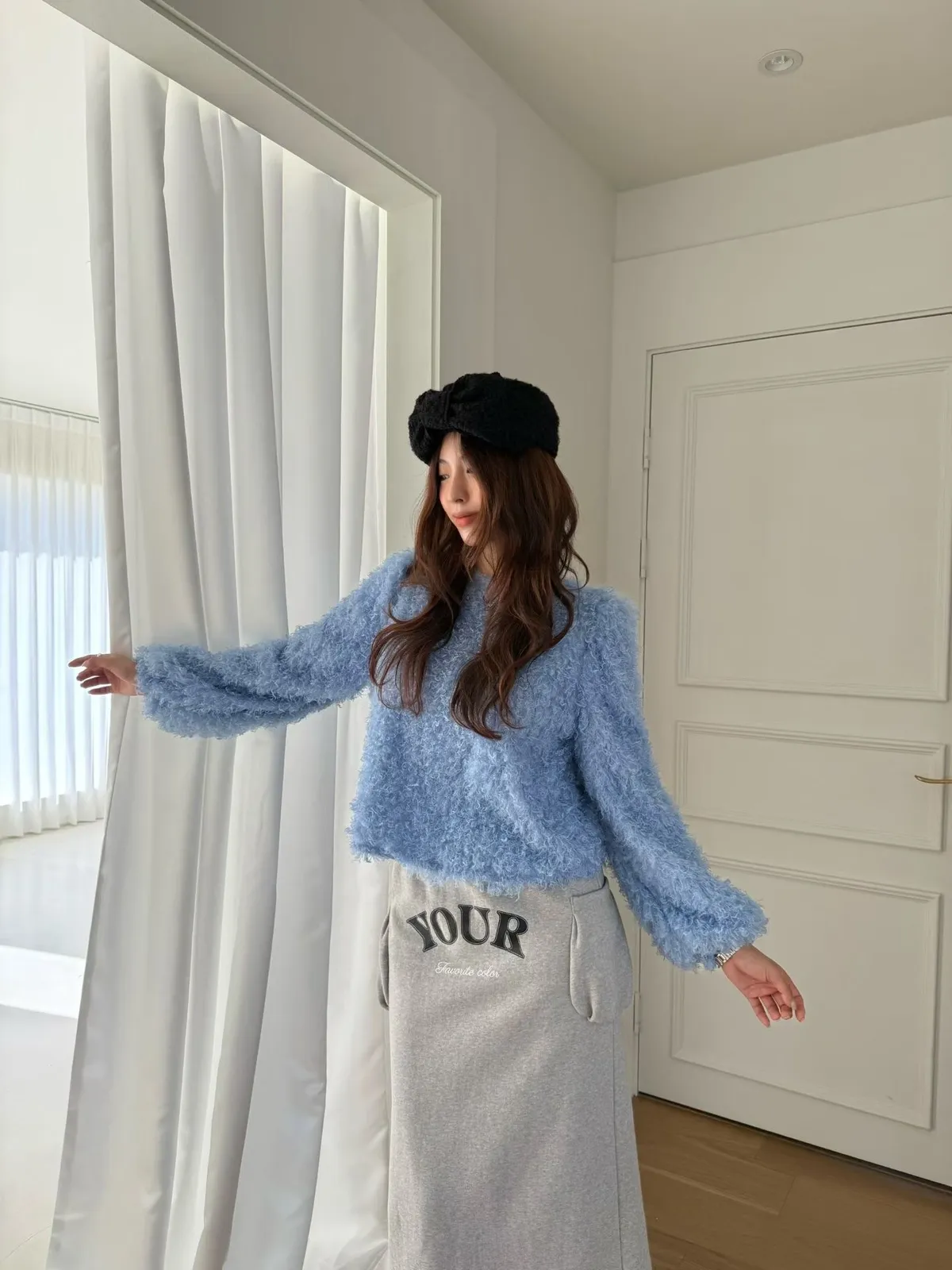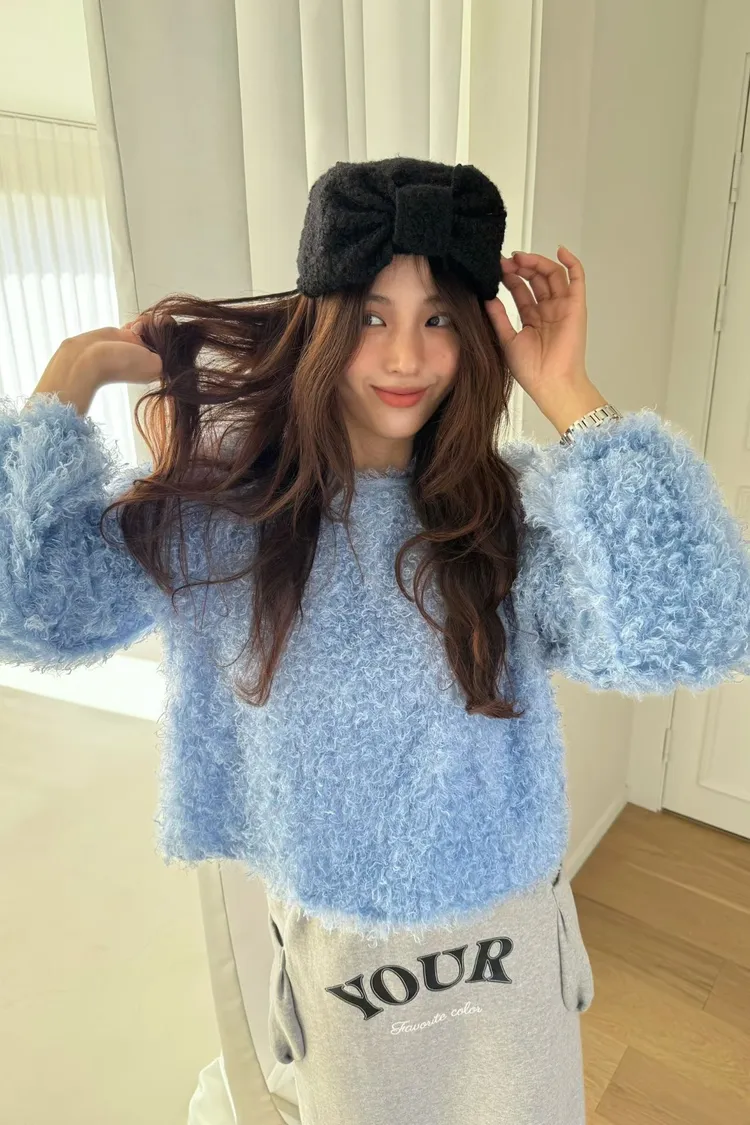 圓領毛毛上衣